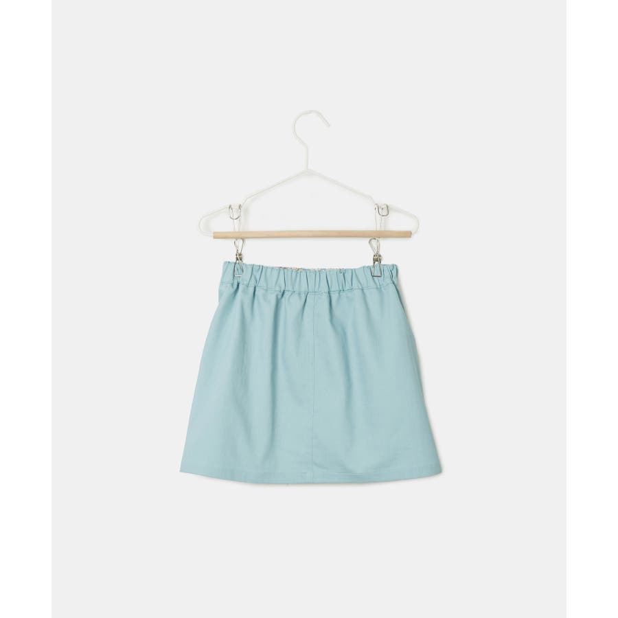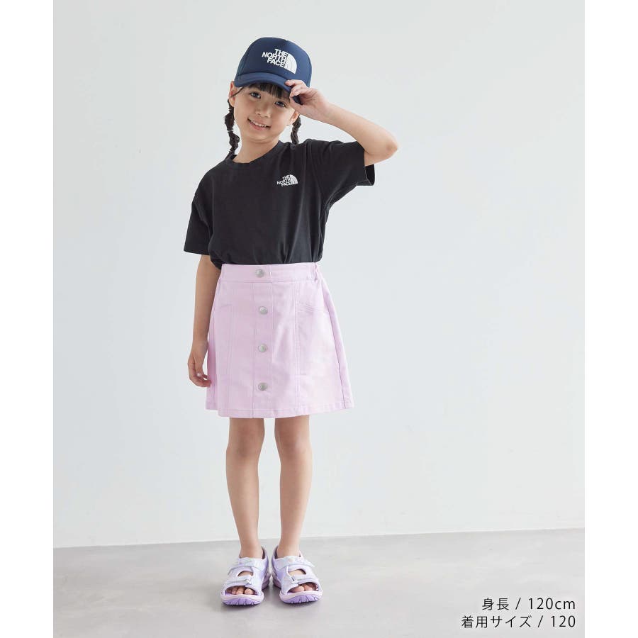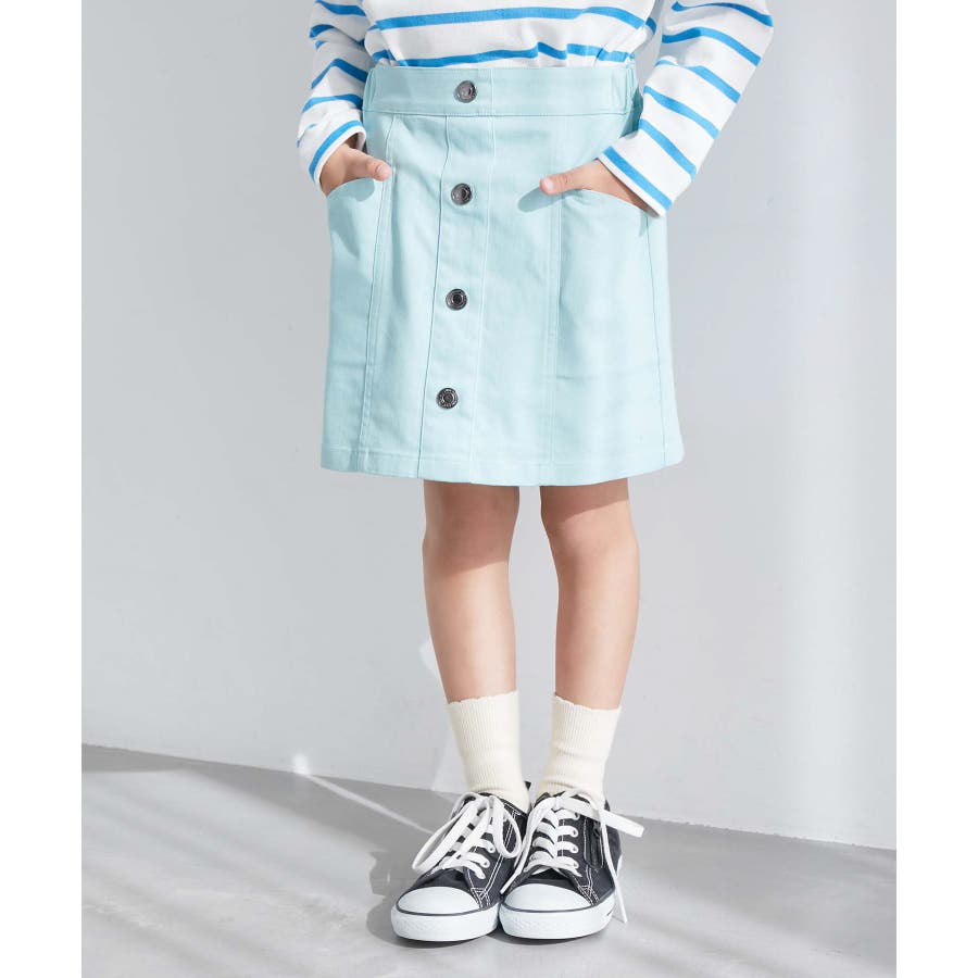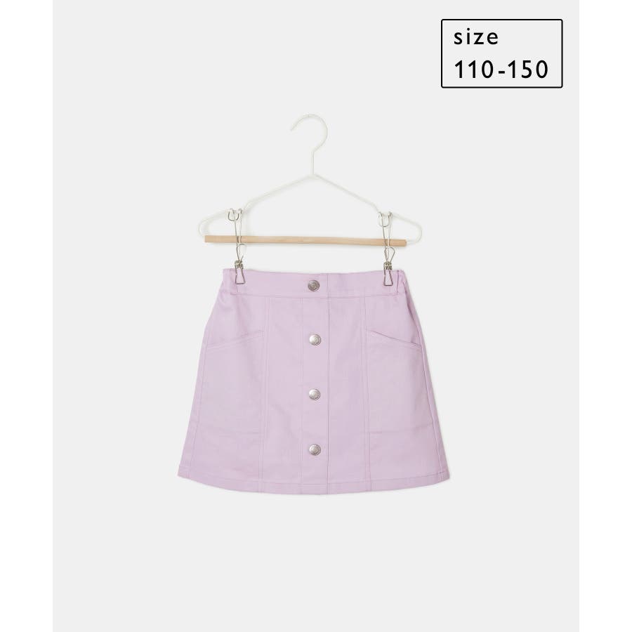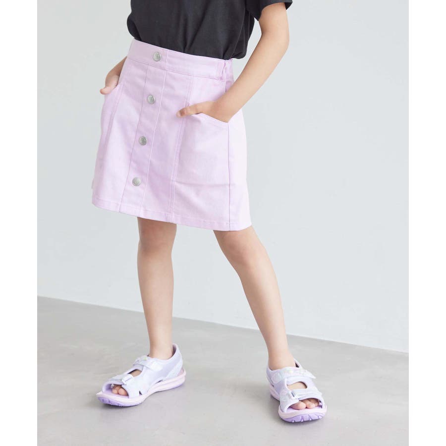 毎年人気のフロントボタンインパンツ付きスカートが登場! : 【素材感】 ・季節問わず使える、ストレッチ性があり動きやすく履き心地の良い素材。 【デザイン・シルエット】 ・フロントのボタンディテールがアクセントを効かせる、台形ミニスカート。 ・後ろ側はベルトラインのギャザーで、ふんわりとしたボリュームをメイク。 ・インパンツ付きなので動きやすく安心。 ・ウエストベルト裏側とポケット内側の花柄もポイント。 【カラー】 ・大人気のラベンダー、今年らしいミントグリーンの柔らかな2色展開。 【スタイリングポイント】 ・スウェットシャツやフーディーでとことんカジュアルに着こなして。 ----------------------------- 裏地:インパンツ付き 透け感:なし 伸縮性:ややあり 生地感・厚さ:普通 ポケット:あり ウエスト:後ろゴム その他仕様:ボタンはフェイク 季節:秋-春 ----------------------------- ※撮影時の光、お使いのモニター環境によって色の見え方が違う場合がございます。 ※前回好評だったインパンツ付きフロント釦スカート(品番:GRC13000)と同型。 ※モデル身長:120cm 着用サイズ:120