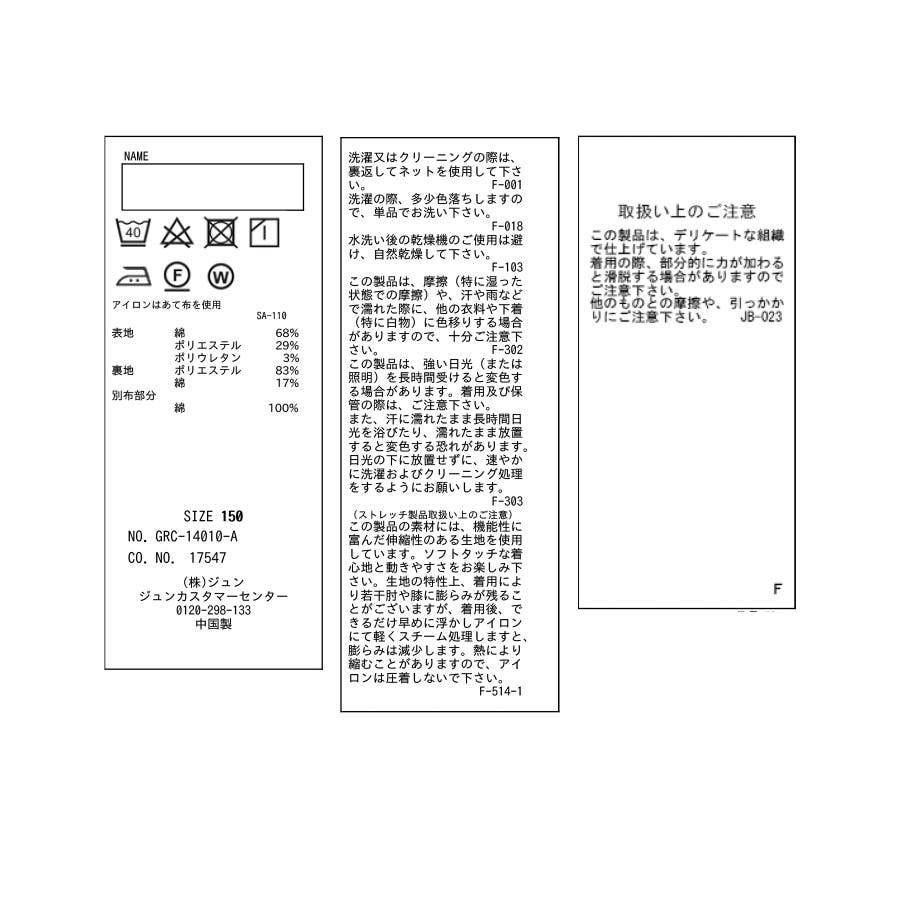 素材 | ライトグリーン(33):(表地) 綿 68% ポリエステル 29% ポリウレタン 3% (裏地) ポリエステル 83% 綿 17% (別布部分) 綿 100%|ラベンダー系(53):(表地) 綿 68% ポリエステル 29% ポリウレタン 3% (裏地) ポリエステル 83% 綿 17% (別布部分) 綿 100% |