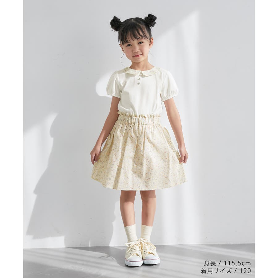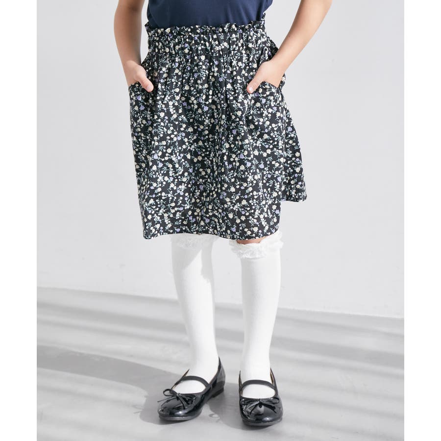 春にピッタリの大人気のキュートな小花柄スカート。 : 【デザイン・シルエット】 ・履き心地の良いウエストゴムのイージースカート。 ・アクティブキッズに安心のインパンツ付き。 【カラー】 ・ブラック、ホワイトのモノトーン2色展開。 ・ブラック系(02)の小花柄は少し大人っぽく、ホワイト系(12)の小花柄は優しいカラーでキュートに。 【スタイリングポイント】 ・カジュアルなトレーナー合わせでデイリーコーデが完成。 ・ブラウスに合わせればよそゆきスタイルに。 ・同シリーズでプルオーバー(品番:GRM14030)も展開しているので、セットアップでの着用もおすすめ。 ----------------------------- 裏地:なし(インパンツ付) 透け感:ホワイト系(12)はややあり、ブラック系(02)はなし 伸縮性:なし(インパンツはあり) 生地感・厚さ:薄め ポケット:あり ウエスト:ゴム 季節:春~秋 ----------------------------- ※撮影時の光、お使いのモニター環境によって色の見え方が違う場合がございます。 ※モデル身長:115.5cm 着用サイズ:120