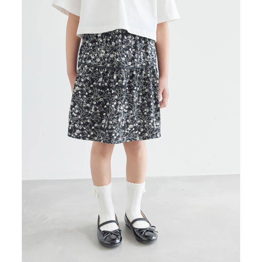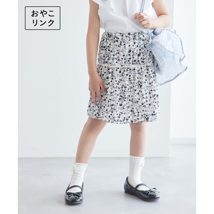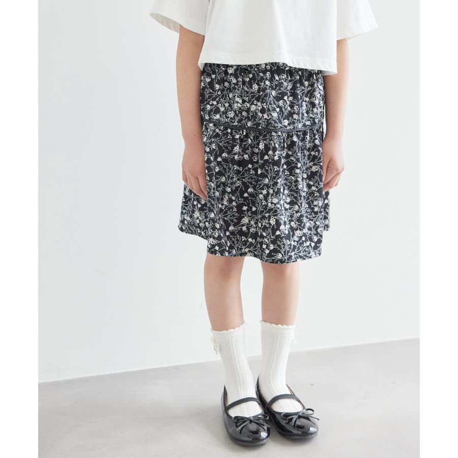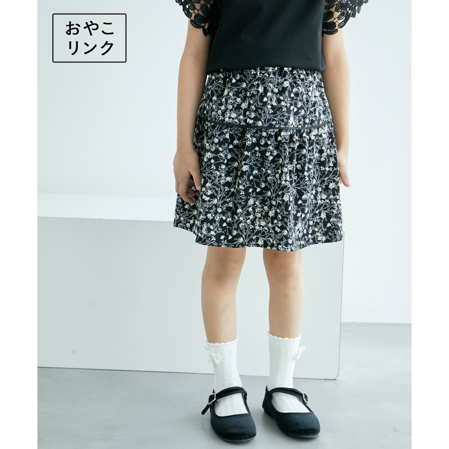 【KIDS】花柄パイピングギャザースカート/リンクコーデ