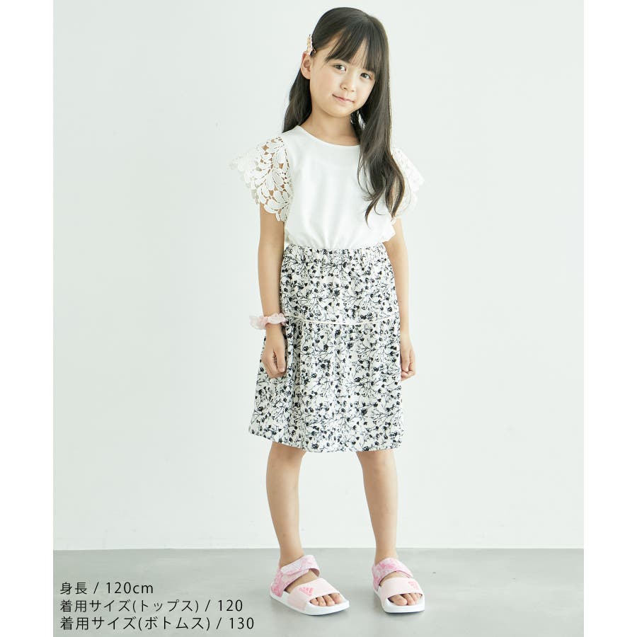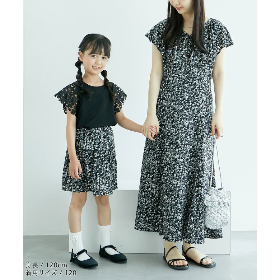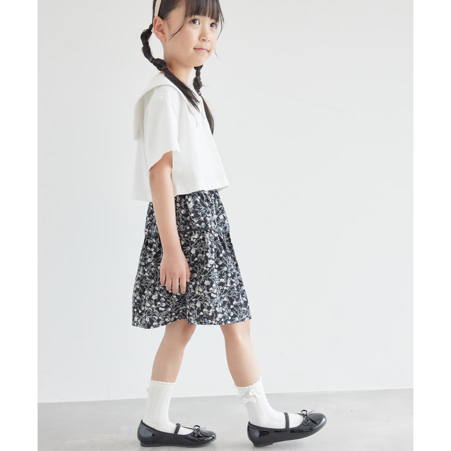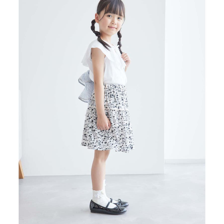 【KIDS】花柄パイピングギャザースカート/リンクコーデ