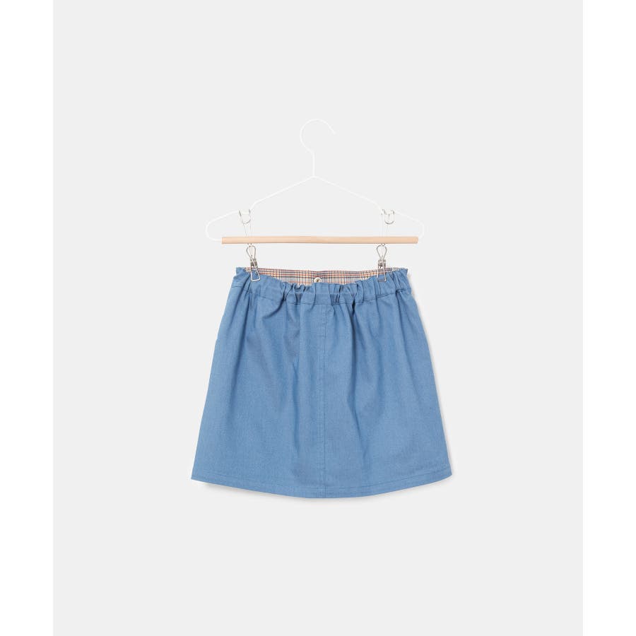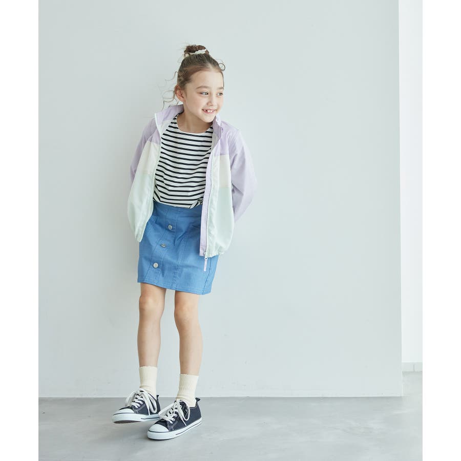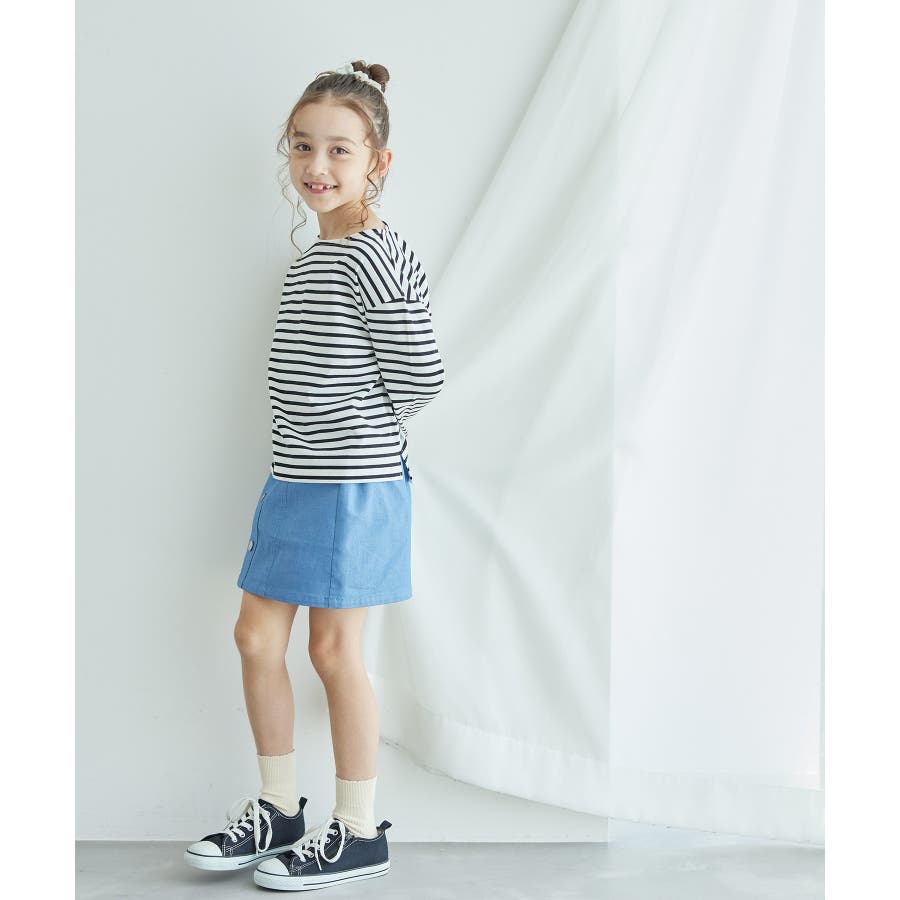【デザイン・シルエット】 ・普段使いに最適なデニムミニスカート。 ・フロントにフェイクボタンをあしらい、手の入れやすいサイドポケットをプラスしたデザイン。 ・ギャザーウエストでお子様もお着替えがスムーズに。 ・アクティブガールも安心のインパンツ付き。 【カラー】 ・ブラック、ブルーの2色展開。 ・ベルトの内側はチェック柄で大人っぽい柄に。 【スタイリングポイント】 ・ポロシャツ合わせで上品さをプラス。 ・ハイソックスと好バランスの着丈。 ・フリルトップスでスウィートに仕上げてもGOOD。 ----------------------------- 裏地:インパンツ付き 透け感:なし 伸縮性:ややあり 生地感・厚さ:普通 ポケット:あり ウエスト:後ろゴム その他仕様:ボタンはフェイク 季節:通年 ----------------------------- ※撮影時の光、お使いのモニター環境によって色の見え方が違う場合がございます。 ※110cmサイズはWEB限定展開です。 ※前回好評だったインパンツ付きフロント釦スカート(品番:GRC14010)と同型。 ※モデル身長、着用サイズは詳細画像をご確認ください。