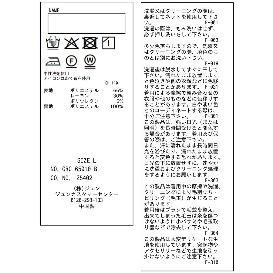 | 素材 | (表地) ポリエステル 65% レーヨン 30% ポリウレタン 5% (裏地) ポリエステル 100% |