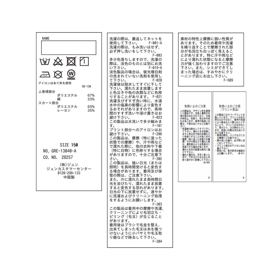 | 素材 | ベージュ(27):(上身頃部分) ポリエステル 67% 綿 33% (スカート部分) ポリエステル 65% レーヨン 35%|カーキ(36):(上身頃部分) ポリエステル 67% 綿 33% (スカート部分) ポリエステル 65% レーヨン 35% |