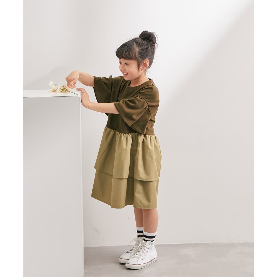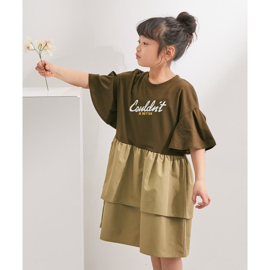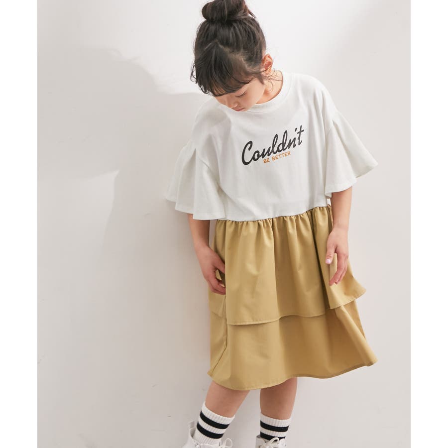 【KIDS】リンクコーデ/ロゴプリントティアードドッキングワンピース