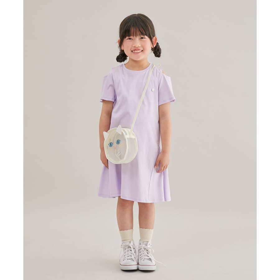 【素材感】 ・着心地の良い柔らかな生地感。 【デザイン・シルエット】 ・肩開きデザインの半袖カットソーワンピース。 ・大人っぽさとヘルシーさと兼ね備えたデザイン。 ・フレアスカートがガーリッシュでキュート。 ・左胸のオリジナルパーツがきらっとして高見え。 【カラー】 ・大人気のラベンダー、大人っぽいネイビー、マイルドなクリームイエローのキッズらしい3色展開。 【スタイリングポイント】 ・お転婆ガールはレギンスなどを重ねると安心。 ・普段使いならスニーカーやサンダルを、ちょっとしたお出かけにはストラップシューズを合わせて。 ----------------------------- 裏地:なし 透け感:なし 伸縮性:ややあり 生地感・厚さ:やや薄手 ポケット:なし 季節:春夏 ----------------------------- ※撮影時の光、お使いのモニター環境によって色の見え方が違う場合がございます。 ※前回好評だった肩あきカットソーワンピース(品番:GRE13060)と同型。 ※モデル身長、着用サイズは詳細画像をご確認ください。