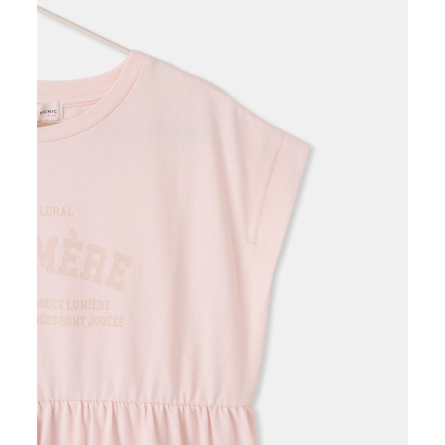 【素材感】 ・接触冷感と吸水速乾機能が付いた天竺素材。 【デザイン・シルエット】 ・昨年好評だった、ティアードデザインのカットソーワンピース。 ・前回はフリル袖だったのを、今年は大人っぽくタックスリーブにチェンジ! ・フロントロゴは刺繍風のプリントをオン。 【カラー】 ・シンプルなブラックと、可愛らしいピンクの2色展開。 【おすすめスタイリング】 ・カジュアルにスニーカーやサンダルを合わせたスタイリングがおすすめ。 <対応サイズ> Sサイズ:95~115cm Mサイズ:115~135cm Lサイズ:135~155cm ---------------------------- 裏地:なし 透け感:なし 伸縮性:ややあり 生地感・厚さ:やや薄手 ポケット:なし 季節:春・夏 ---------------------------- ※撮影時の光、お使いのモニター環境によって色の見え方が違う場合がございます。 ※モデル身長:122cm 着用サイズ:M ※前回好評だったワンピース(品番:GRE14080)から吸水速乾機能付きにアップデート。