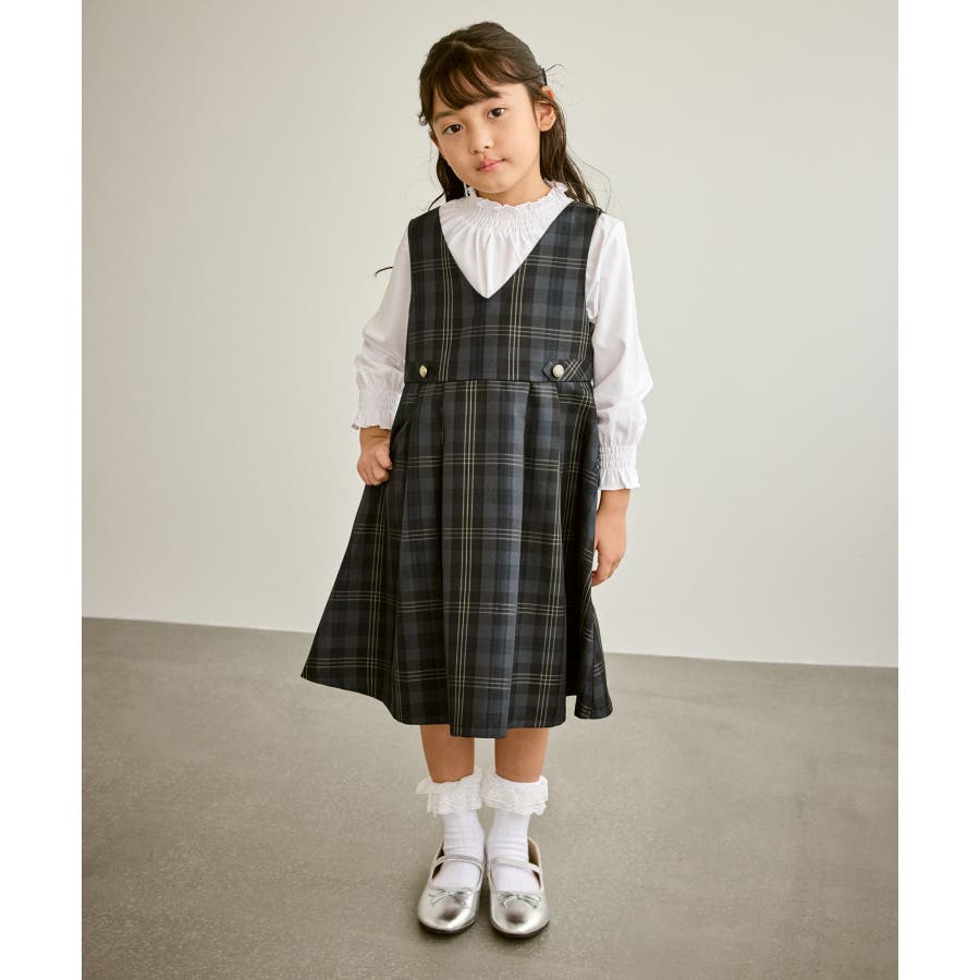 ・セレモニーにもカジュアルにも使えるチェック柄のジャンパースカート。