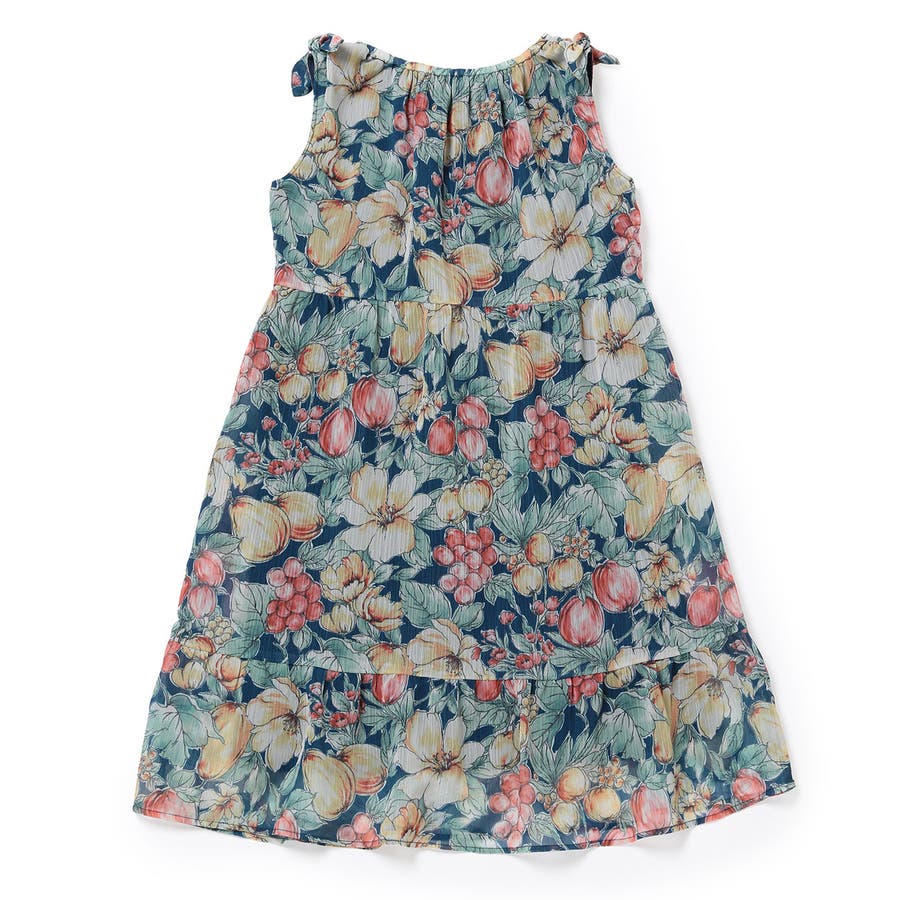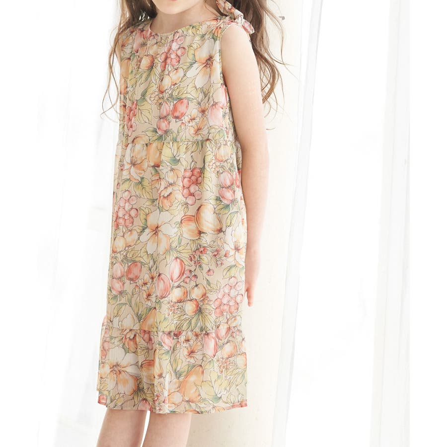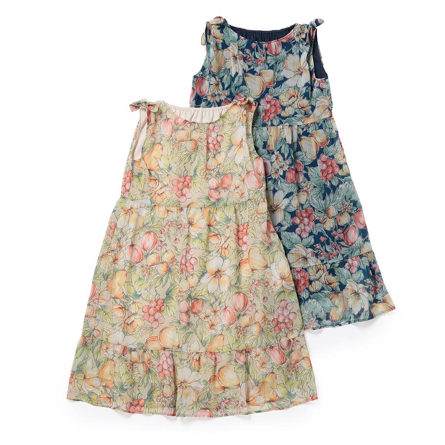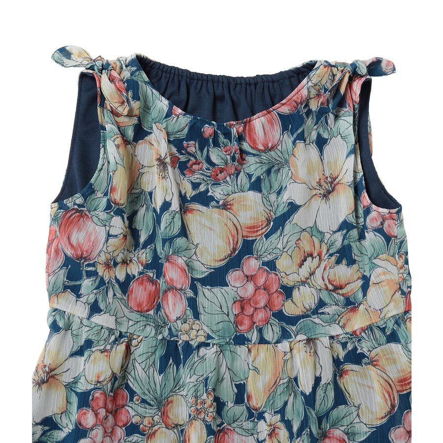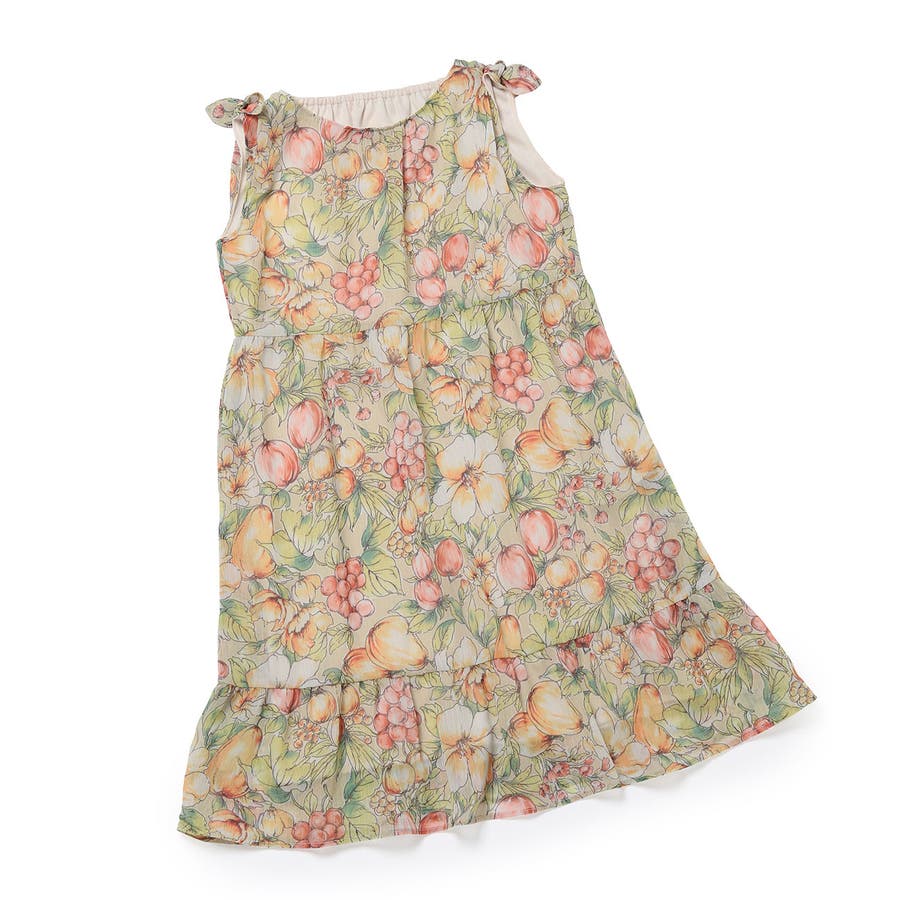 【KIDS】ヴィンテージライクフルーツ肩リボンティアードワンピース