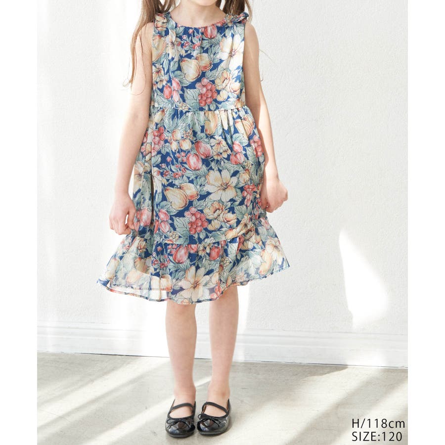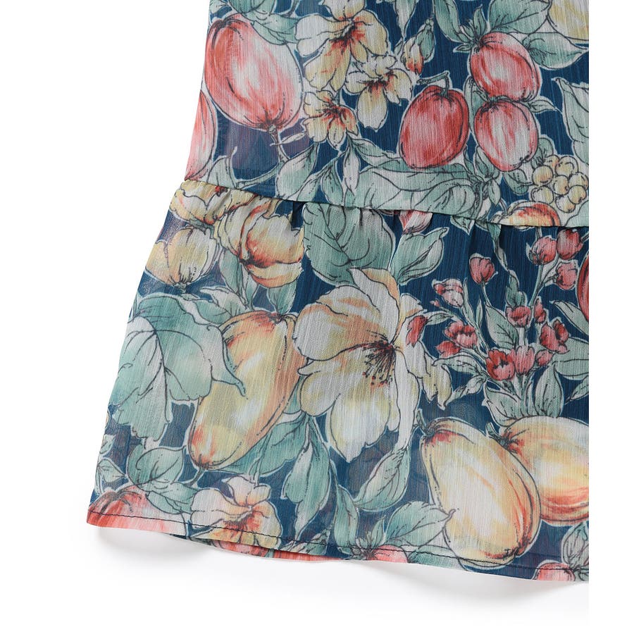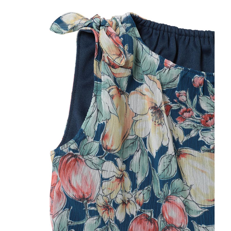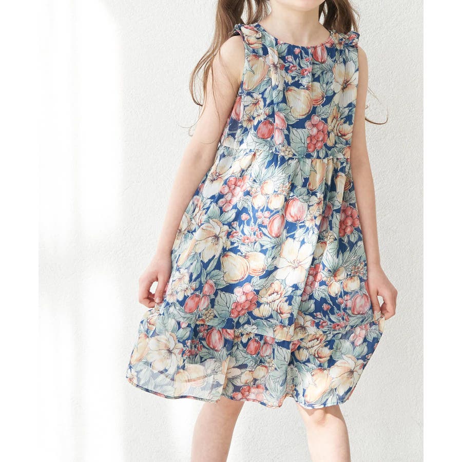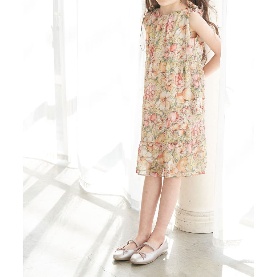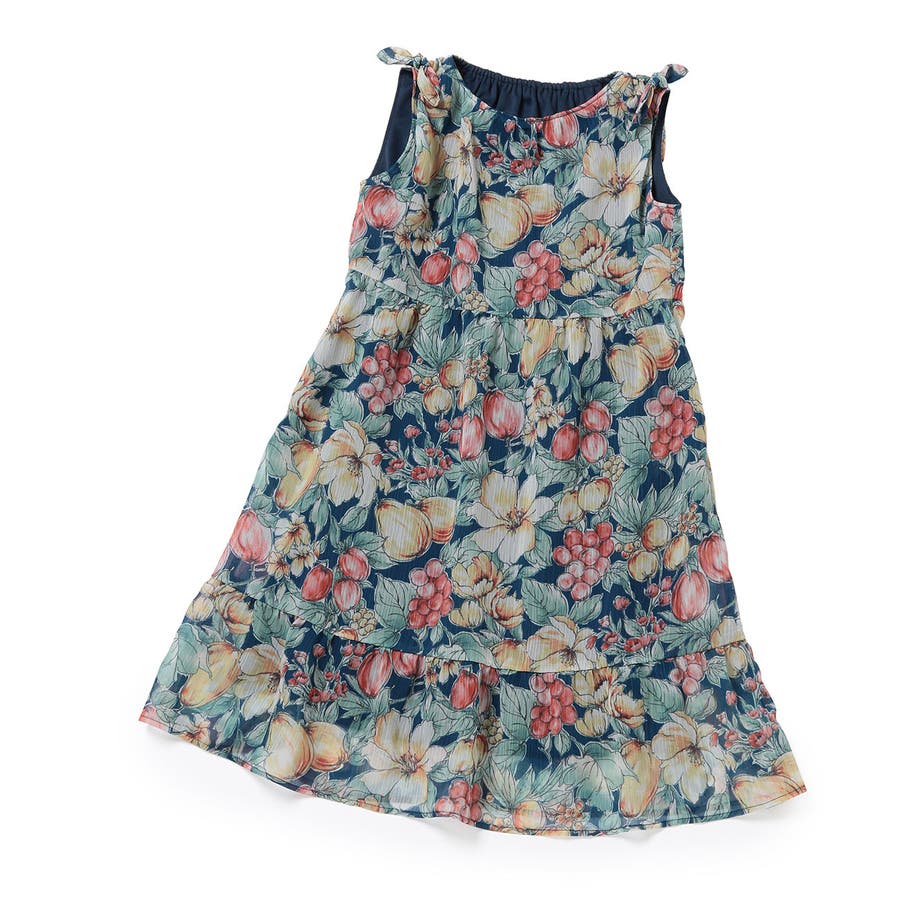 【KIDS】ヴィンテージライクフルーツ肩リボンティアードワンピース