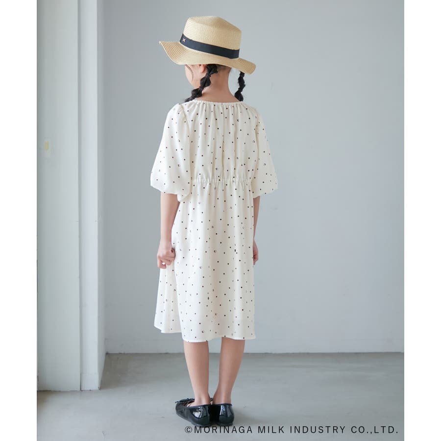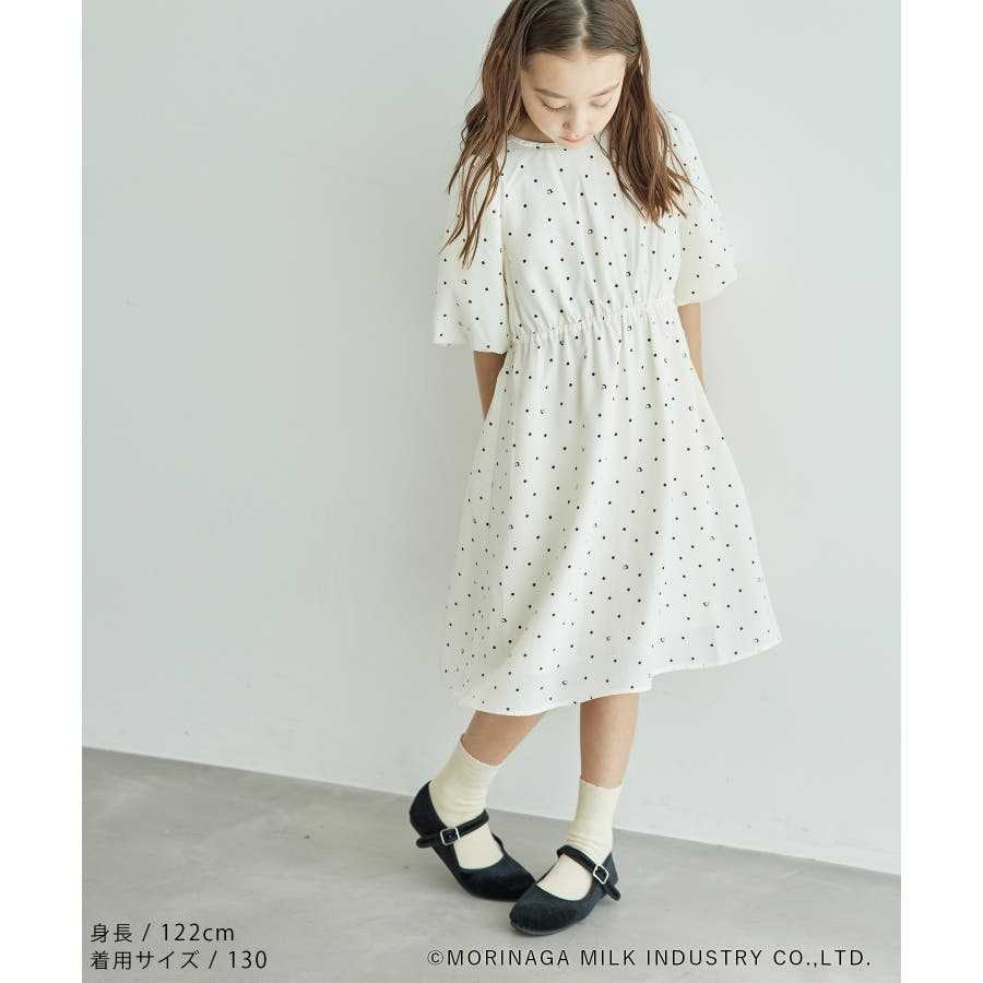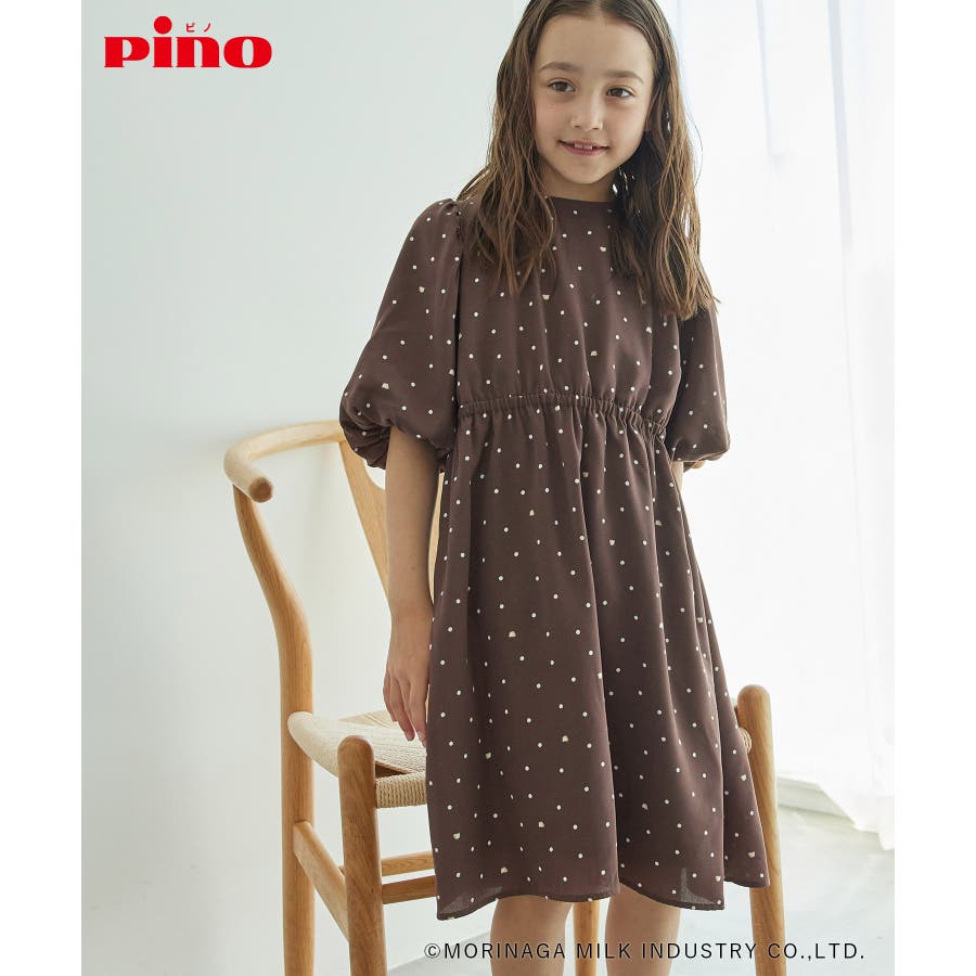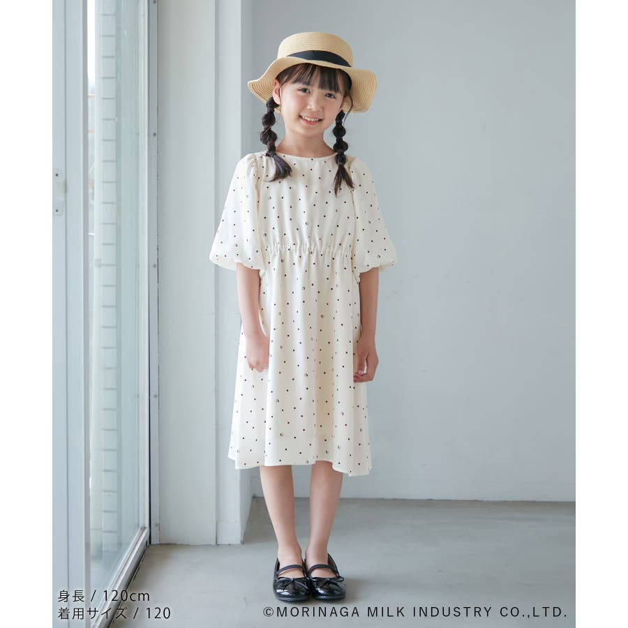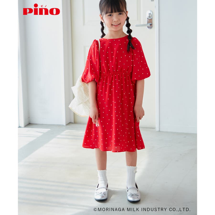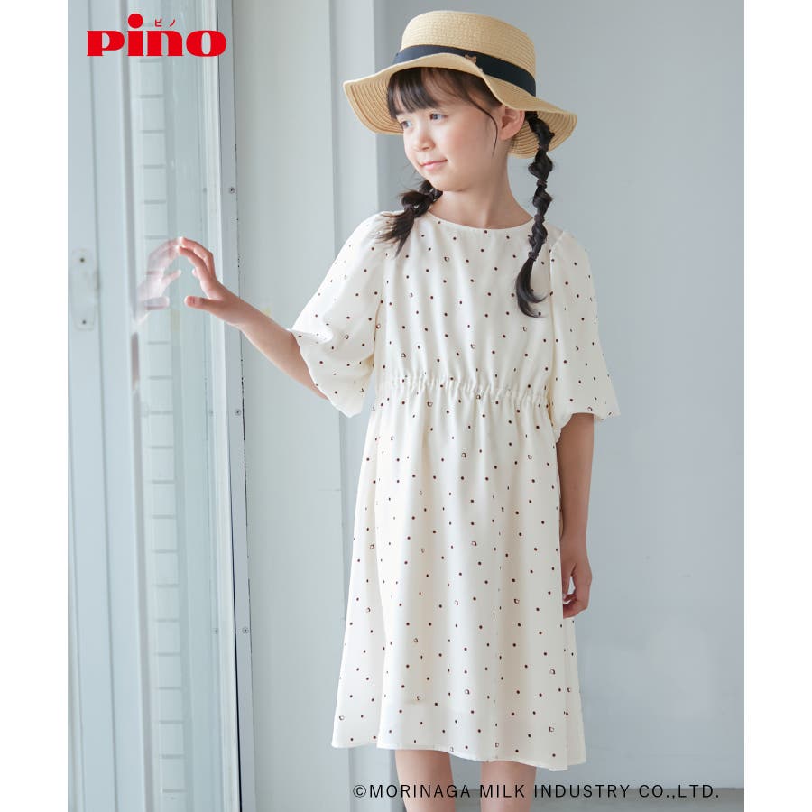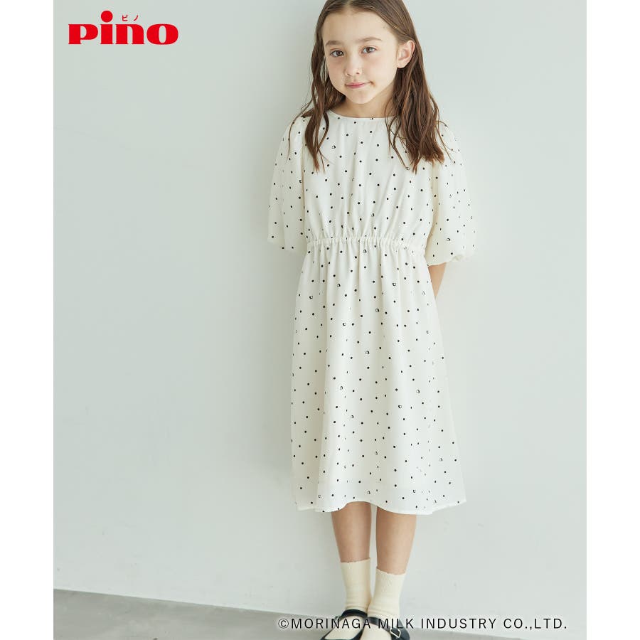 【デザイン・シルエット】 ・森永乳業の人気アイス【Pino/ピノ】とROPE' PICNICの楽しいコラボレーションが誕生。 ・ふんわりスリーブが可愛らしい、ドット柄の袖付きギャザーワンピース。 ・おでかけにも便利なきちんと感のあるデザイン。 【カラー】 ・ホワイト、ダークブラウン、レッドの、Pinoパッケージをイメージした3色展開。 【スタイリングポイント】 ・フリルソックスとストラップシューズやローファーで、お出かけに。 ・寒い日は短いボレロを羽織ると好バランス。 ・夏は爽やかに、麦わら帽子やグルカサンダルなどを合わせて。 ・同シリーズで大人(品番:GDE14950)も展開しているので、親子お揃いもおすすめ。 ----------------------------- 裏地:あり 透け感:オフホワイトのみ(11)ややあり 伸縮性:なし 生地感・厚さ:普通 ポケット:なし その他仕様:ウエストとネック部分にゴムあり 季節:春~秋 ----------------------------- ※110cmサイズはWEB限定展開です。 ※撮影時の光、お使いのモニター環境によって色の見え方が違う場合がございます。 ※girl'sモデル身長:120cm 着用サイズ:120/122cm 着用サイズ:130 ※boy'sモデル身長:111.5cm 着用サイズ:120