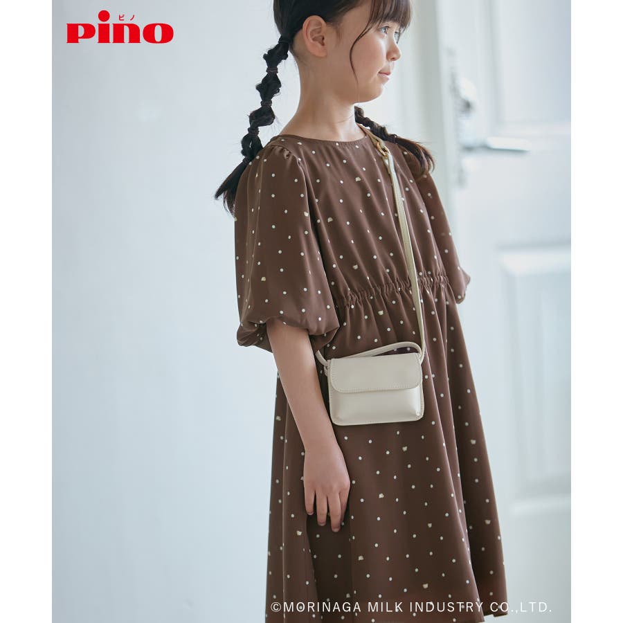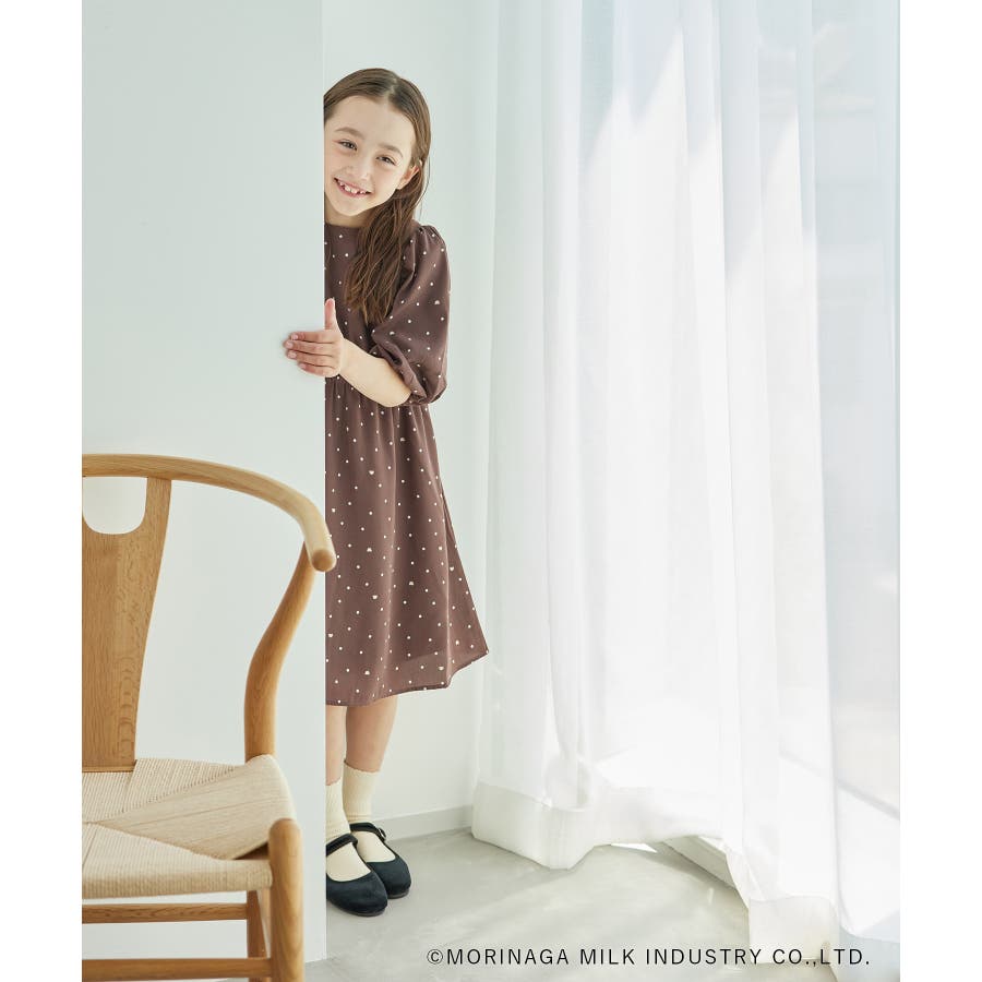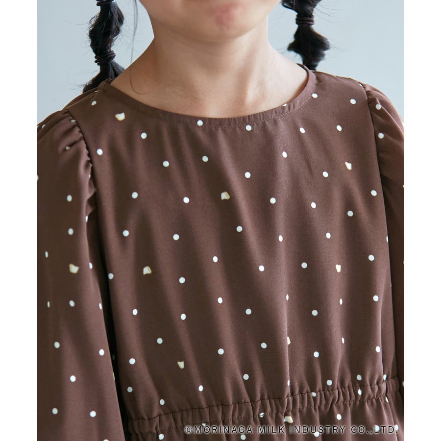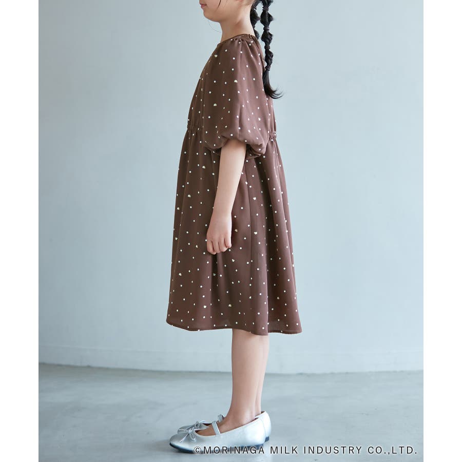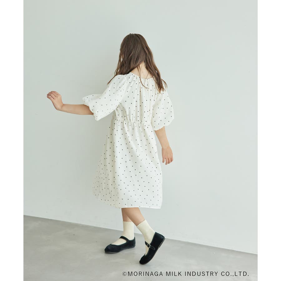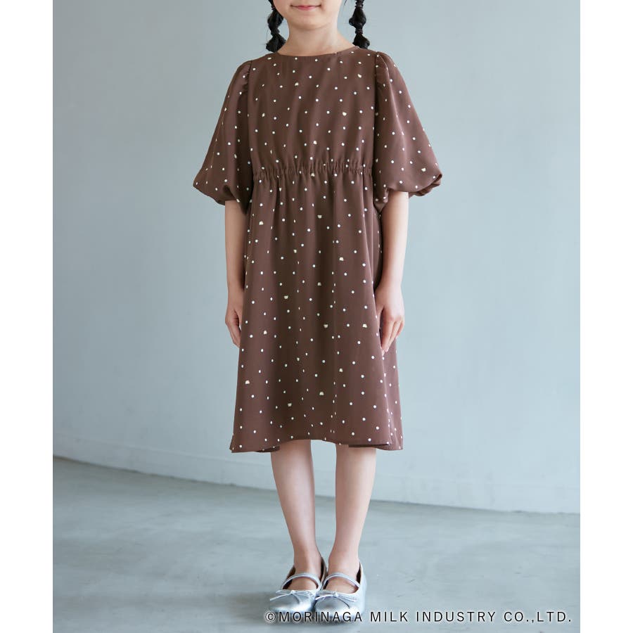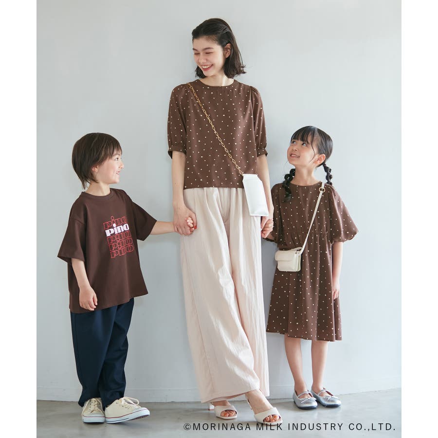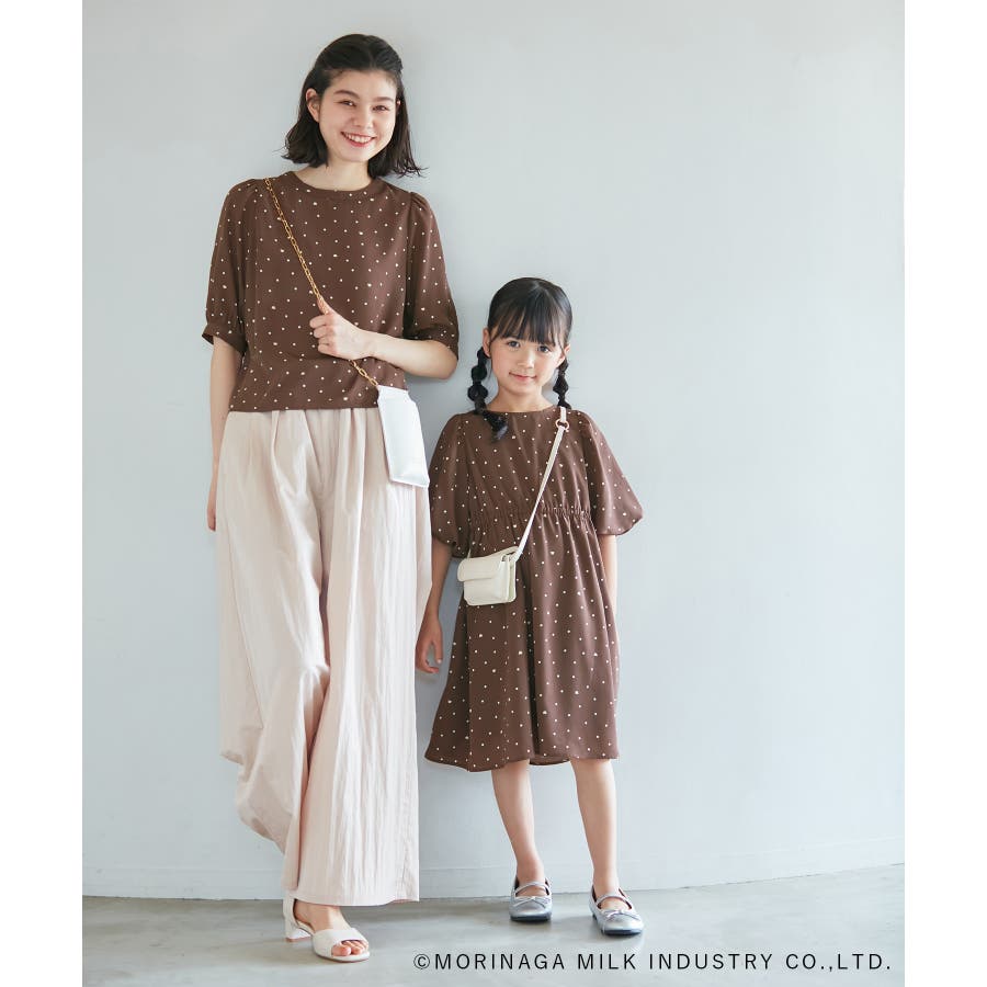 【デザイン・シルエット】 ・森永乳業の人気アイス【Pino/ピノ】とROPE' PICNICの楽しいコラボレーションが誕生。 ・ふんわりスリーブが可愛らしい、ドット柄の袖付きギャザーワンピース。 ・おでかけにも便利なきちんと感のあるデザイン。 【カラー】 ・ホワイト、ダークブラウン、レッドの、Pinoパッケージをイメージした3色展開。 【スタイリングポイント】 ・フリルソックスとストラップシューズやローファーで、お出かけに。 ・寒い日は短いボレロを羽織ると好バランス。 ・夏は爽やかに、麦わら帽子やグルカサンダルなどを合わせて。 ・同シリーズで大人(品番:GDE14950)も展開しているので、親子お揃いもおすすめ。 ----------------------------- 裏地:あり 透け感:オフホワイトのみ(11)ややあり 伸縮性:なし 生地感・厚さ:普通 ポケット:なし その他仕様:ウエストとネック部分にゴムあり 季節:春~秋 ----------------------------- ※110cmサイズはWEB限定展開です。 ※撮影時の光、お使いのモニター環境によって色の見え方が違う場合がございます。 ※girl'sモデル身長:120cm 着用サイズ:120/122cm 着用サイズ:130 ※boy'sモデル身長:111.5cm 着用サイズ:120