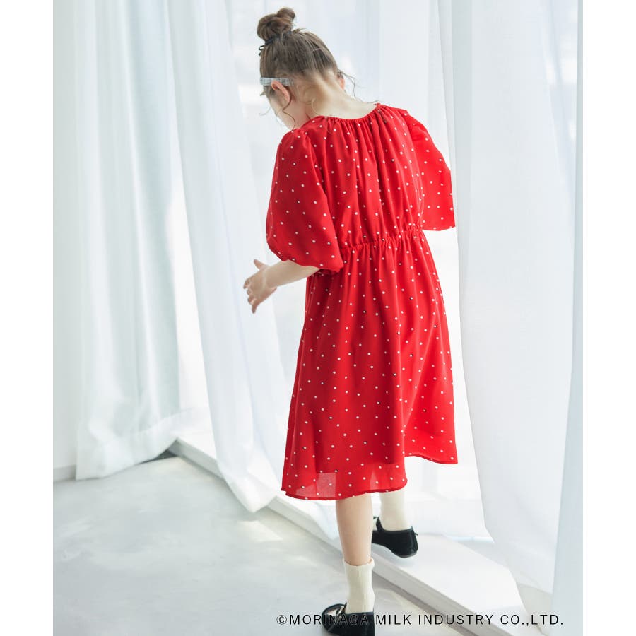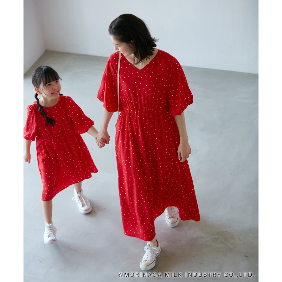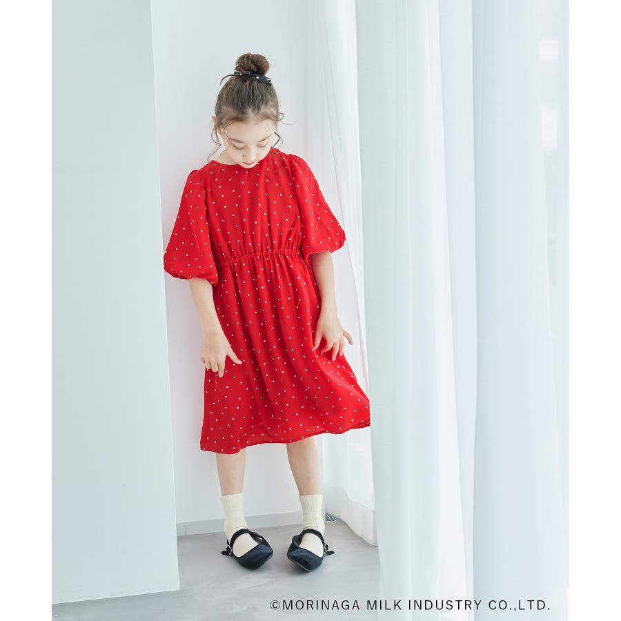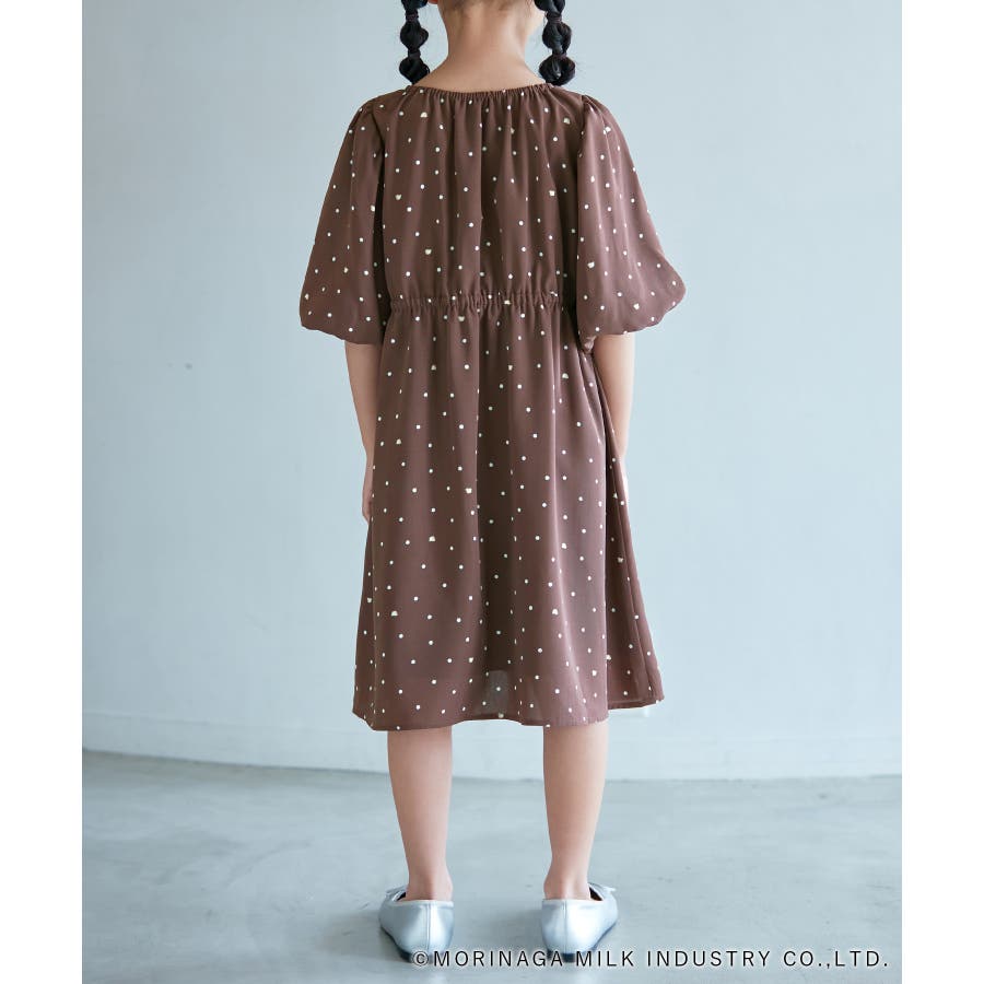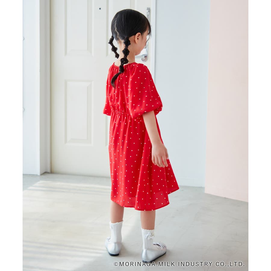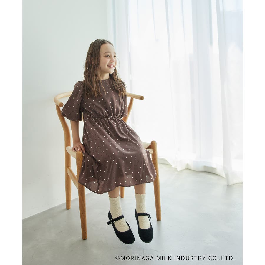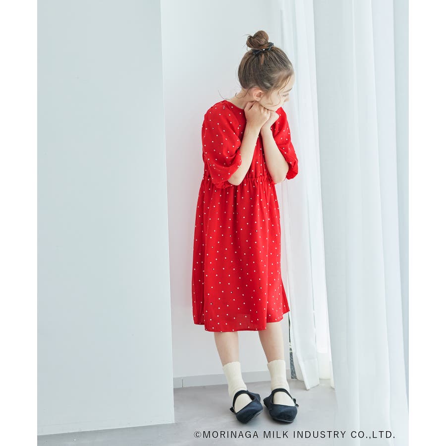 【デザイン・シルエット】 ・森永乳業の人気アイス【Pino/ピノ】とROPE' PICNICの楽しいコラボレーションが誕生。 ・ふんわりスリーブが可愛らしい、ドット柄の袖付きギャザーワンピース。 ・おでかけにも便利なきちんと感のあるデザイン。 【カラー】 ・ホワイト、ダークブラウン、レッドの、Pinoパッケージをイメージした3色展開。 【スタイリングポイント】 ・フリルソックスとストラップシューズやローファーで、お出かけに。 ・寒い日は短いボレロを羽織ると好バランス。 ・夏は爽やかに、麦わら帽子やグルカサンダルなどを合わせて。 ・同シリーズで大人(品番:GDE14950)も展開しているので、親子お揃いもおすすめ。 ----------------------------- 裏地:あり 透け感:オフホワイトのみ(11)ややあり 伸縮性:なし 生地感・厚さ:普通 ポケット:なし その他仕様:ウエストとネック部分にゴムあり 季節:春~秋 ----------------------------- ※110cmサイズはWEB限定展開です。 ※撮影時の光、お使いのモニター環境によって色の見え方が違う場合がございます。 ※girl'sモデル身長:120cm 着用サイズ:120/122cm 着用サイズ:130 ※boy'sモデル身長:111.5cm 着用サイズ:120