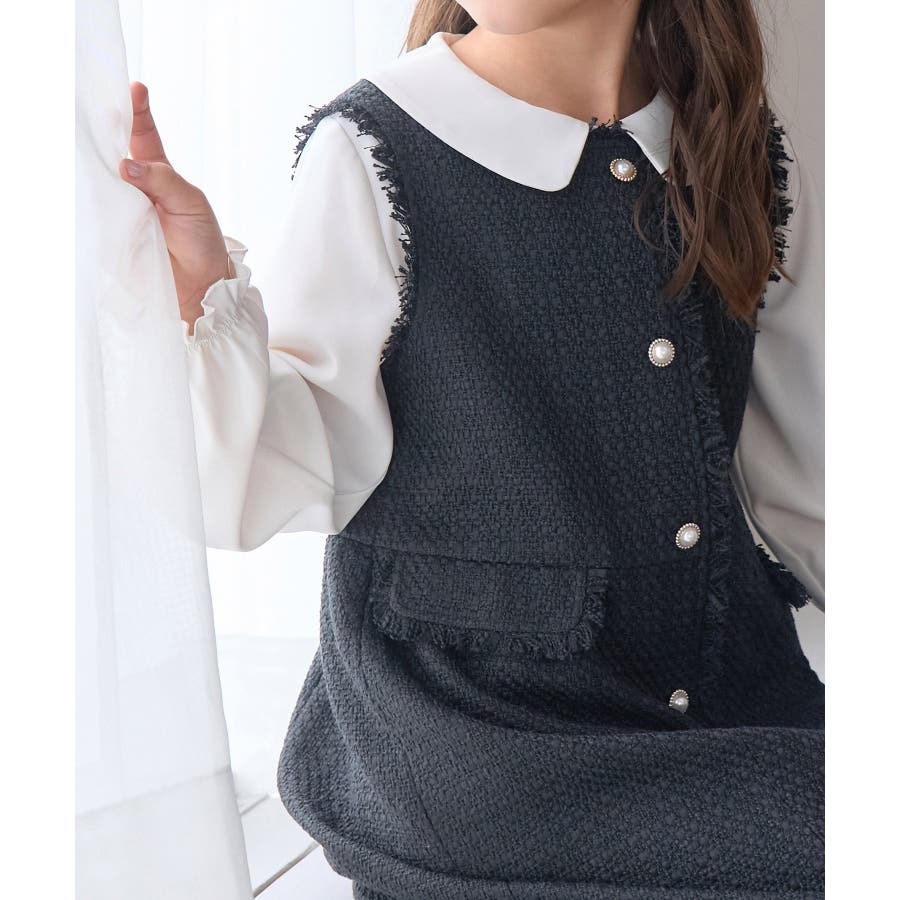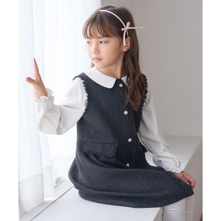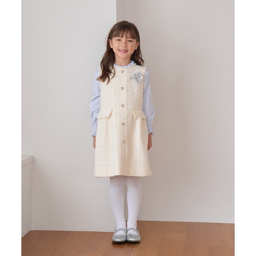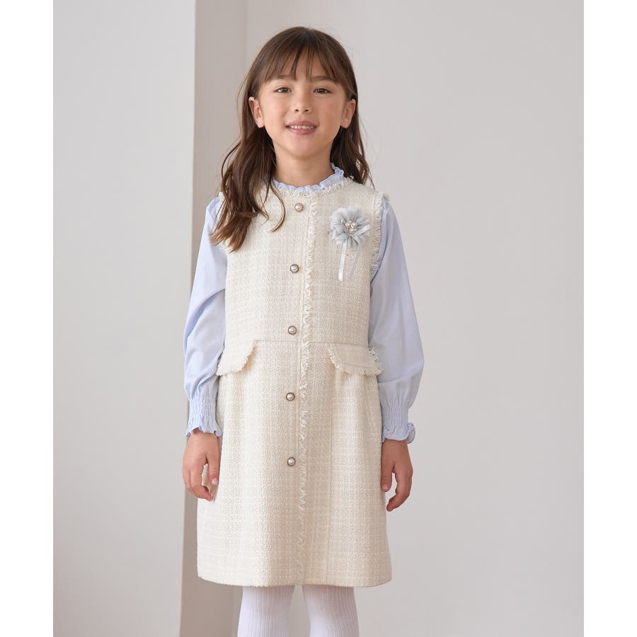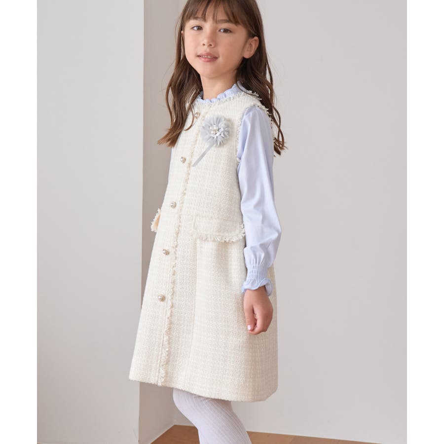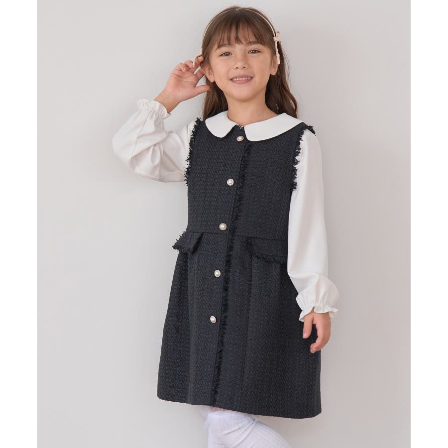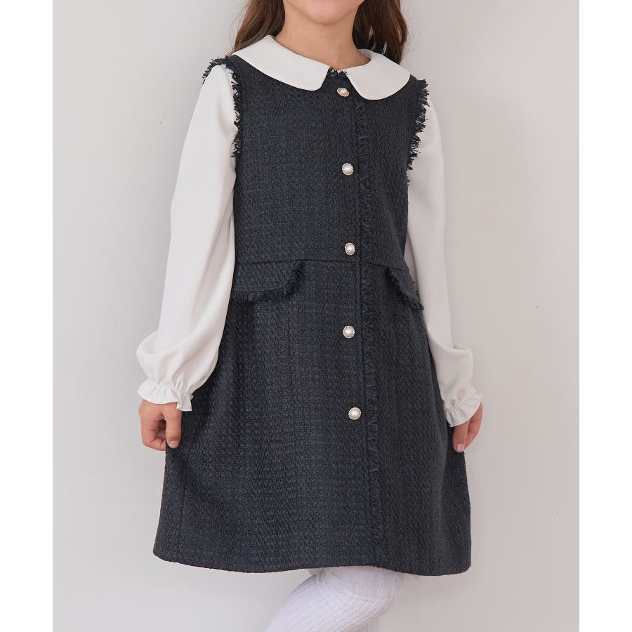 【KIDS キッズ】パールボタンツイードジャンパースカート セレモニー対応