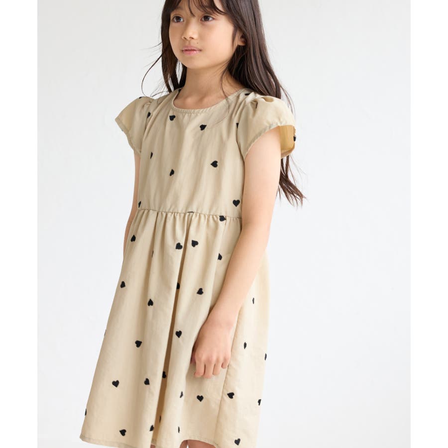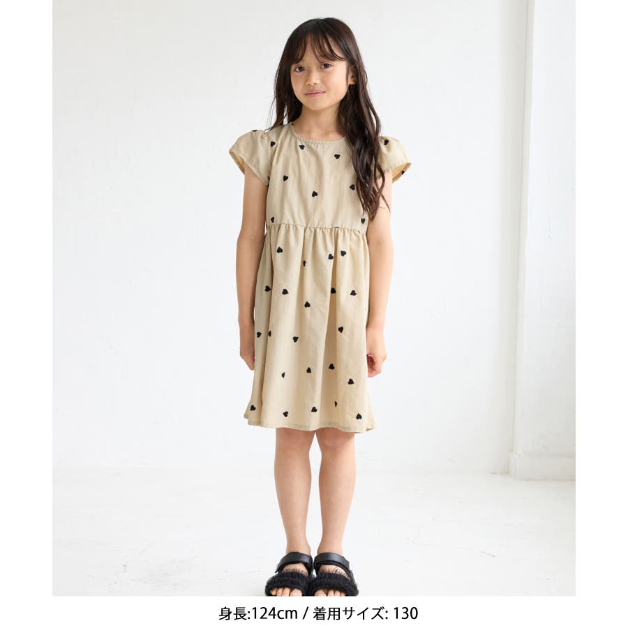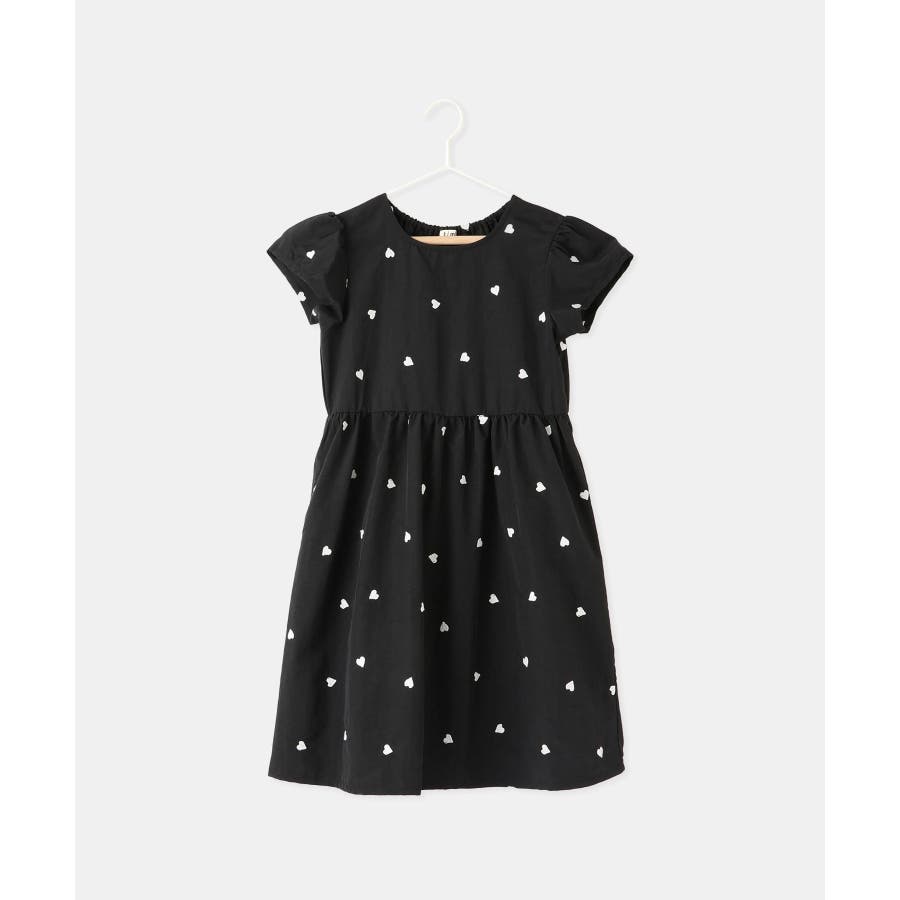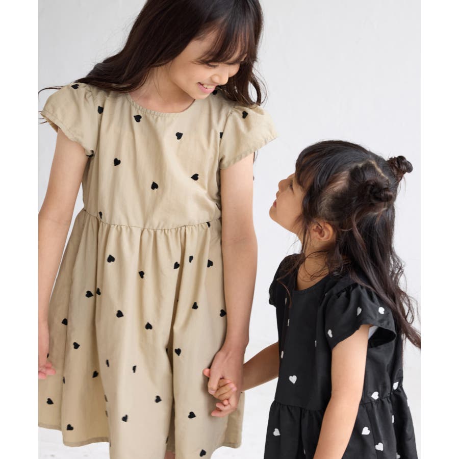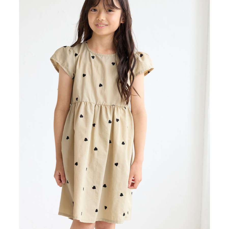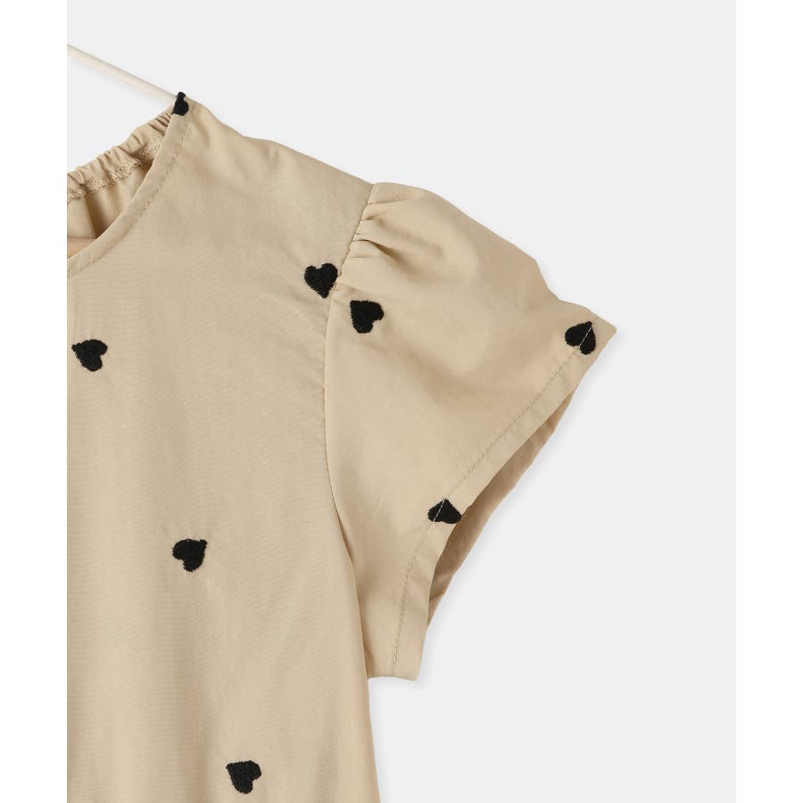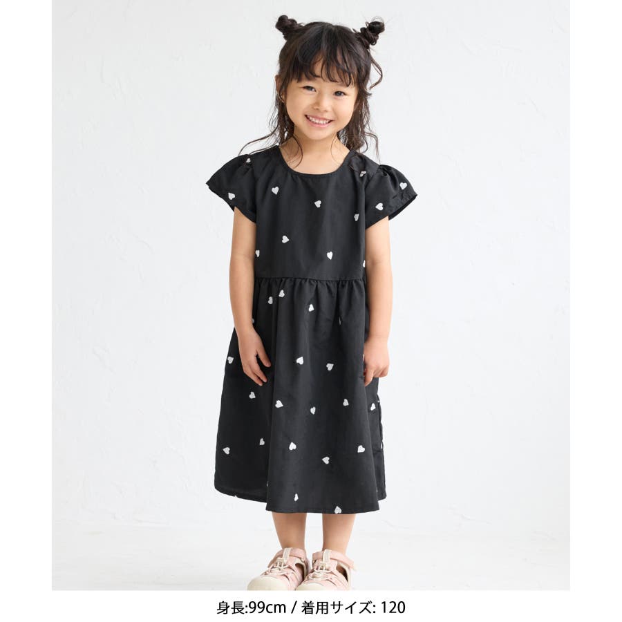 【KIDS/キッズ】ハート刺繍キャップスリーブナイロンワンピース