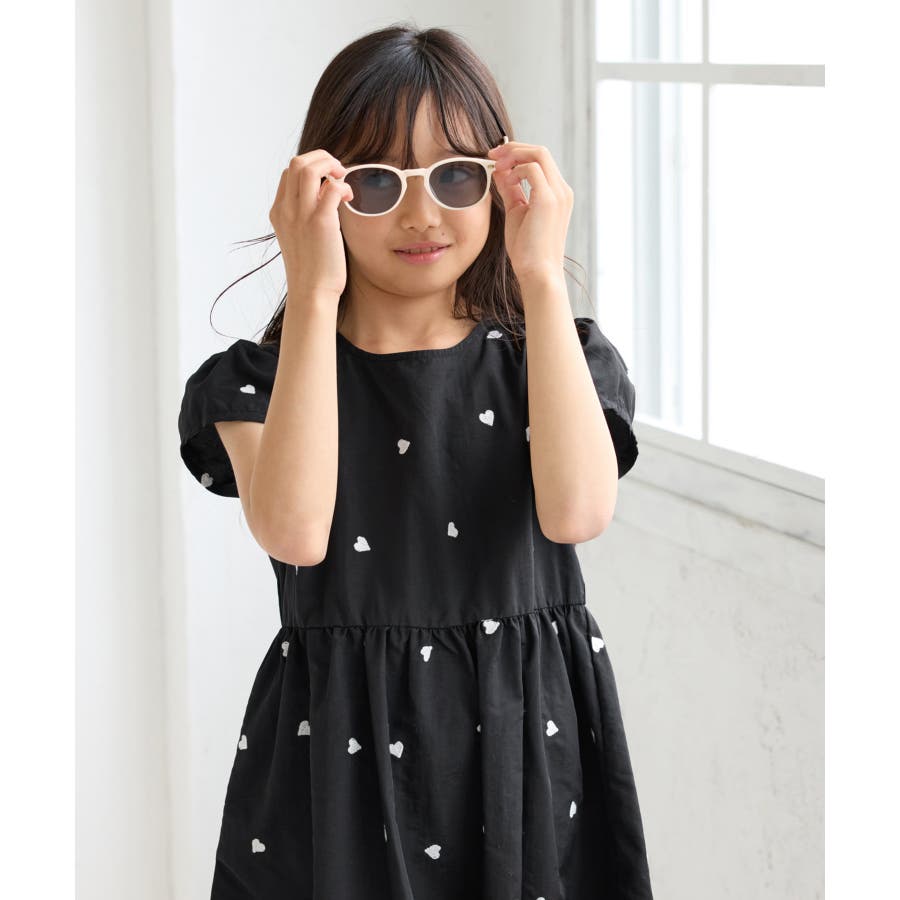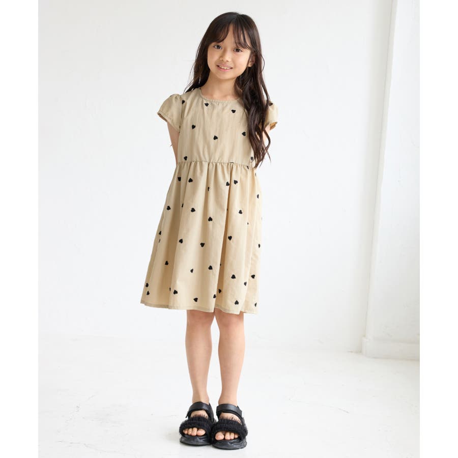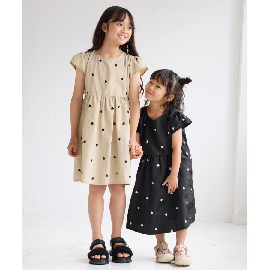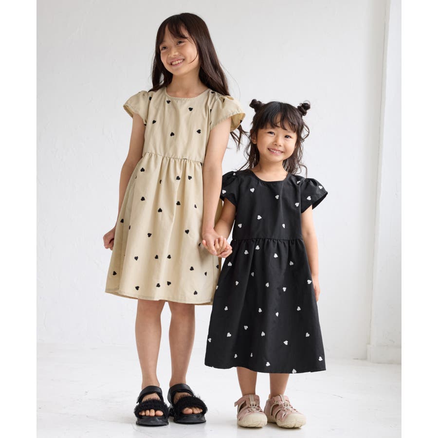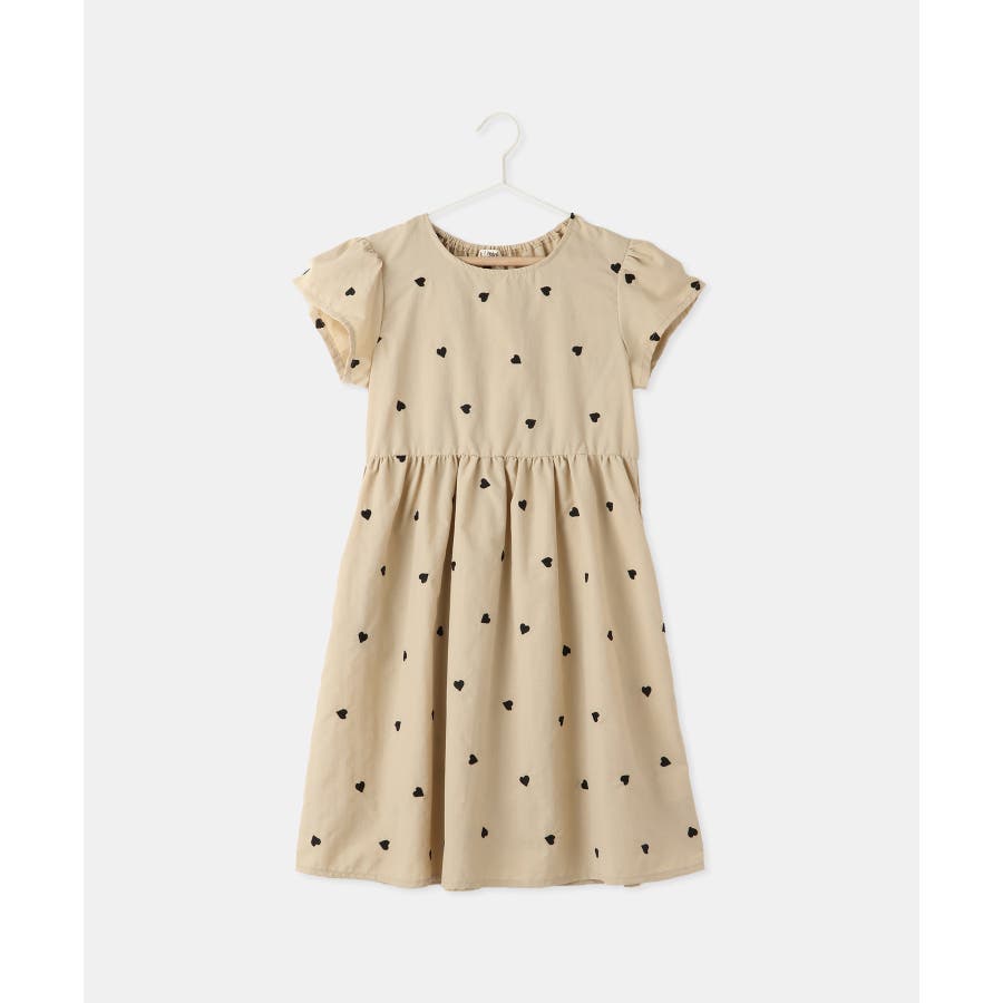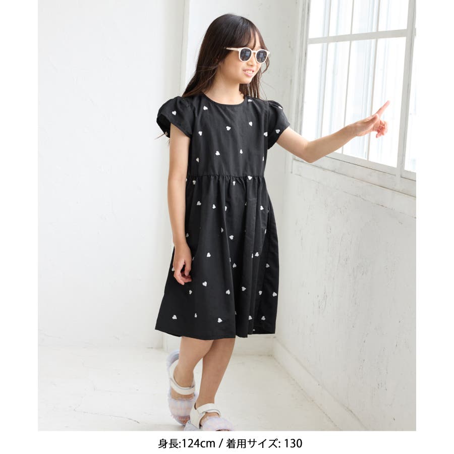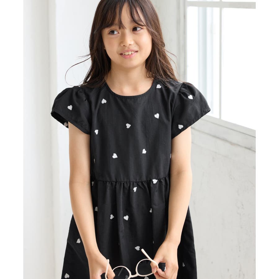 【KIDS/キッズ】ハート刺繍キャップスリーブナイロンワンピース