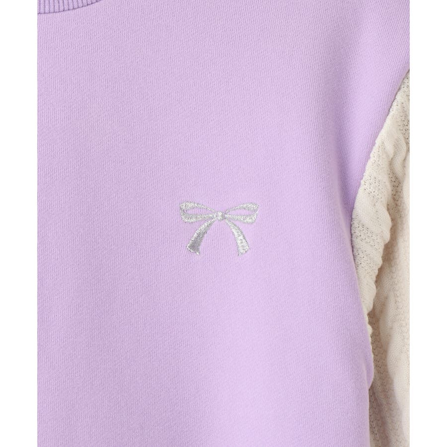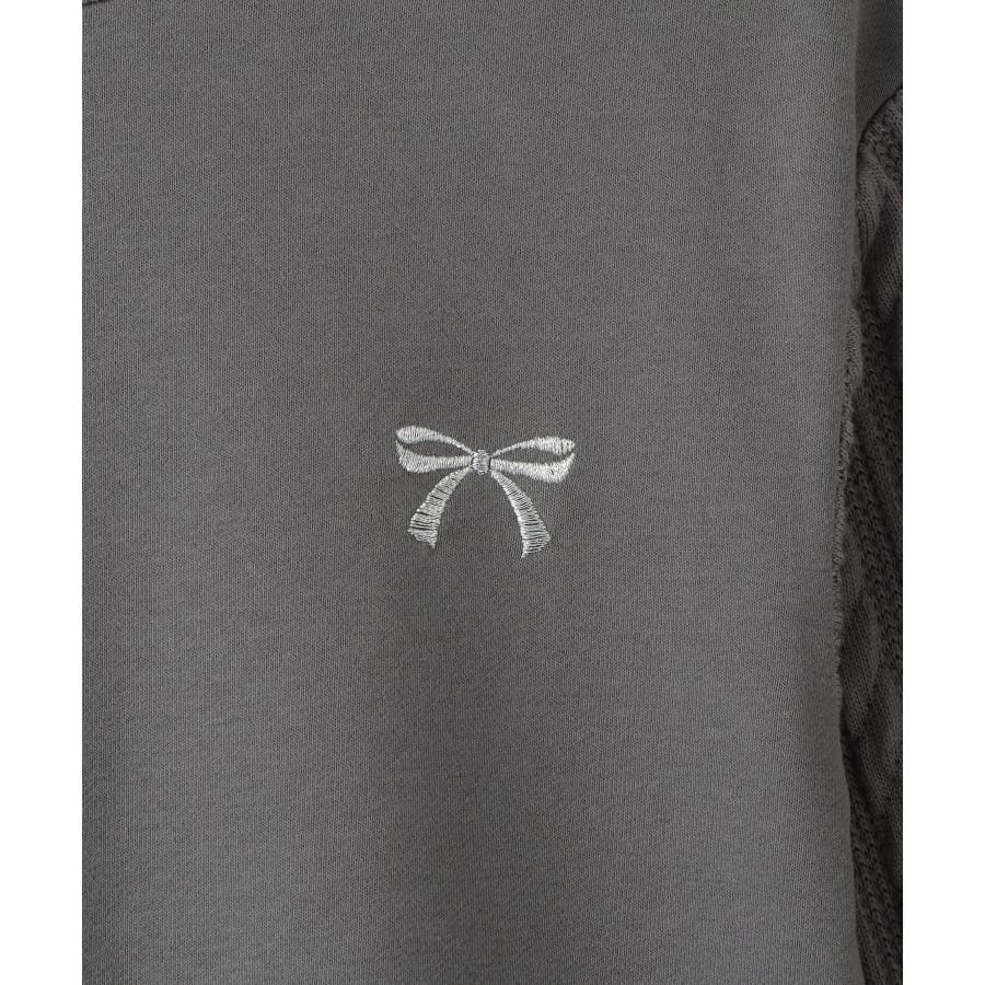 ・左胸のリボン刺繍がかわいいポイント。少しラメの入った糸を使用。