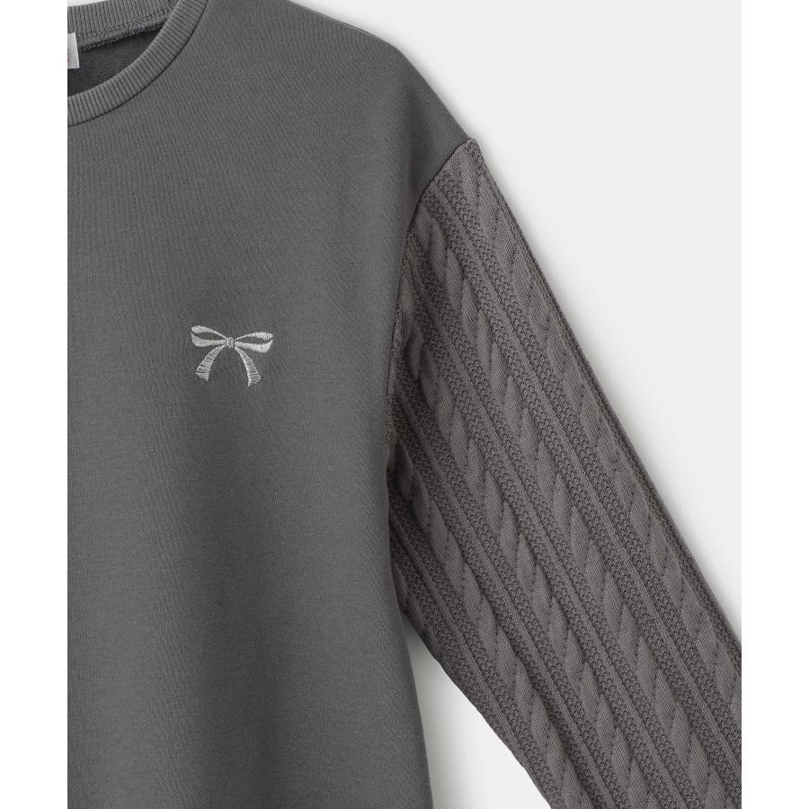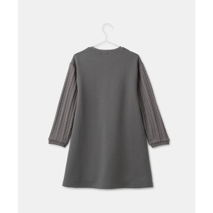 ・袖のケーブル編みがポイントの裏起毛のカットソーワンピース。