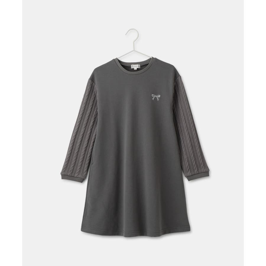 ・身頃部分は裏起毛、袖部分はケーブルカットソーがドッキングになったワンピース。