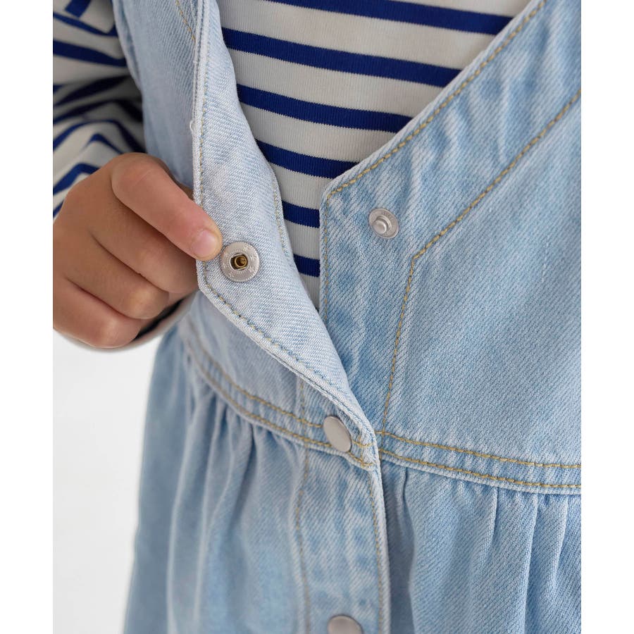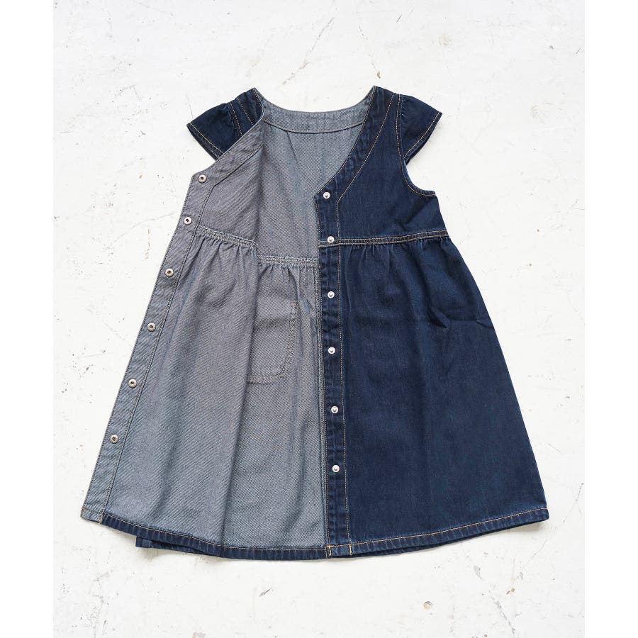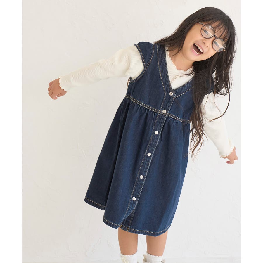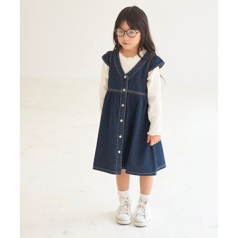 【デザイン・シルエット】 ・前開きのデニムワンピース。 ・バックポケットでカジュアルな雰囲気もプラス。 【カラー】 ・ネイビー、サックスブルーの2色展開。 【スタイリングポイント】 ・デザイン性があり、シンプルに着こなすのがマスト。 ・フリルソックスとスニーカー合わせでキュートなカジュアルコーデに。 ・同シリーズで大人のスカート(品番:GDC54030)も展開しているので、親子お揃いもおすすめ。 ----------------------------- 裏地:なし 透け感:なし 伸縮性:なし 生地感・厚さ:普通 ポケット:あり ボタン:全て開閉可能 季節:春~秋 ----------------------------- ※撮影時の光、お使いのモニター環境によって色の見え方が違う場合がございます。 ※モデル身長:113.5cm 着用サイズ:120
