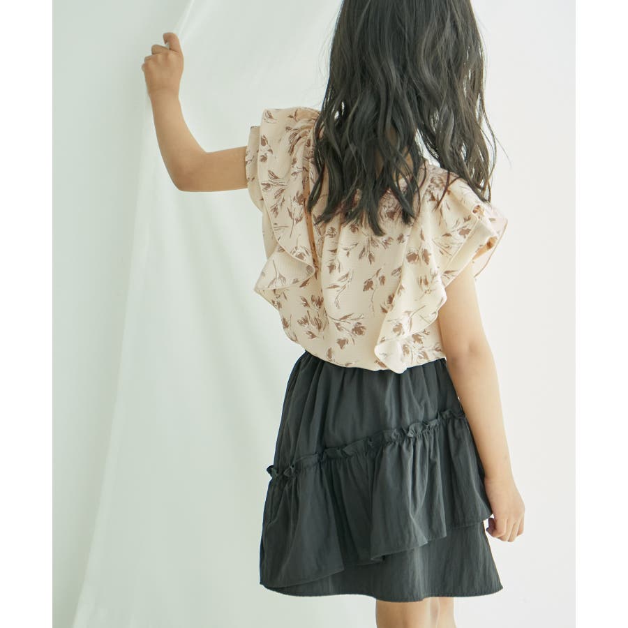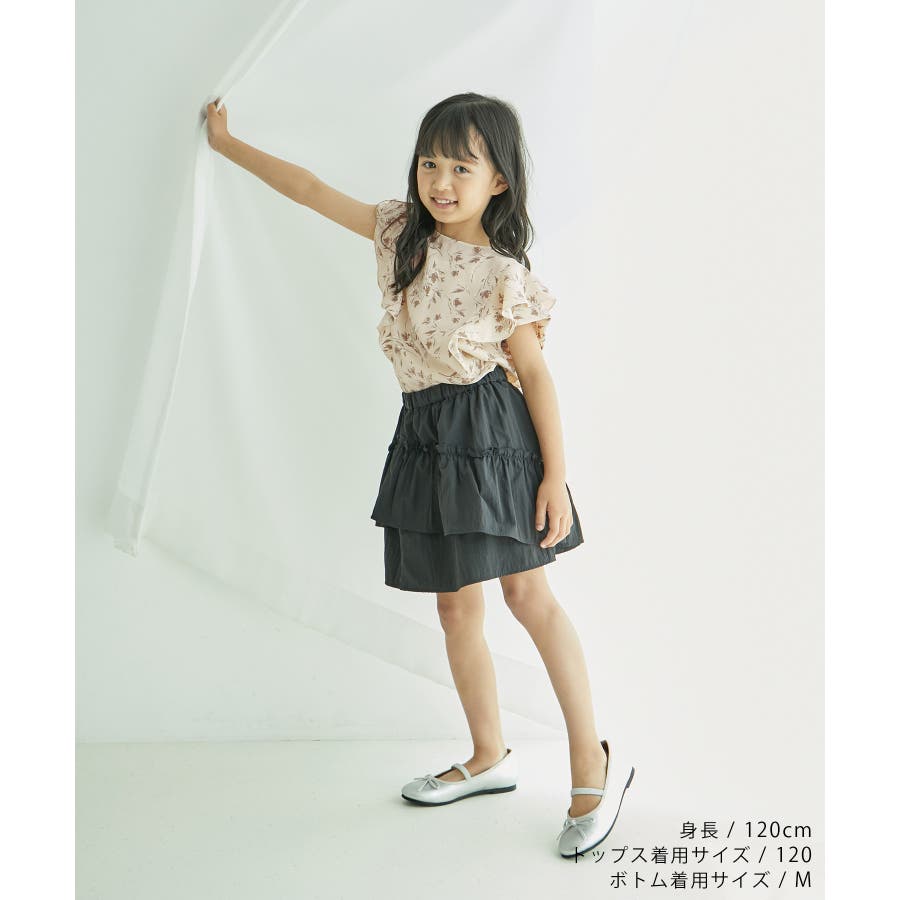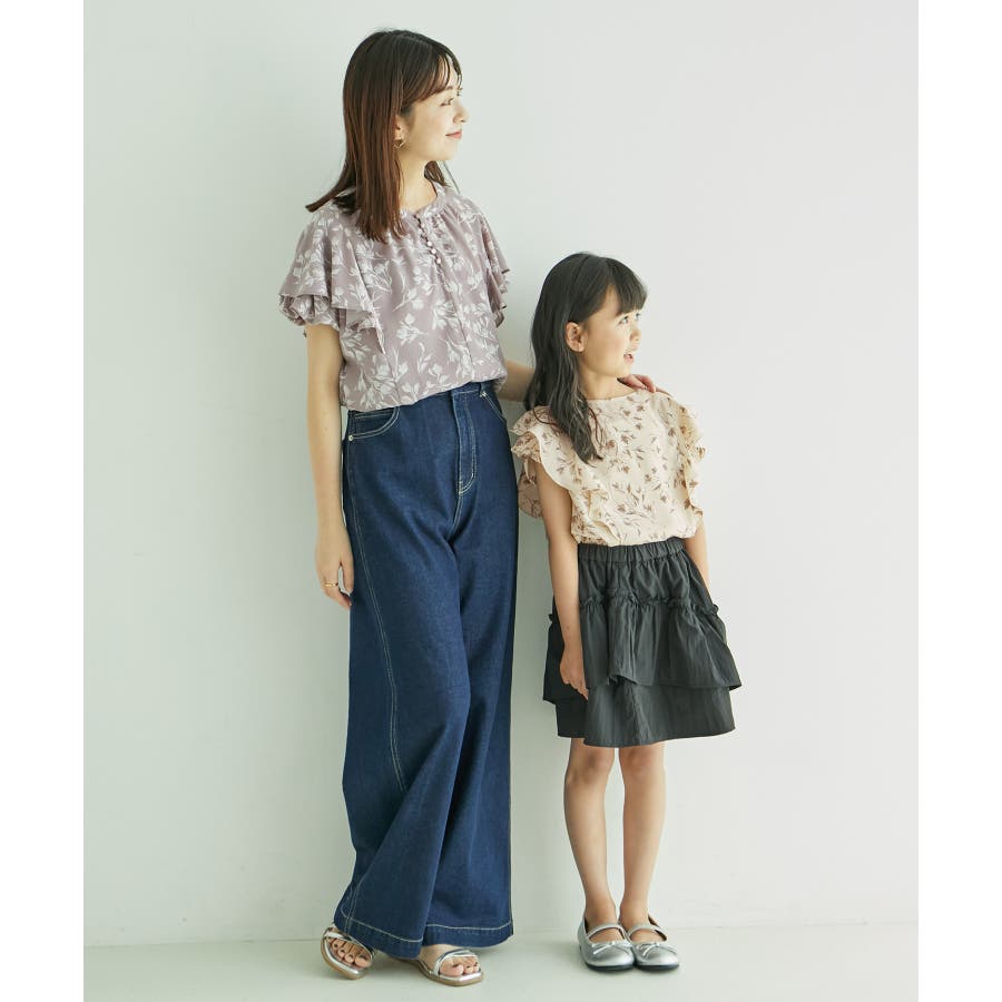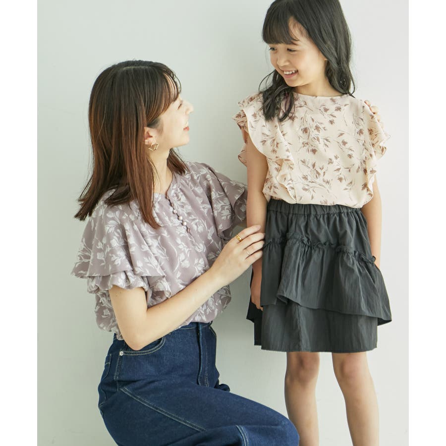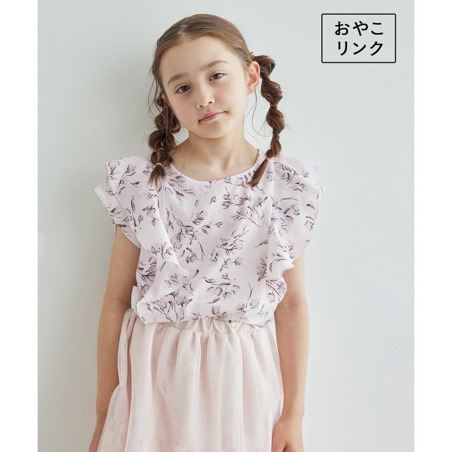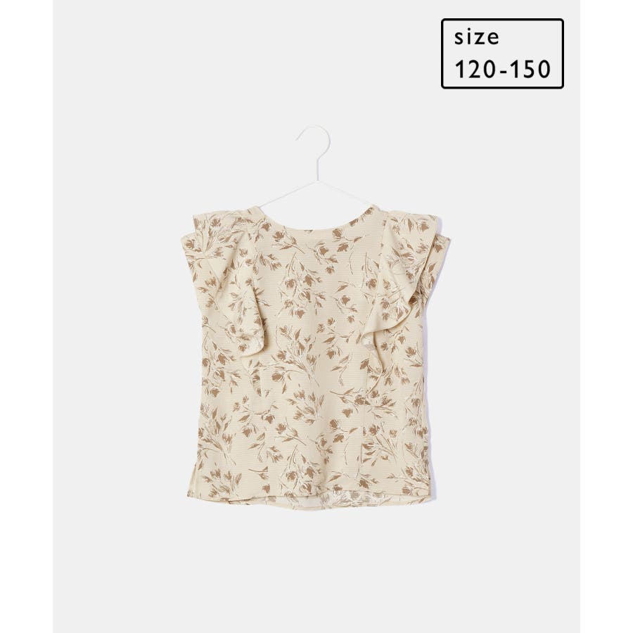 【素材感】 ・ぽこぽことした表情のある素材。 【デザイン・シルエット】 ・フラワープリントのプルオーバーブラウス。 ・前後に渡したラッフルデザインが華やかさをアップ。 ・裾はサイドスリット入り。 【カラー】 ・ホワイト、ベージュの落ち着いた2色展開。 【スタイリングポイント】 ・きれいめなスカートにインして着こなすと、お出かけもOKの上品さに。 ・ジーンズなどのカジュアルボトムを普段は合わせても◎。 ・同シリーズで大人(品番:GDH14420)も展開しているので、親子お揃いもおすすめ。 ----------------------------- 裏地:なし 透け感:ホワイト系(11)はややあり 伸縮性:なし 生地感・厚さ:やや薄手 その他仕様:後ろ首元ゴム 季節:夏 ----------------------------- ※撮影時の光、お使いのモニター環境によって色の見え方が違う場合がございます。 ※モデル身長:122cm 着用サイズ:120