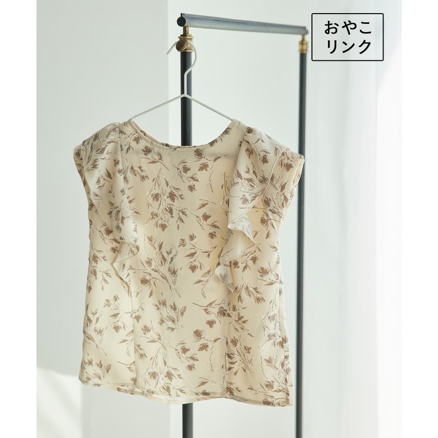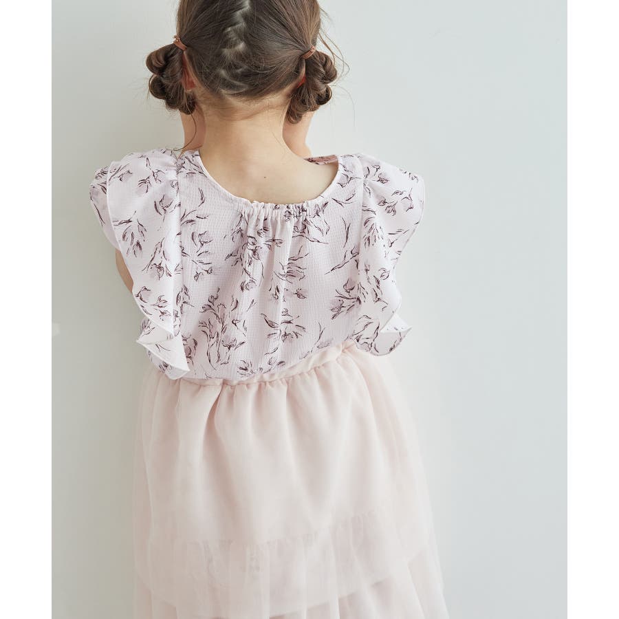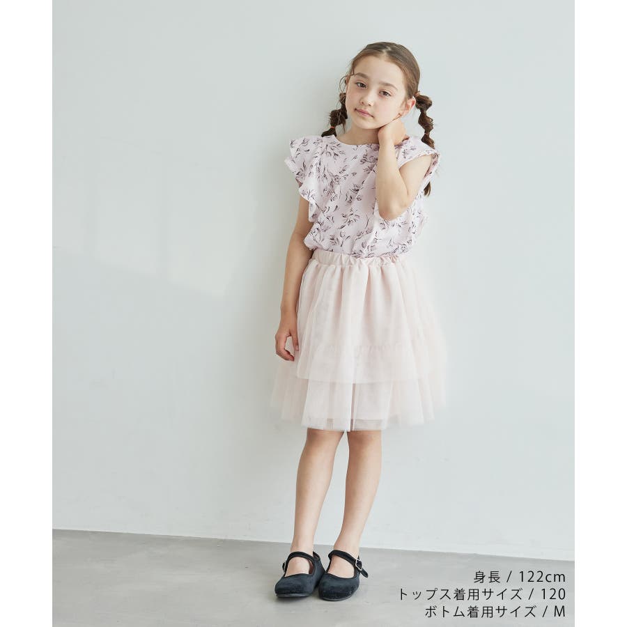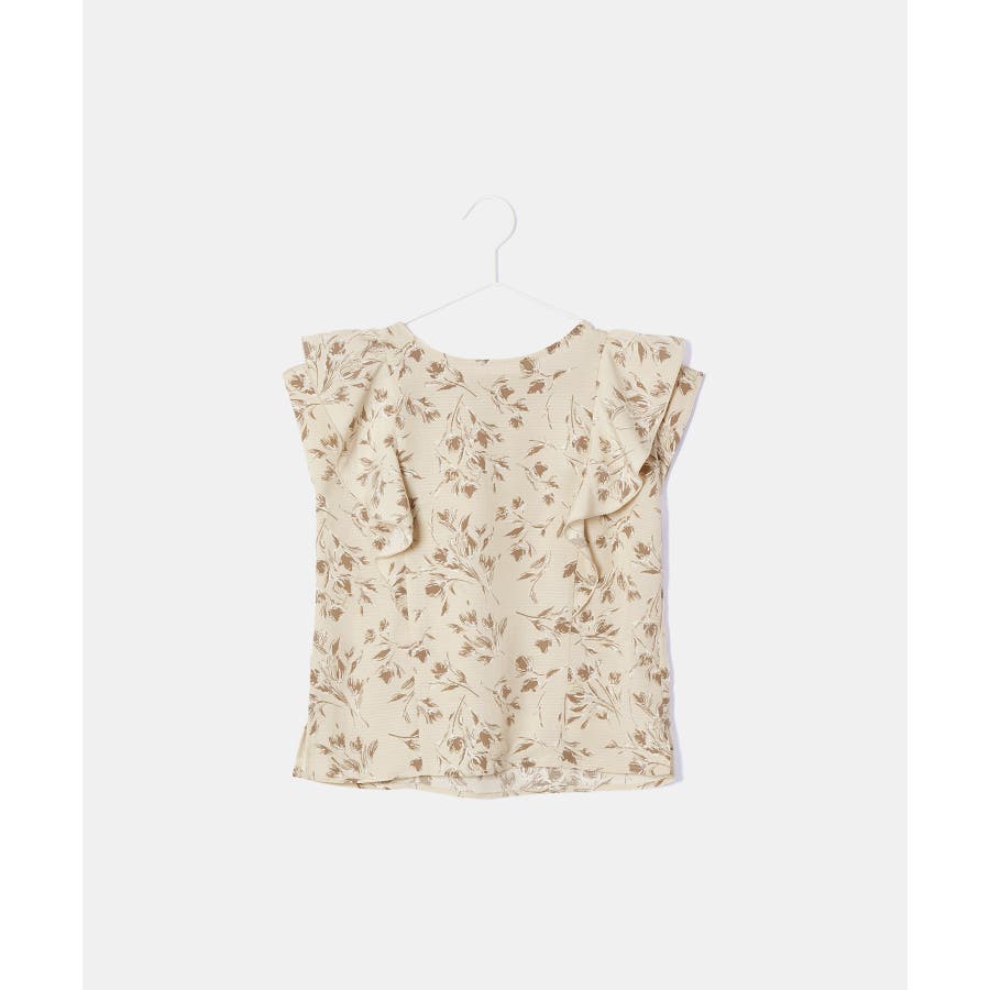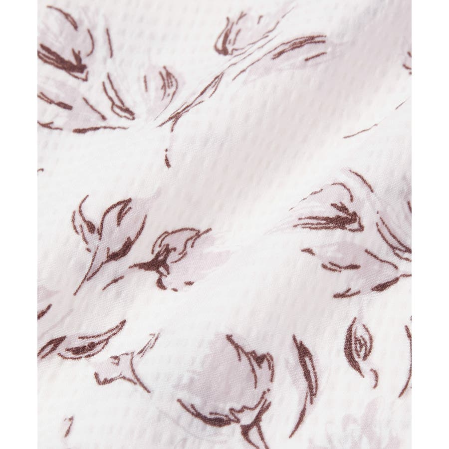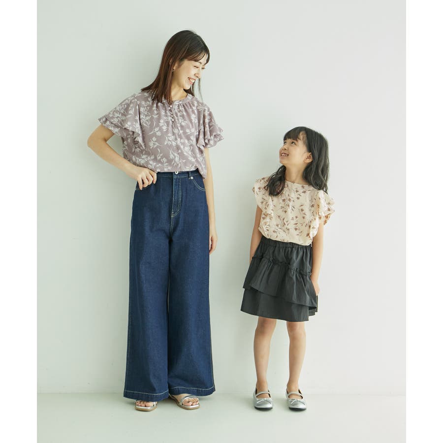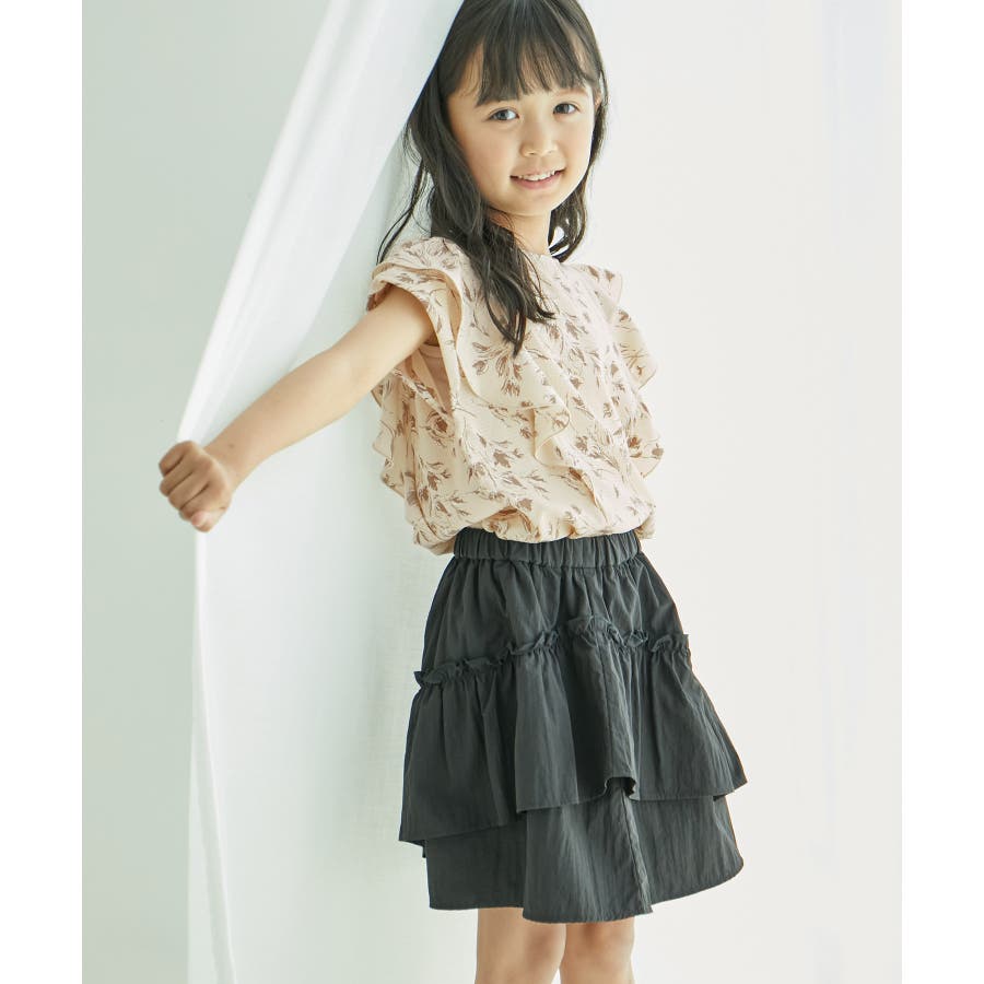 【素材感】 ・ぽこぽことした表情のある素材。 【デザイン・シルエット】 ・フラワープリントのプルオーバーブラウス。 ・前後に渡したラッフルデザインが華やかさをアップ。 ・裾はサイドスリット入り。 【カラー】 ・ホワイト、ベージュの落ち着いた2色展開。 【スタイリングポイント】 ・きれいめなスカートにインして着こなすと、お出かけもOKの上品さに。 ・ジーンズなどのカジュアルボトムを普段は合わせても◎。 ・同シリーズで大人(品番:GDH14420)も展開しているので、親子お揃いもおすすめ。 ----------------------------- 裏地:なし 透け感:ホワイト系(11)はややあり 伸縮性:なし 生地感・厚さ:やや薄手 その他仕様:後ろ首元ゴム 季節:夏 ----------------------------- ※撮影時の光、お使いのモニター環境によって色の見え方が違う場合がございます。 ※モデル身長:122cm 着用サイズ:120