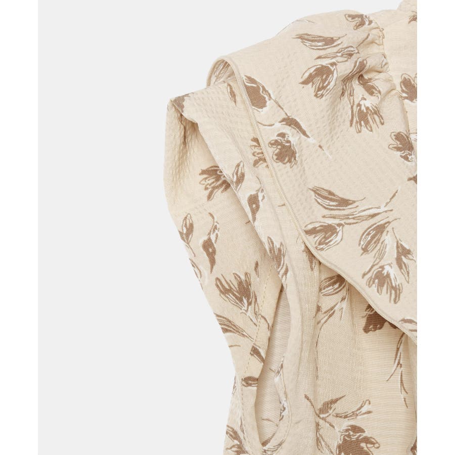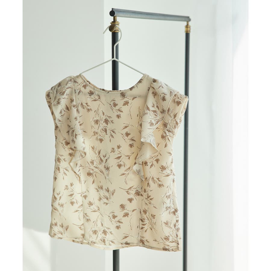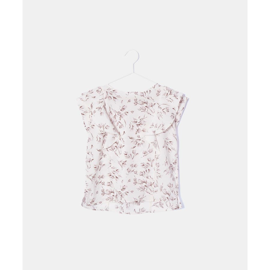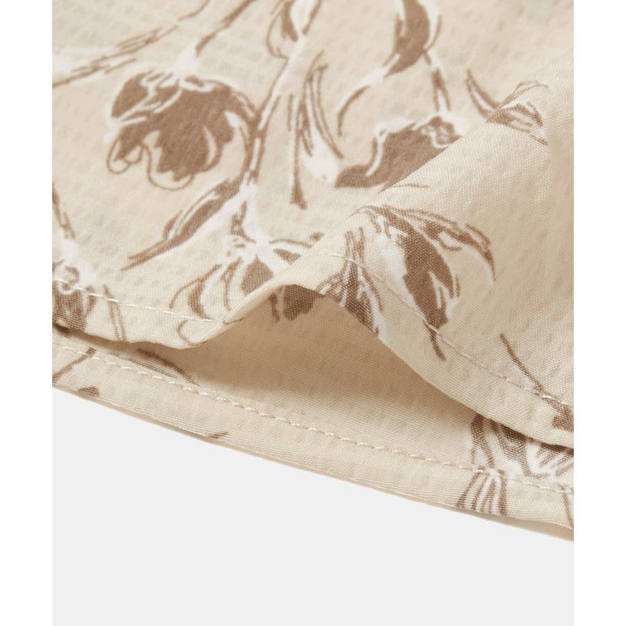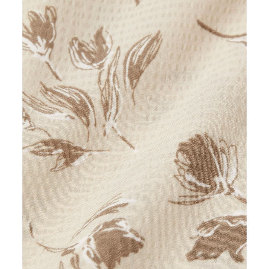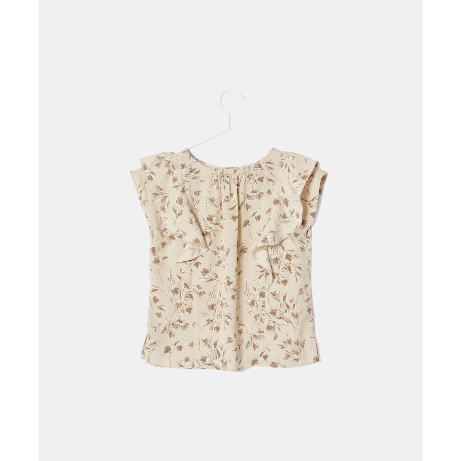 【素材感】 ・ぽこぽことした表情のある素材。 【デザイン・シルエット】 ・フラワープリントのプルオーバーブラウス。 ・前後に渡したラッフルデザインが華やかさをアップ。 ・裾はサイドスリット入り。 【カラー】 ・ホワイト、ベージュの落ち着いた2色展開。 【スタイリングポイント】 ・きれいめなスカートにインして着こなすと、お出かけもOKの上品さに。 ・ジーンズなどのカジュアルボトムを普段は合わせても◎。 ・同シリーズで大人(品番:GDH14420)も展開しているので、親子お揃いもおすすめ。 ----------------------------- 裏地:なし 透け感:ホワイト系(11)はややあり 伸縮性:なし 生地感・厚さ:やや薄手 その他仕様:後ろ首元ゴム 季節:夏 ----------------------------- ※撮影時の光、お使いのモニター環境によって色の見え方が違う場合がございます。 ※モデル身長:122cm 着用サイズ:120