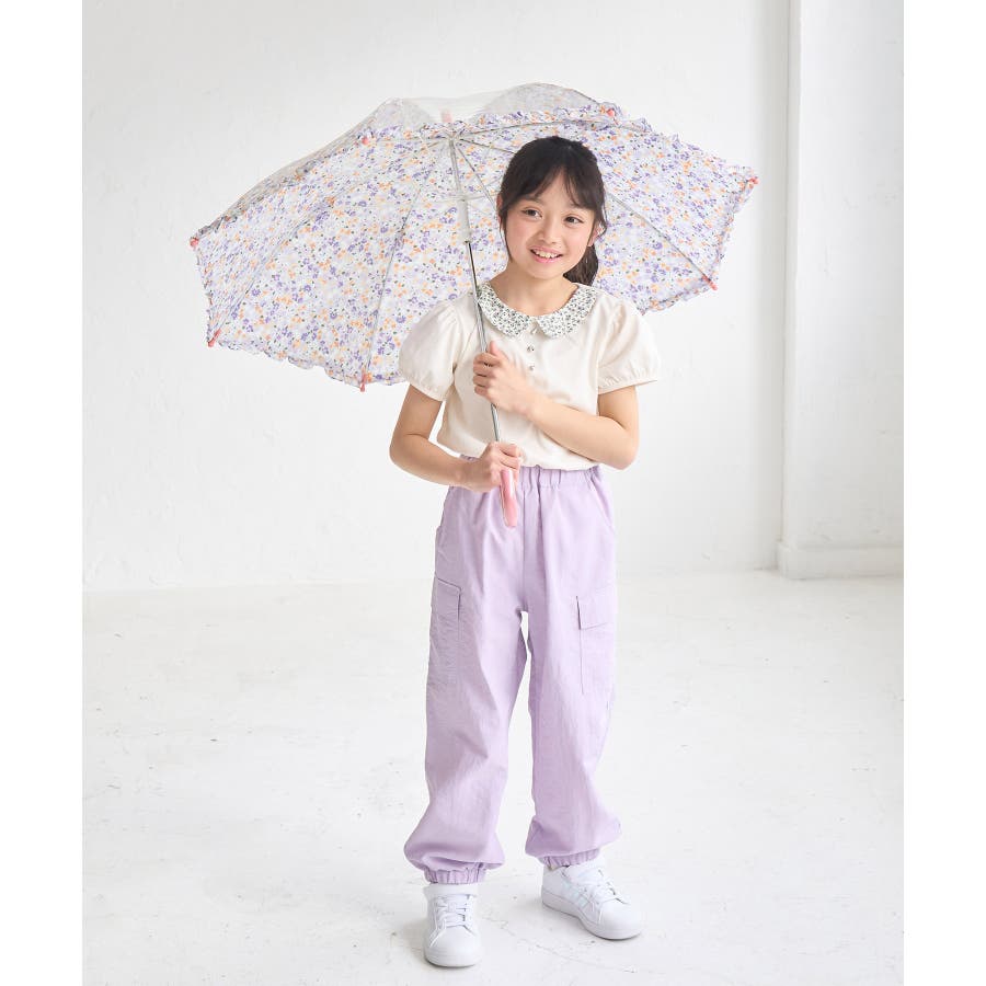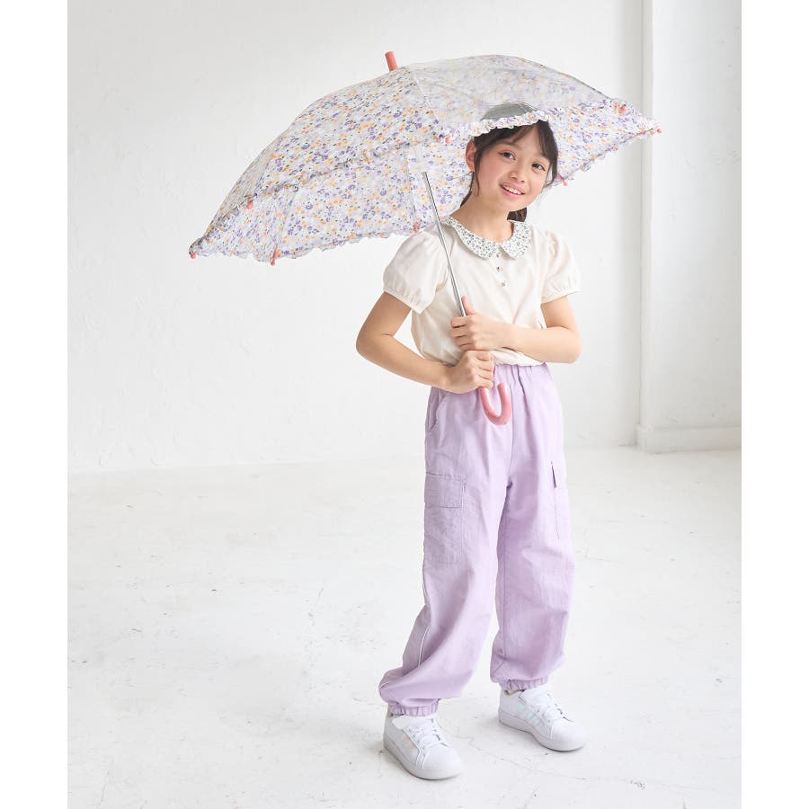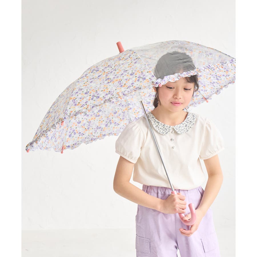 ・ガーリッシュなパステルトーンの花柄が愛らしい、キッズ用の長傘。