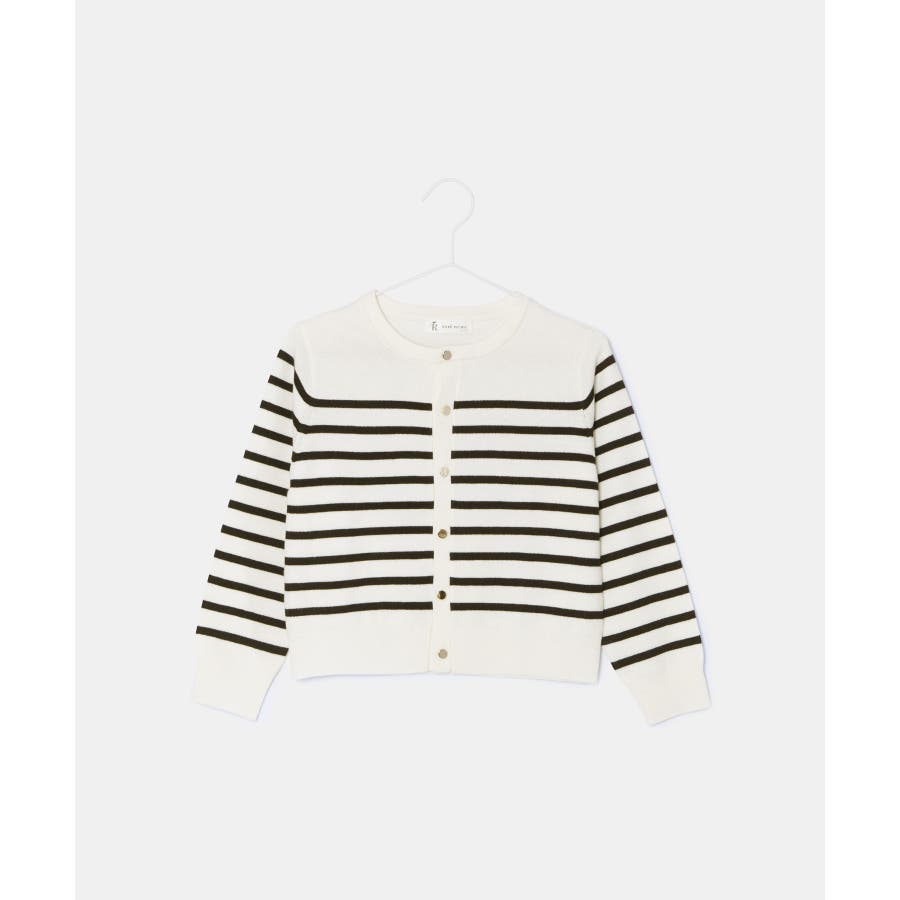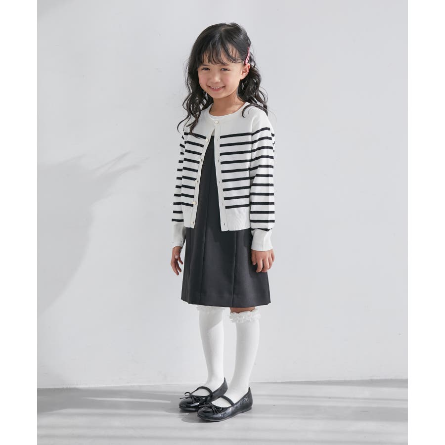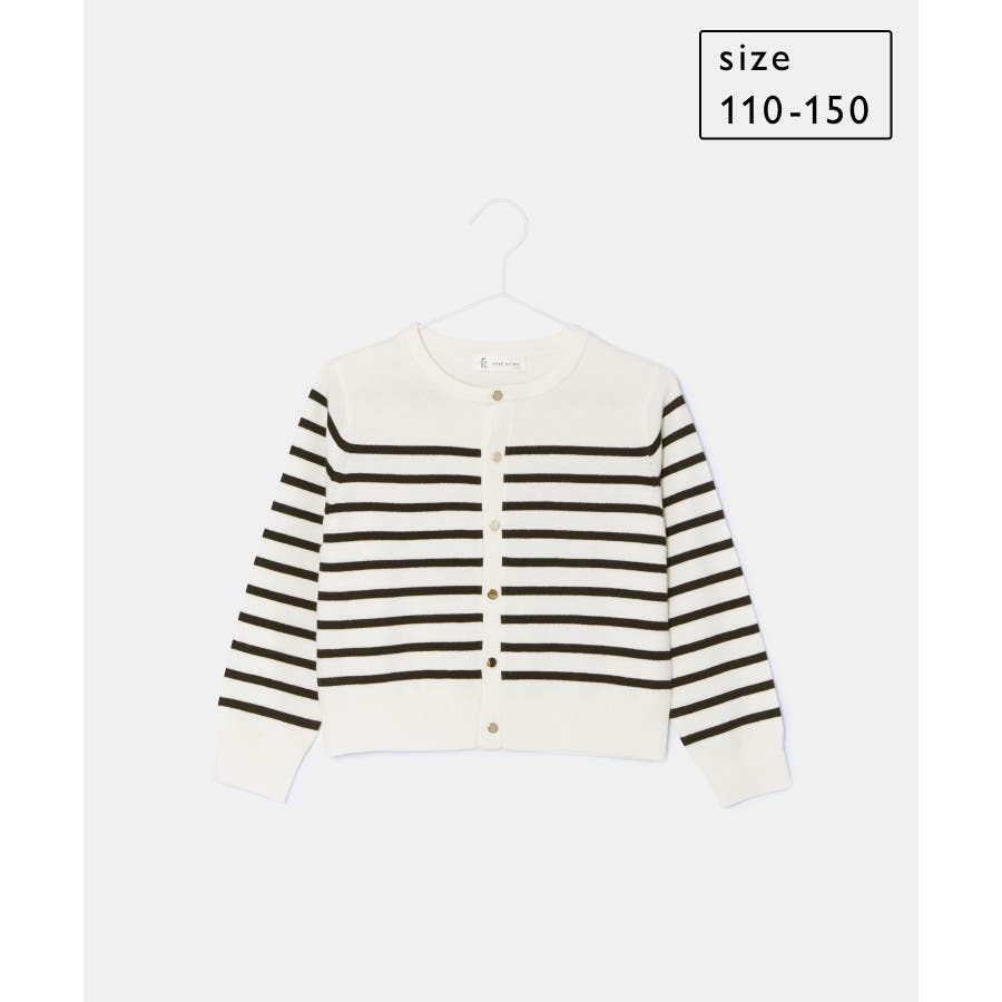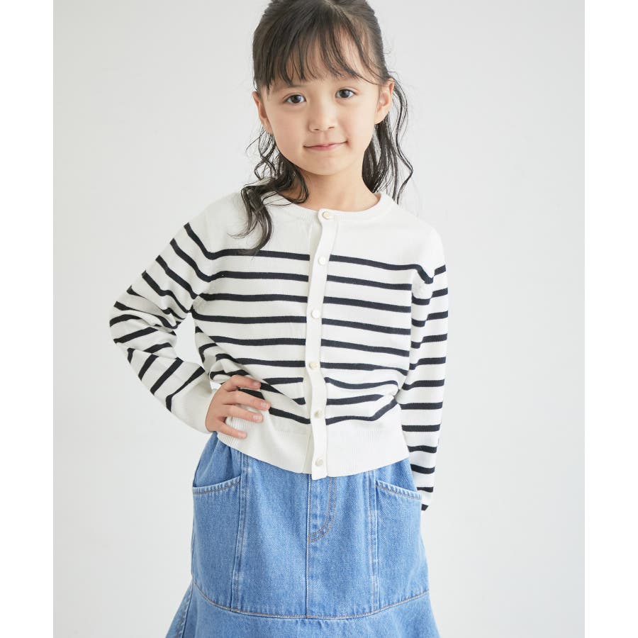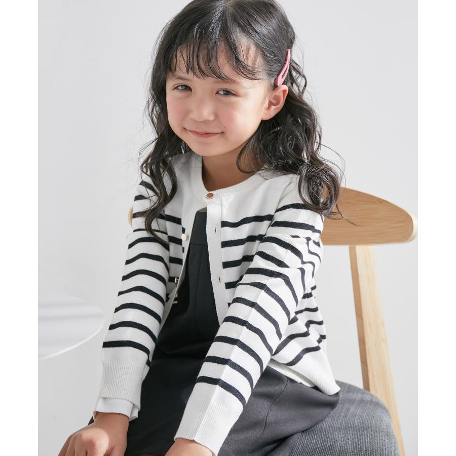 【素材感】 ・なめらかな肌触りときれいな目面がポイントのクルーネックカーディガン。 【デザイン・シルエット】 ・ベーシックに着回しのきく、長袖クルーネックカーディガン。 ・トレンドに左右されないジャストで着られるシルエット。 ・ママとキッズがお揃いで着られる、人気の親子リンクシリーズ。 【カラー】 ・カラーによって柄が異なります。 ブラック(01)ピンク(63):無地 キナリ系(17):ホワイト×ブラックボーダー 【スタイリングポイント】 ・ワンピースの羽織に、柄物ボトムの引き締め役に最適。 ・襟付きシャツとも相性抜群。 ・前立てを閉じて、プルオーバー風に着こなすのも◎。 ・同シリーズで大人(品番:GDK14060)も展開しているので、親子お揃いもおすすめ。 ----------------------------- 裏地:なし 透け感:なし 伸縮性:ややあり 生地感・厚さ:普通 ポケット:なし 季節:春・秋 ----------------------------- ※撮影時の光、お使いのモニター環境によって色の見え方が違う場合がございます。 ※モデル身長:117cm 着用サイズ:120