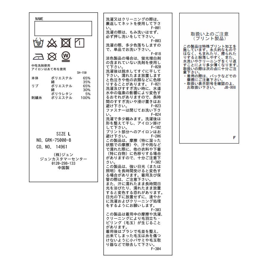 素材 | (本体) ポリエステル 65% 綿 35% (リブ) ポリエステル 65% 綿 30% ポリウレタン 5% (刺繍糸) ポリエステル 100% |