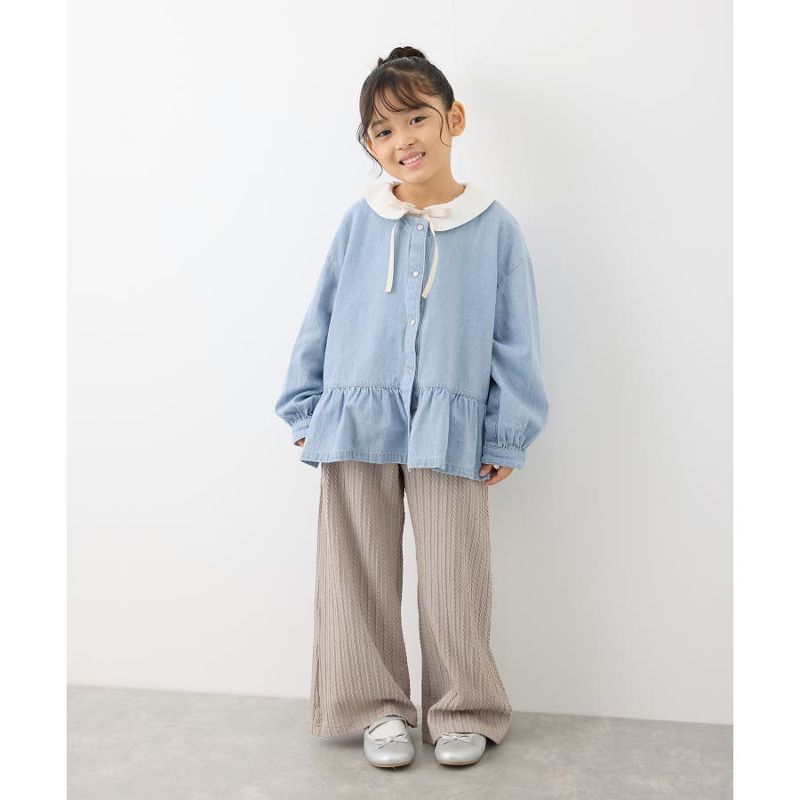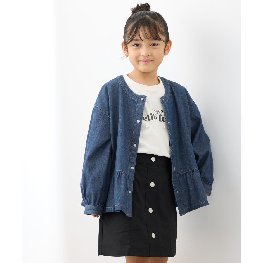【デザイン・シルエット】 ・裾をフリルで切り替えた、ペプラムシルエットのデニムブルゾン。 ・デニムのカジュアルさと、ガーリーなデザインを組み合わせた、ROPE' PICNICらしいデザイン。 ・すっきりとしたクルーネックでインナーが重ねやすい。 ・袖には程よいギャザーをプラスし、可愛らしいボリュームが出るようこだわりを。 【カラー】 ・ネイビー、ライトブルーの2色展開。 【スタイリングポイント】 ・ボーイッシュなパンツスタイルに、ほんのり甘さをプラスできる。 ・ワンピースに羽織るスタイルもおすすめ。 <対応サイズ> Sサイズ:95~115cm Mサイズ:115~135cm Lサイズ:135~155cm <同シリーズアイテム> ・デニムティアードワンピース(品番:GRE15010) ・デニムワイドパンツ(品番:GRS15000) ・デニムキュロットパンツ(品番:GRS15010) ----------------------------- 裏地:なし 透け感:なし 伸縮性:なし 生地感・厚さ:普通 ポケット:なし 季節:春・秋 ----------------------------- ※撮影時の光、お使いのモニター環境によって色の見え方が違う場合がございます。 ※モデル身長:109cm 着用サイズ:M