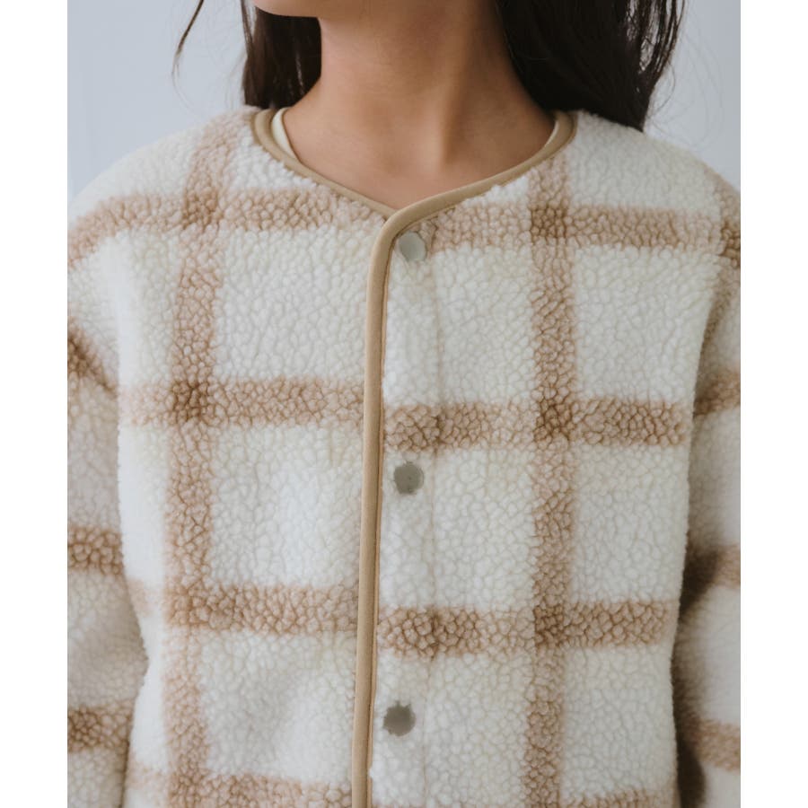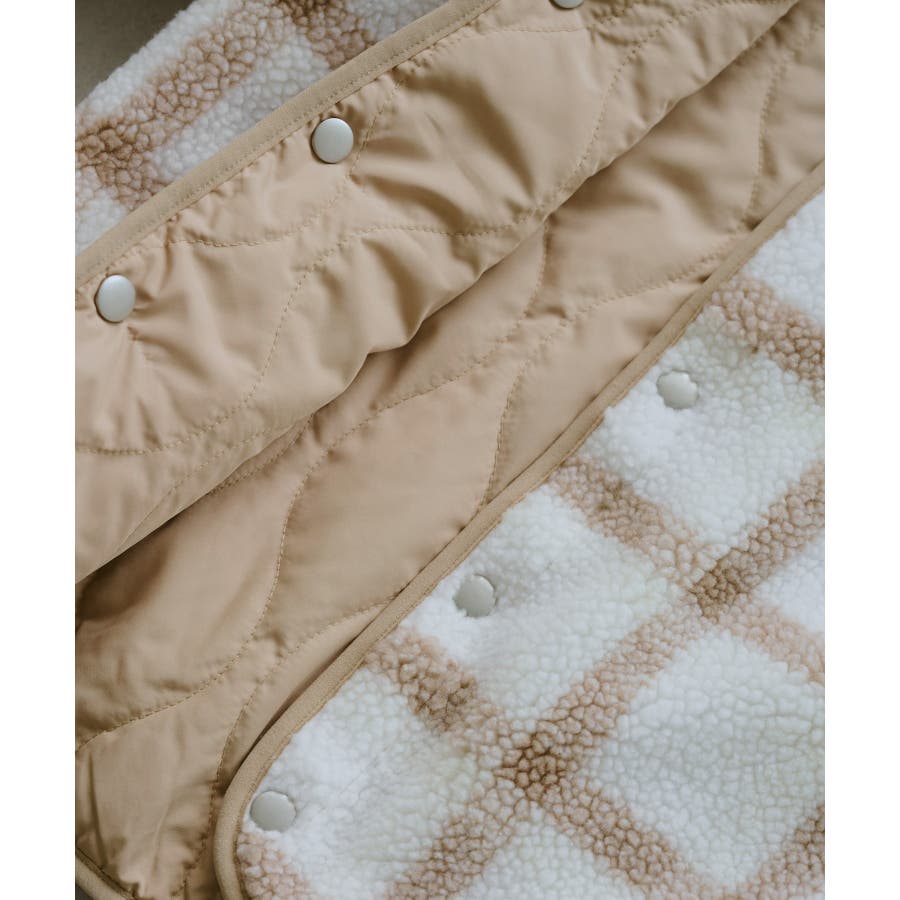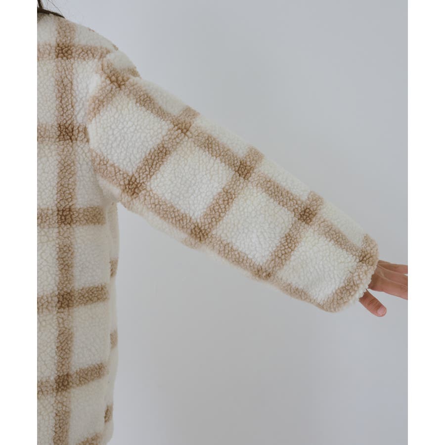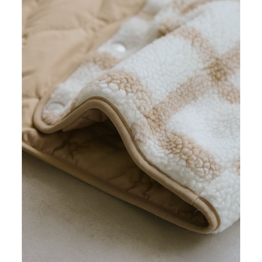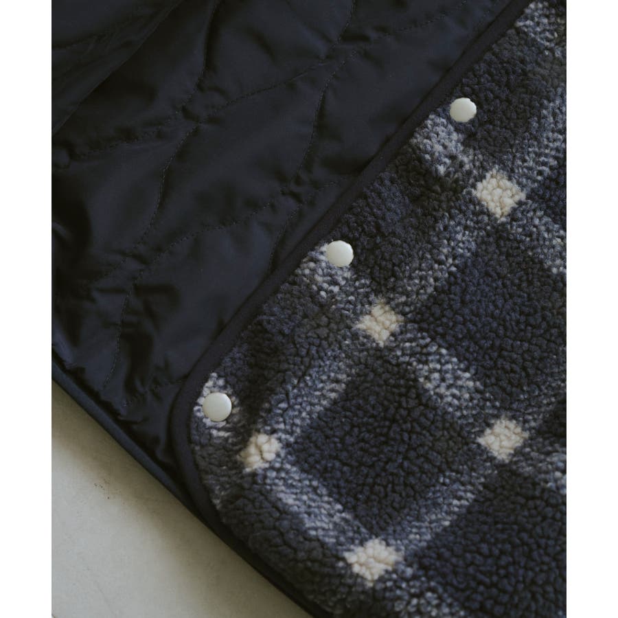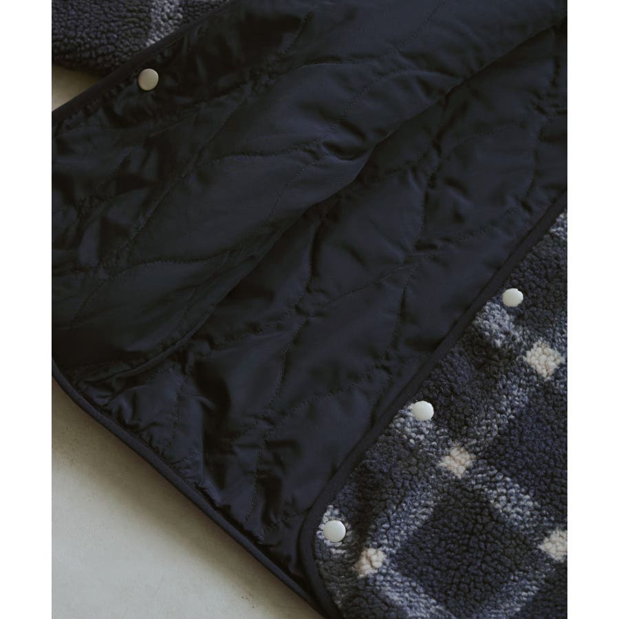 ・チェック柄のボアと無地のキルト、リバーシブルで着れるアウター。