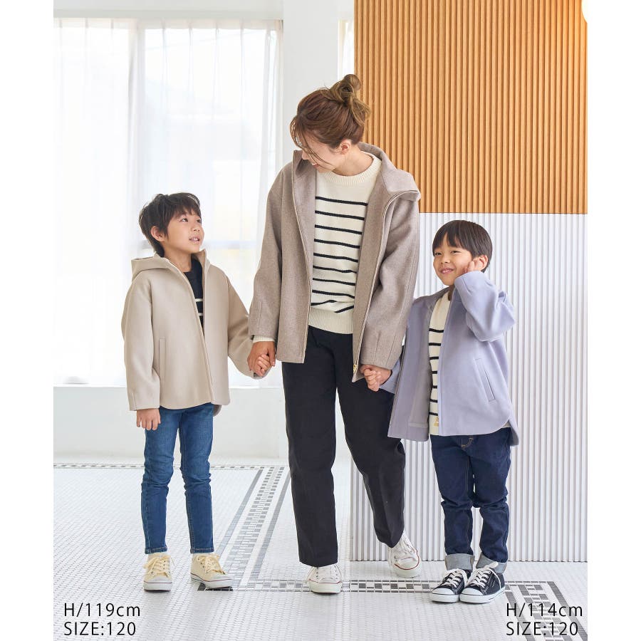 【素材感】 ・軽くて暖かいジャージーメルトンのジップアップフーディー。 【デザイン・シルエット】 ・高めのネックからつなぐ3枚剥ぎの立体フードがポイント。 ・袖口はタックを入れてふんわりシルエットに、前後差ヘムはラウンドにして柔らかな印象をプラス。 ・ママとお揃いで着られる、ROPE' PICNIC人気の親子リンクシリーズ。 【カラー】 ・グレージュ、ラベンダーの優しい2色展開。 【スタイリングポイント】 ・ボトムスとのバランスが取りやすい着丈で、パンツもスカートも幅広くマッチ。 ・スウィートなワンピースに羽織ってもOK。 ・同シリーズで大人(品番:GDL52010)も展開しているので、親子お揃いもおすすめ。 ----------------------------- 裏地:あり 透け感:なし 伸縮性:なし 生地感・厚さ:やや厚手 ポケット:あり 季節:冬 ----------------------------- ※撮影時の光、お使いのモニター環境によって色の見え方が違う場合がございます。 ※前回好評だったジップアップフーディ(品番:GRL61020)とデザイン変更はございませんが、110cmサイズがなくなり150cmサイズを追加しました。 ※ベージュ系(28)モデル身長:119cm 着用サイズ:120 ※ラベンダー(52)モデル身長:114cm 着用サイズ:120 ※girl'sモデル身長:120cm 着用サイズ:120