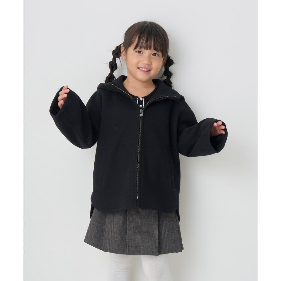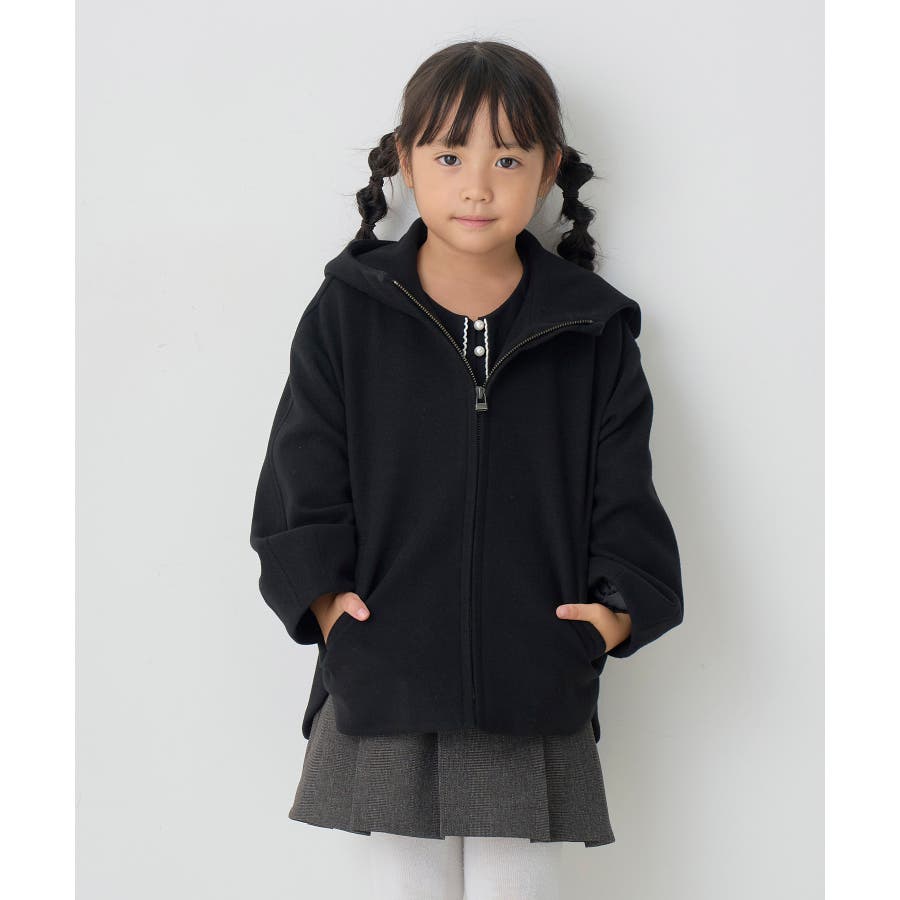 【素材感】 ・軽くて柔らかくて暖かい、ジャージーメルトンを使用したフーデッドジャケット。 【デザイン・シルエット】 ・フロントファスナーで開閉しやすく、お子様でも手軽にお着替えができる。 ・袖口タックで立体感を出した袖と、ラウンドヘムが可愛らしさをアピール。 ・便利なポケット付き。 【カラー】 ・ブラック、ライトグレーの合わせやすい2色を展開。 【スタイリングポイント】 ・軽快な着丈で、パンツにもスカートにも合わせやすい。 ・お出かけ用のきれいめコーデにもぴったり。 ・同シリーズで大人(品番:GDL54010)も展開しているので、親子お揃いもおすすめ。 ----------------------------- 裏地:あり 透け感:なし 伸縮性:なし 生地感・厚さ:厚手 ポケット:あり 季節:冬 ----------------------------- ※撮影時の光、お使いのモニター環境によって色の見え方が違う場合がございます。 ※モデル身長:113.5cm 着用サイズ:120