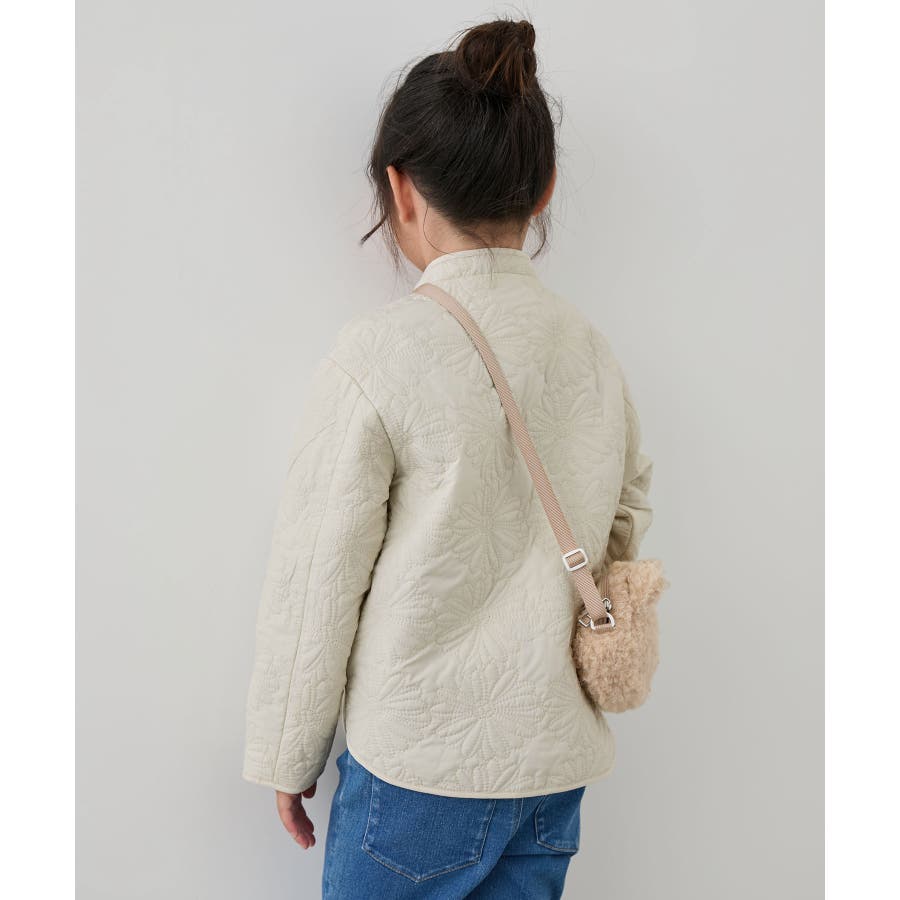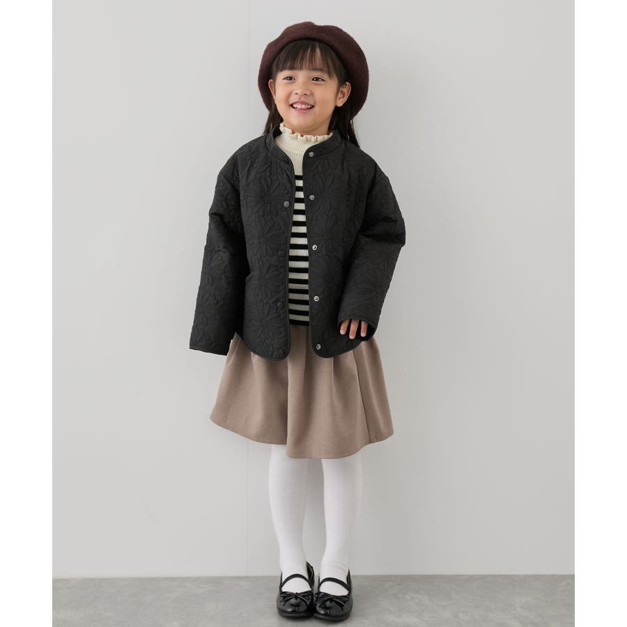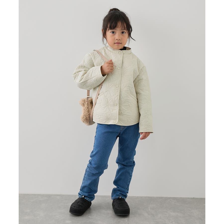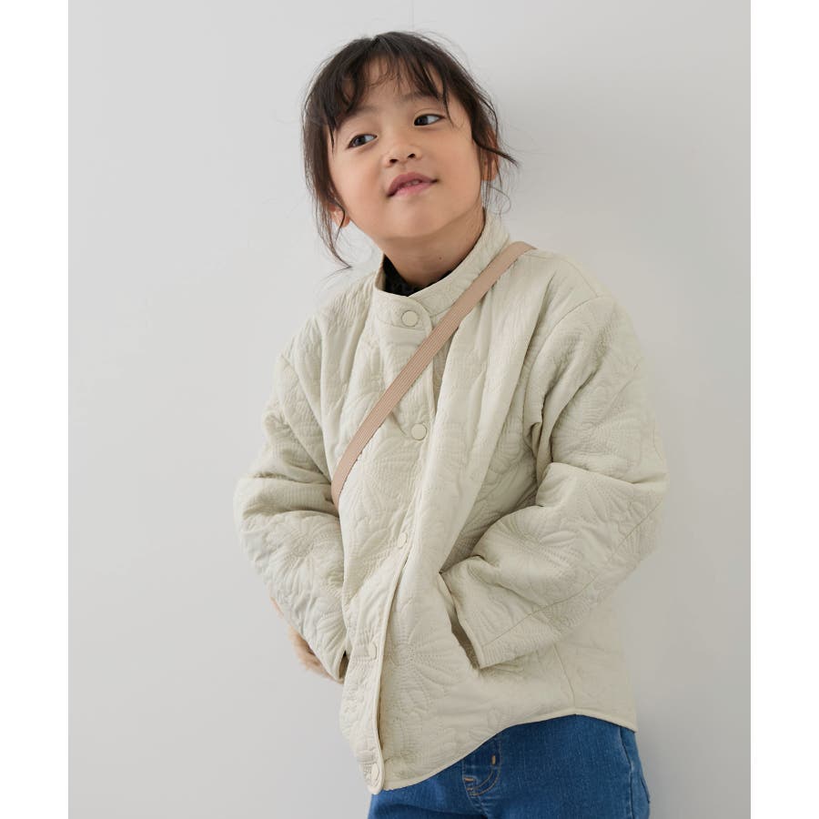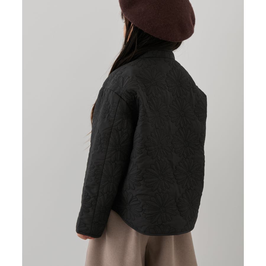 【デザイン・シルエット】 ・フラワー柄のキッズ用キルティングブルゾン。 ・ドロップショルダーと丸みのあるフォルムが可愛らしい一着。 ・首まわりがすっきりとしたコンパクトなスタンドネックと、柔らかなラウンドヘムが特徴。 ・フロントはボタン開閉。 【カラー】 ・ブラック、オフホワイトのモノトーンカラー2色展開。 【スタイリングポイント】 ・カジュアルなジーンズにも、おしゃれなおでかけワンピースにも合わせやすいデザイン。 ・コンパクトなネックで、フーディーの上にも重ねられる。 ・同シリーズで大人(品番:GSL54000)も展開しているので、親子お揃いもおすすめ。 ----------------------------- 裏地:あり 透け感:なし 伸縮性:なし 生地感・厚さ:普通 ポケット:あり 季節:秋・冬 ----------------------------- ※撮影時の光、お使いのモニター環境によって色の見え方が違う場合がございます。 ※110cmはWEBサイト限定展開。 ※モデル身長:114.5cm 着用サイズ:120