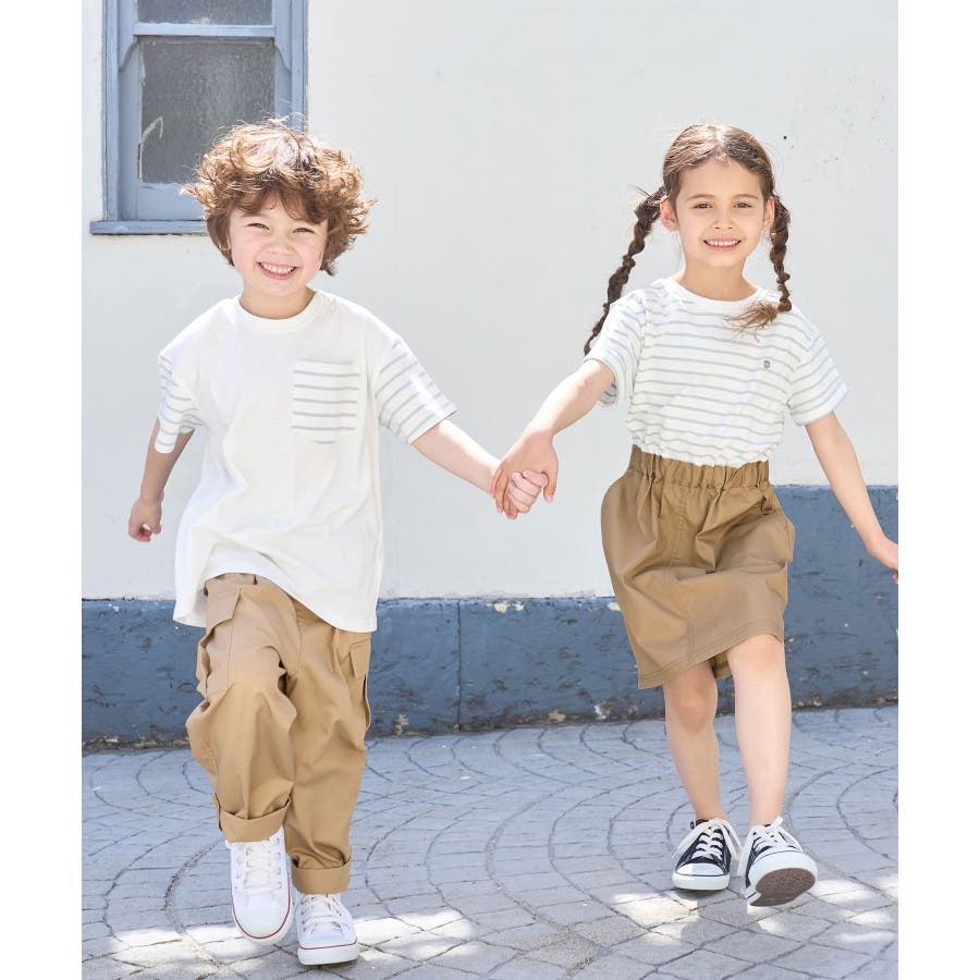 【デザイン・シルエット】 ・ボーダーと無地の切り替えTシャツ。 ・カジュアルな胸ポケット付き。 ・キッズの男女リンクシリーズ。 ・もちろんユニセックスで着用可能。 【カラー】 ・カラーによって組成の混率が異なります。 ホワイト(10) (身頃部分)ポリエステル 67% 綿 33% (袖部分)綿 93% ポリウレタン 7% サックス(48)ラベンダー(52) (身頃部分)ポリエステル 93% 綿 7% (袖部分)綿 67% ポリウレタン 33% 【スタイリングポイント】 ・ボーイズなら無地のショートパンツやカーゴパンツに合わせて。 ・ガールはキュロットパンツでアクティブに決めて。 ・同シリーズでドッキングワンピース(品番:GRE13070)も展開しているので、男女でリンクコーデが楽しめる。 ----------------------------- 裏地:なし 透け感:ホワイト(10)サックス(48)はややあり 伸縮性:ややあり 生地感・厚さ:やや薄手 季節:夏 ----------------------------- ※撮影時の光、お使いのモニター環境によって色の見え方が違う場合がございます。 ※ホワイト(10),ラベンダー(52):モデル身長:113cm 着用サイズ:120 ※サックス(48):モデル身長:117cm 着用サイズ:120