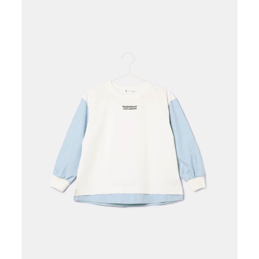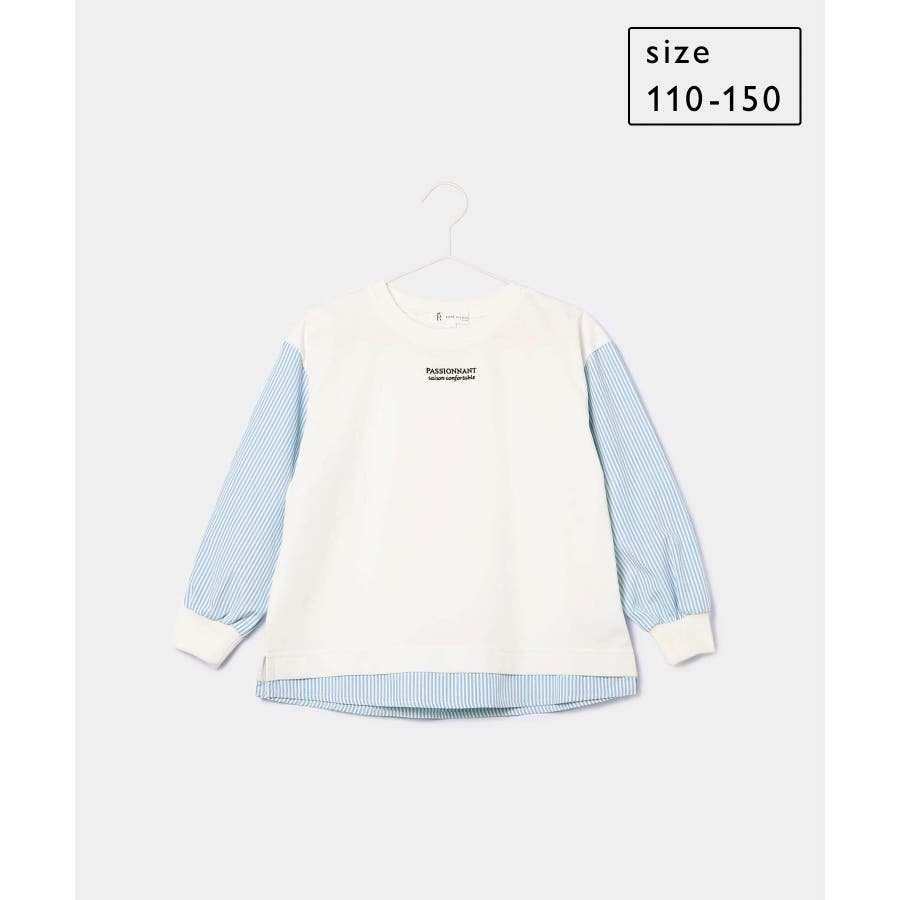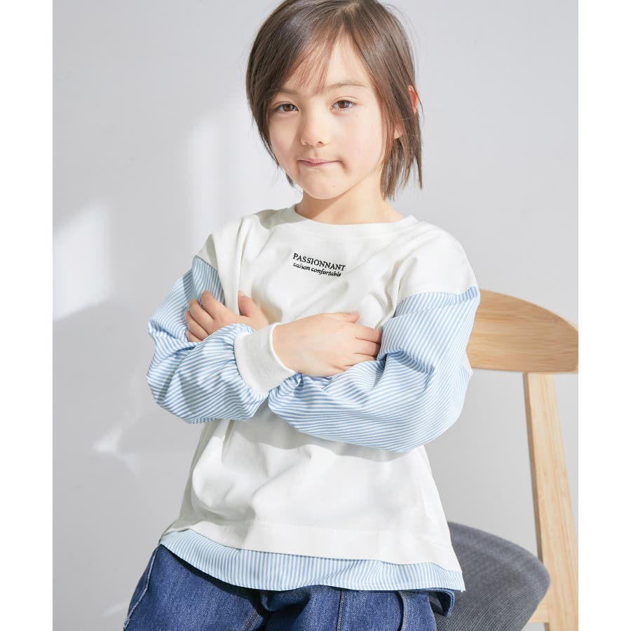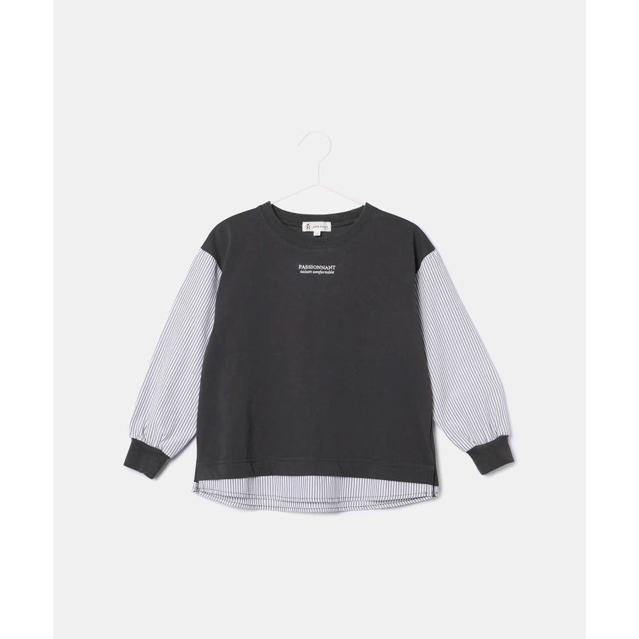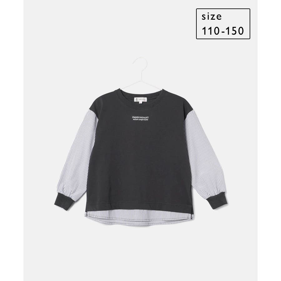 【デザイン・シルエット】 ・袖と裾にストライプ柄生地を用いた、異素材使いの長袖プルオーバー。 ・フロントの英字刺繍がおしゃれ感をアップ。 ・ストレスフリーなリラックスフォルム。 : <ロゴの意味> PASSIONNANT saison confortable : ワクワクするような暖かい季節という意 【カラー】 ・チャコールグレー、オフホワイトの2色展開。 【スタイリングポイント】 ・ジーンズやカラーパンツなど、シンプルなボトムに合わせるのがおすすめ。 ----------------------------- 裏地:なし 透け感:オフホワイト(15)はややあり 伸縮性:ややあり 生地感・厚さ:やや薄手 ポケット:なし 季節:春、秋 ----------------------------- ※撮影時の光、お使いのモニター環境によって色の見え方が違う場合がございます。 ※モデル身長:115.5cm 着用サイズ:120