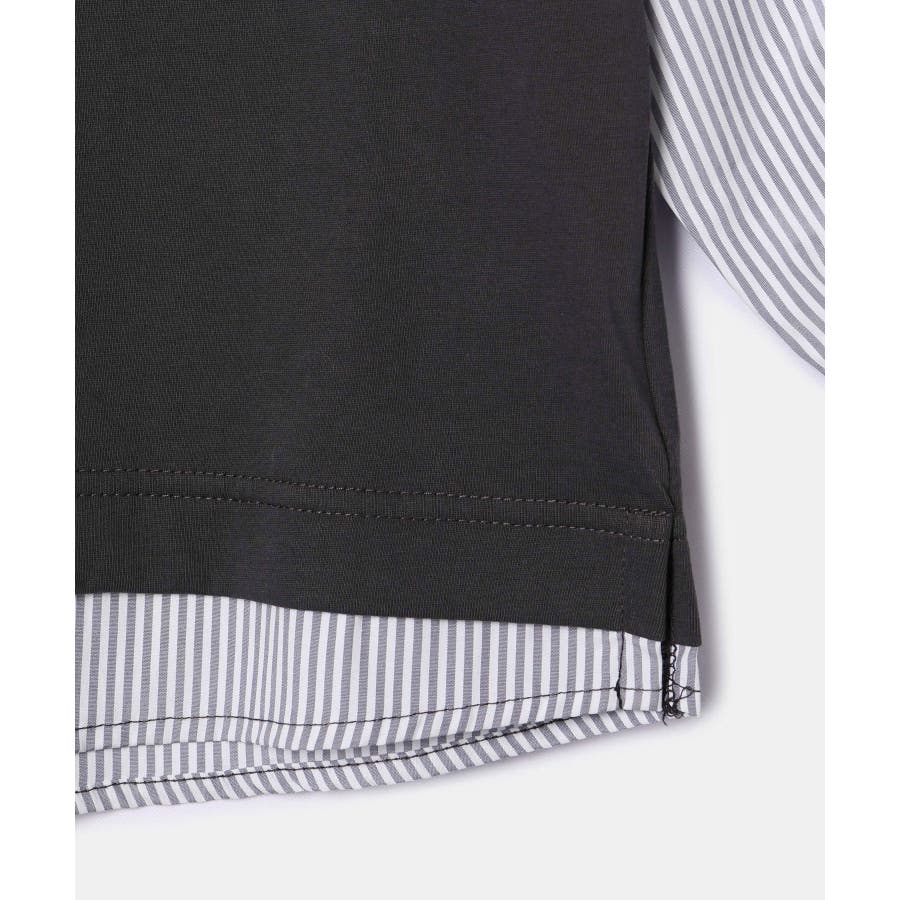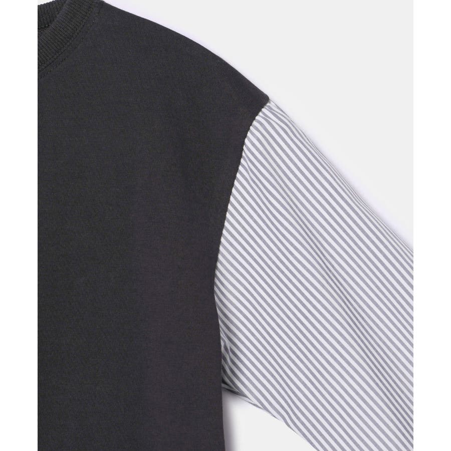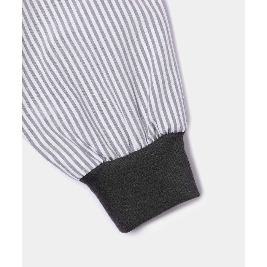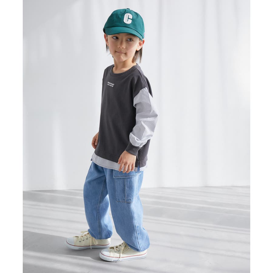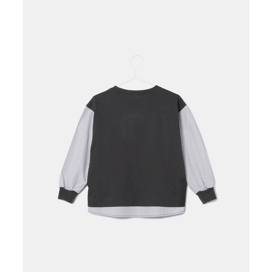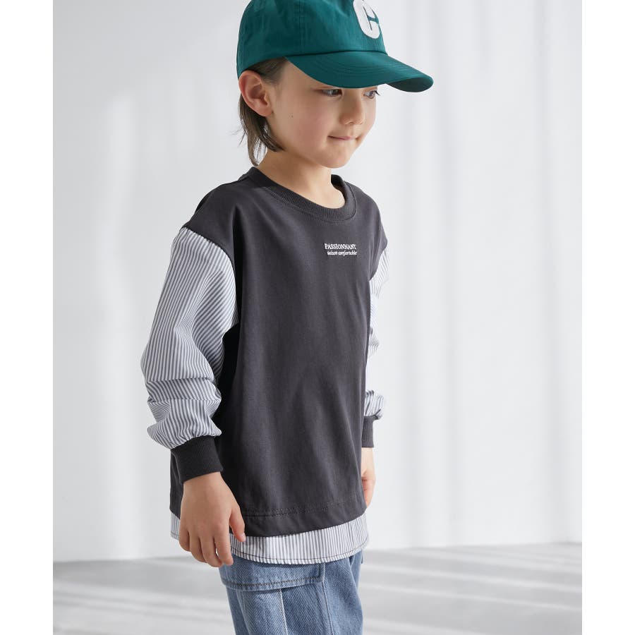 【デザイン・シルエット】 ・袖と裾にストライプ柄生地を用いた、異素材使いの長袖プルオーバー。 ・フロントの英字刺繍がおしゃれ感をアップ。 ・ストレスフリーなリラックスフォルム。 : <ロゴの意味> PASSIONNANT saison confortable : ワクワクするような暖かい季節という意 【カラー】 ・チャコールグレー、オフホワイトの2色展開。 【スタイリングポイント】 ・ジーンズやカラーパンツなど、シンプルなボトムに合わせるのがおすすめ。 ----------------------------- 裏地:なし 透け感:オフホワイト(15)はややあり 伸縮性:ややあり 生地感・厚さ:やや薄手 ポケット:なし 季節:春、秋 ----------------------------- ※撮影時の光、お使いのモニター環境によって色の見え方が違う場合がございます。 ※モデル身長:115.5cm 着用サイズ:120