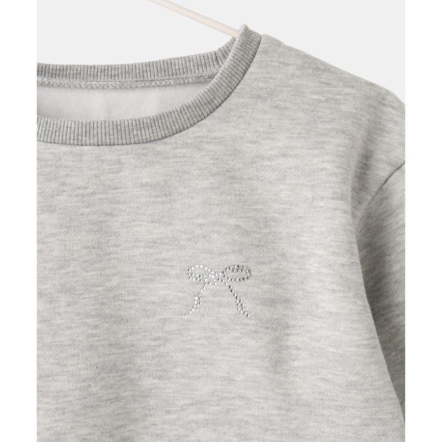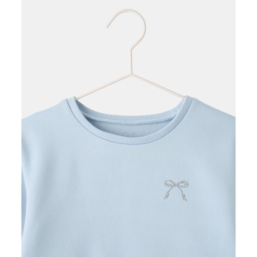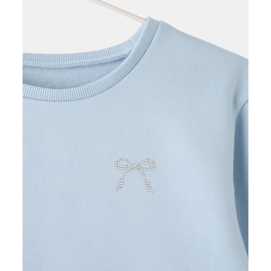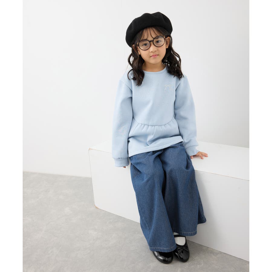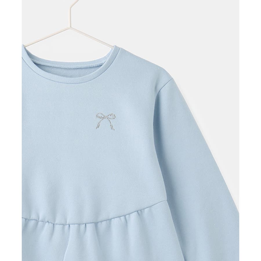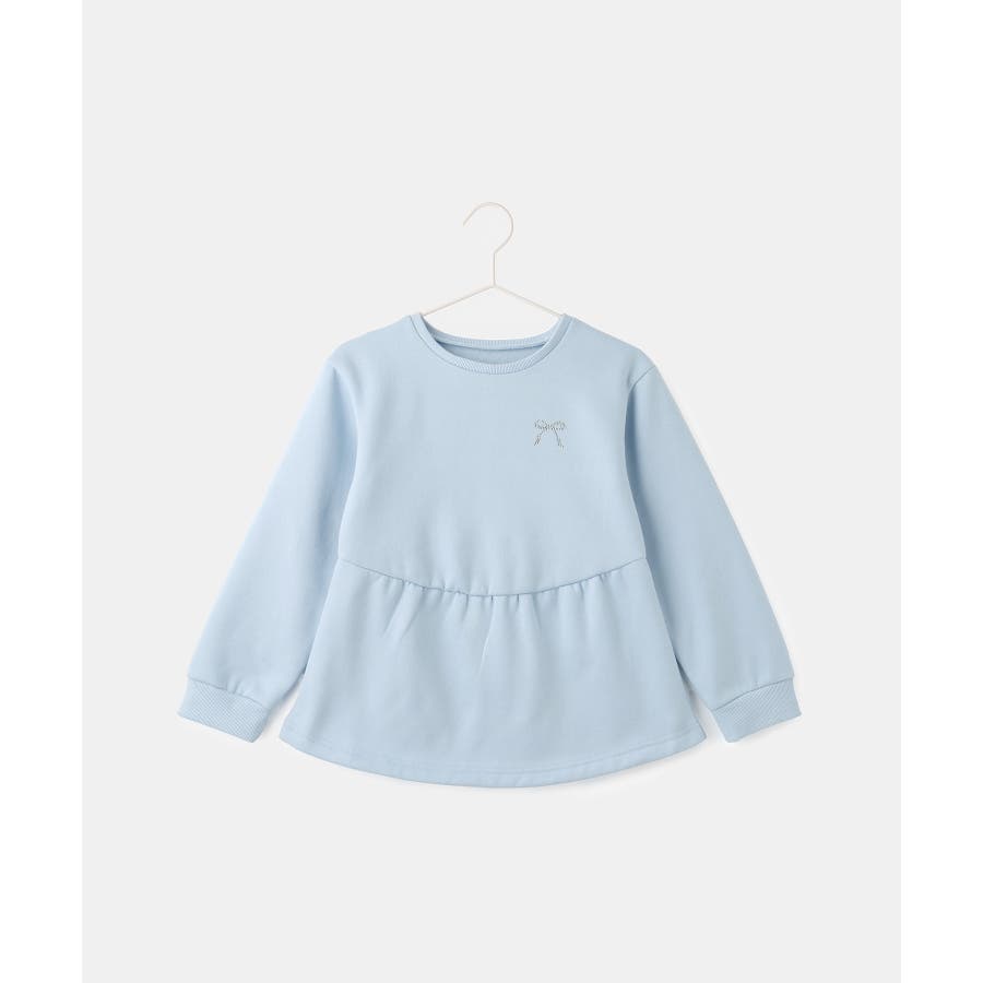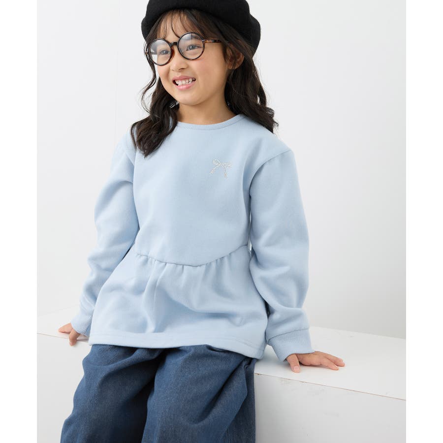 【素材感】 ・暖かな着心地の裏起毛トップス。 【デザイン・シルエット】 ・裾が広がるペプラムシルエットでガーリッシュにデザイン。 ・ベーシックなクルーネックタイプ。 ・胸元のリボンがアクセント。 【カラー】 ・ライトグレー、サックスブルーの明るい2色展開。 【スタイリングポイント】 ・裾が広がるのでパンツ合わせがおすすめ。 ・ジーンズやチノパンツなど、普段使いのボトムにベストマッチ。 <対応サイズ> Sサイズ:95~115cm Mサイズ:115~135cm Lサイズ:135~155cm ----------------------------- 裏地:なし 透け感:なし 伸縮性:なし 生地感・厚さ:普通 季節:秋・冬 ----------------------------- ※撮影時の光、お使いのモニター環境によって色の見え方が違う場合がございます。