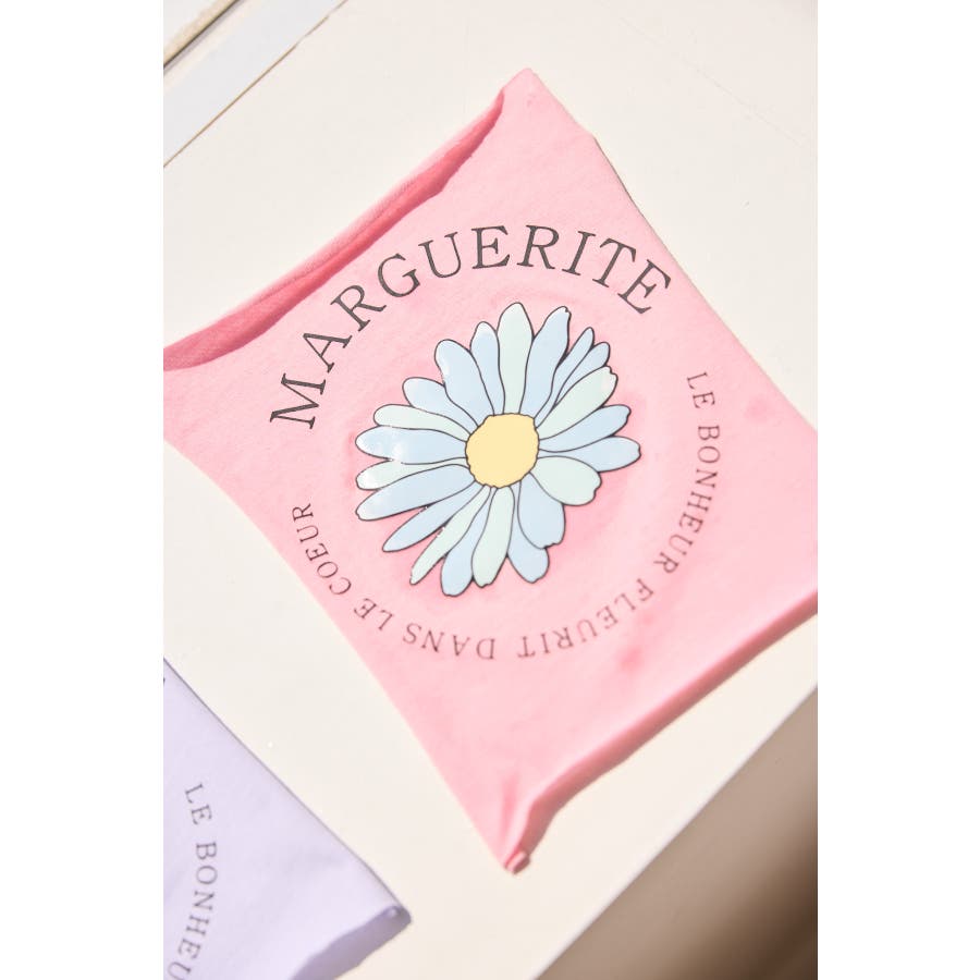 ・フロントのマーガレットプリントが、水に濡れると色が変わる仕様。