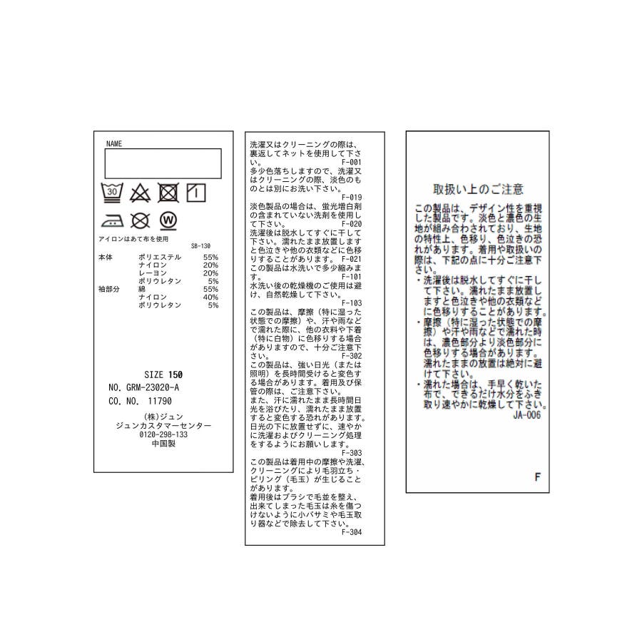 | 素材 | ホワイト系(11):(本体) ポリエステル 55% ナイロン 20% レーヨン 20% ポリウレタン 5% (袖部分) 綿 55% ナイロン 40% ポリウレタン 5%|ネイビー(40):(本体) 綿 55% ナイロン 37% ポリウレタン 8% (袖部分) 綿 55% ナイロン 40% ポリウレタン 5% |