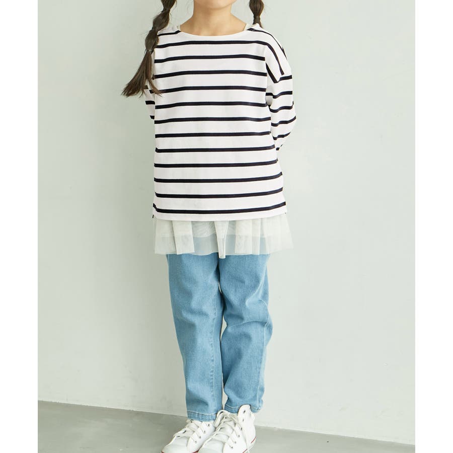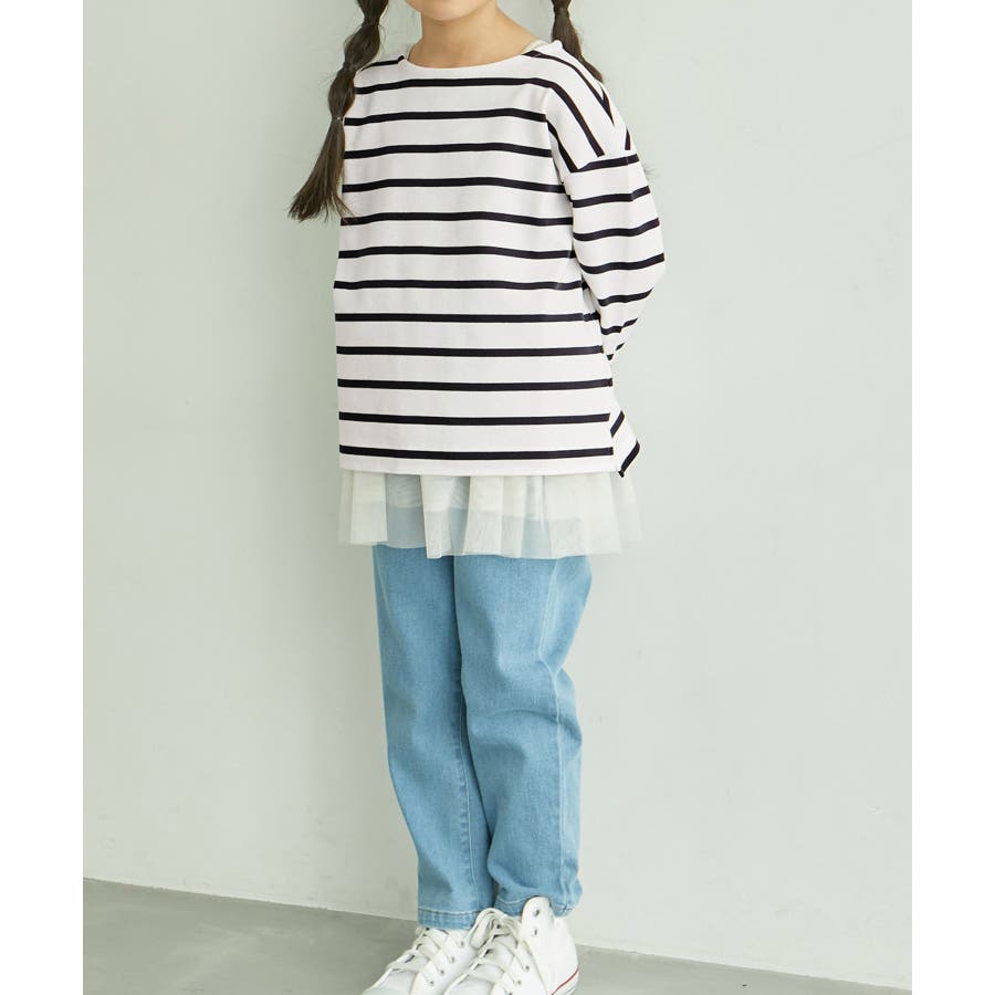 【デザイン・シルエット】 ・ワイドシルエットが旬の着こなしをアシスト。 ・着回し力のあるボーダーの長袖カットソー。 【カラー】 ・アイボリー、ブルーのすっきり感のある2色をラインナップ。 【スタイリングポイント】 ・ベーシックなジーンズ合わせが一番おすすめ。 ・キッズはビビッドなカラーパンツを合わせても元気な印象に。 ・同シリーズで大人(品番:GDM14000)も展開しているので、お揃いでの着用もおすすめ。 ----------------------------- 裏地:なし 透け感:なし 伸縮性:ややあり 生地感・厚さ:普通 ポケット:なし 季節:春、秋 ----------------------------- ※撮影時の光、お使いのモニター環境によって色の見え方が違う場合がございます。 ※前回好評だったUNISEXフレンチボーダートップス(品番:GRM23010)と同型。 ※モデル身長、着用サイズは詳細画像をご確認ください。