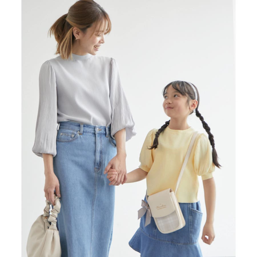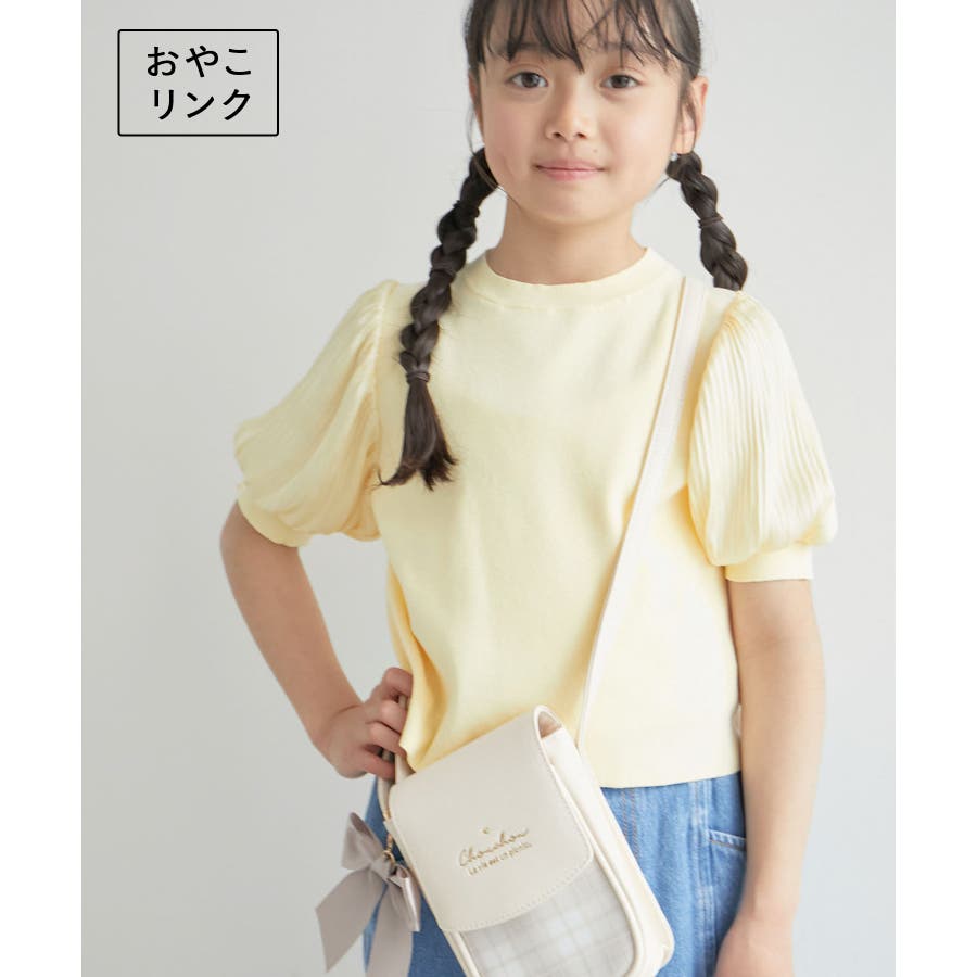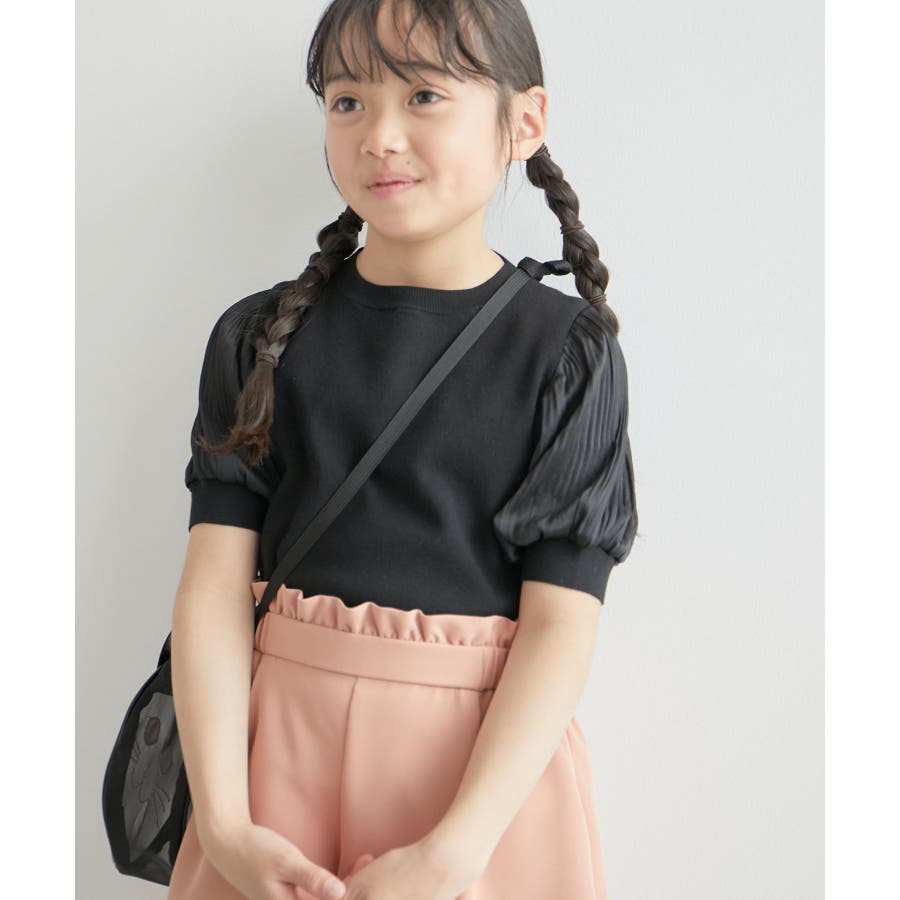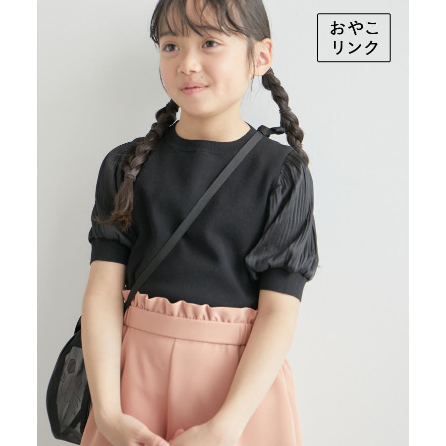 【KIDS】袖プリーツ異素材ニットプルオーバー/リンクコーデ