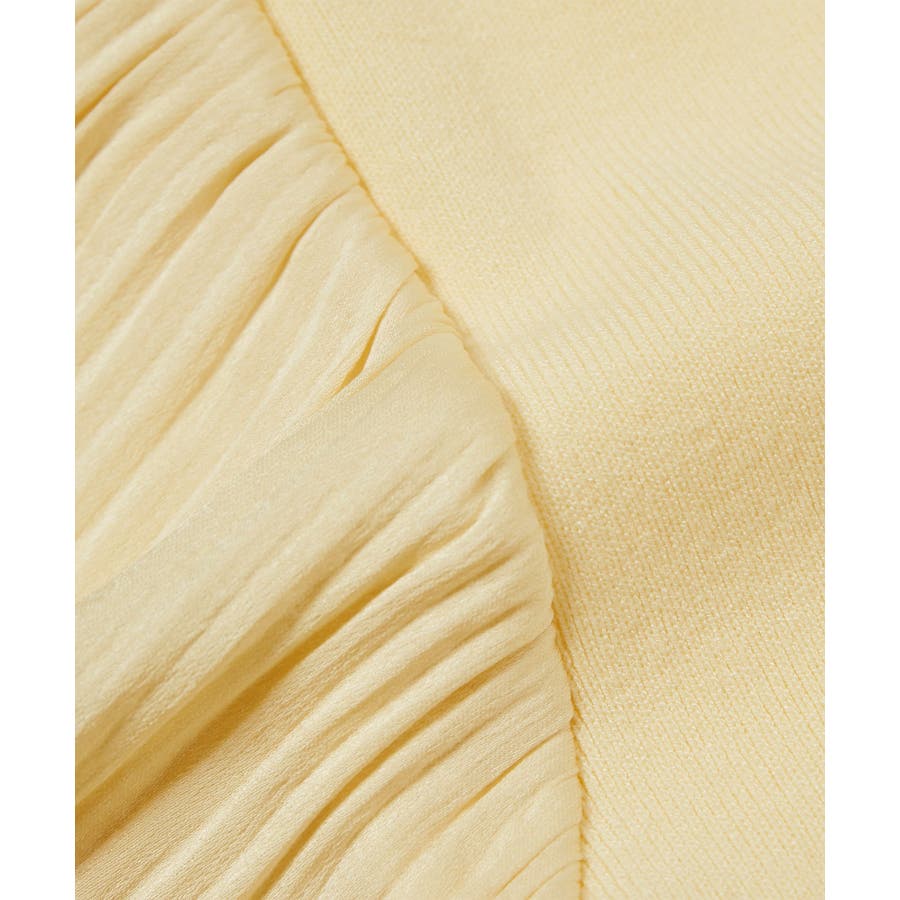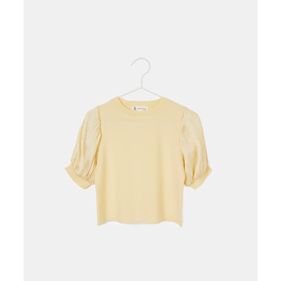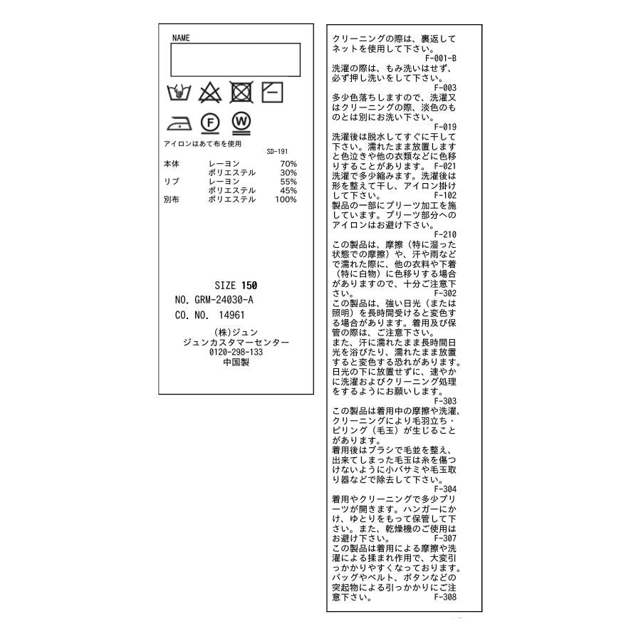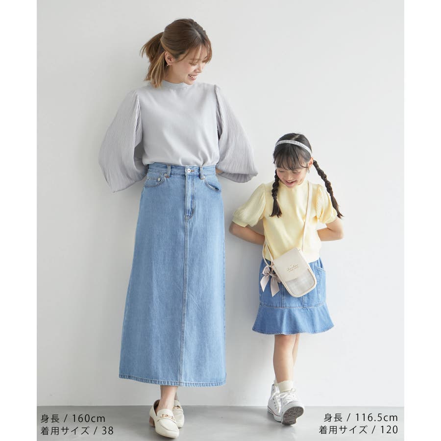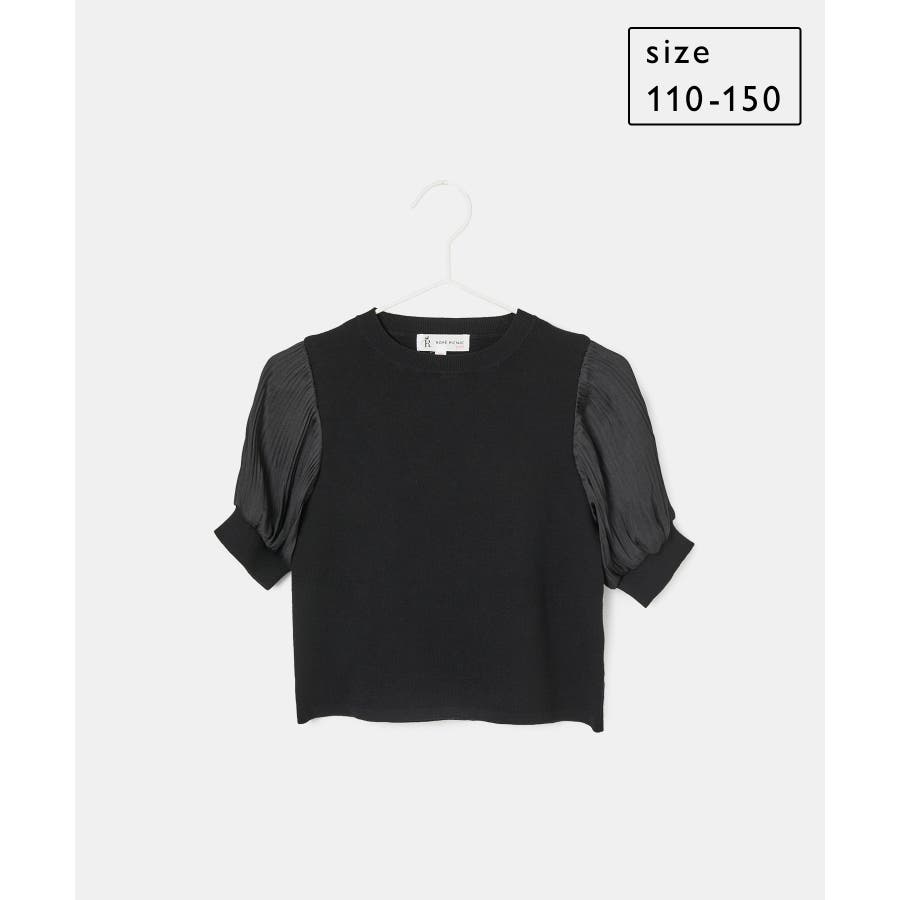 【デザイン・シルエット】 ・袖をプリーツの布帛で切り替えた、異素材使いのニットプルオーバー。 ・ボリュームスリーブでモダンな印象。 ・身頃はすっきりと合わせやすい。 【カラー】 ・ブラック、クリームイエローの2色展開。 【スタイリングポイント】 ・プリントのフレアスカートに合わせればお出かけルックが完成。 ・キャミソールドレスのインナーにも◎。 ・同シリーズで大人(品番:GDM14190)も展開しているので、お揃いでの着用もおすすめ。 ----------------------------- 裏地:なし 透け感:なし 伸縮性:身頃はややあり 生地感・厚さ:普通 ポケット:なし 季節:春・秋 ----------------------------- ※撮影時の光、お使いのモニター環境によって色の見え方が違う場合がございます。 ※モデル身長:116.5cm 着用サイズ:120