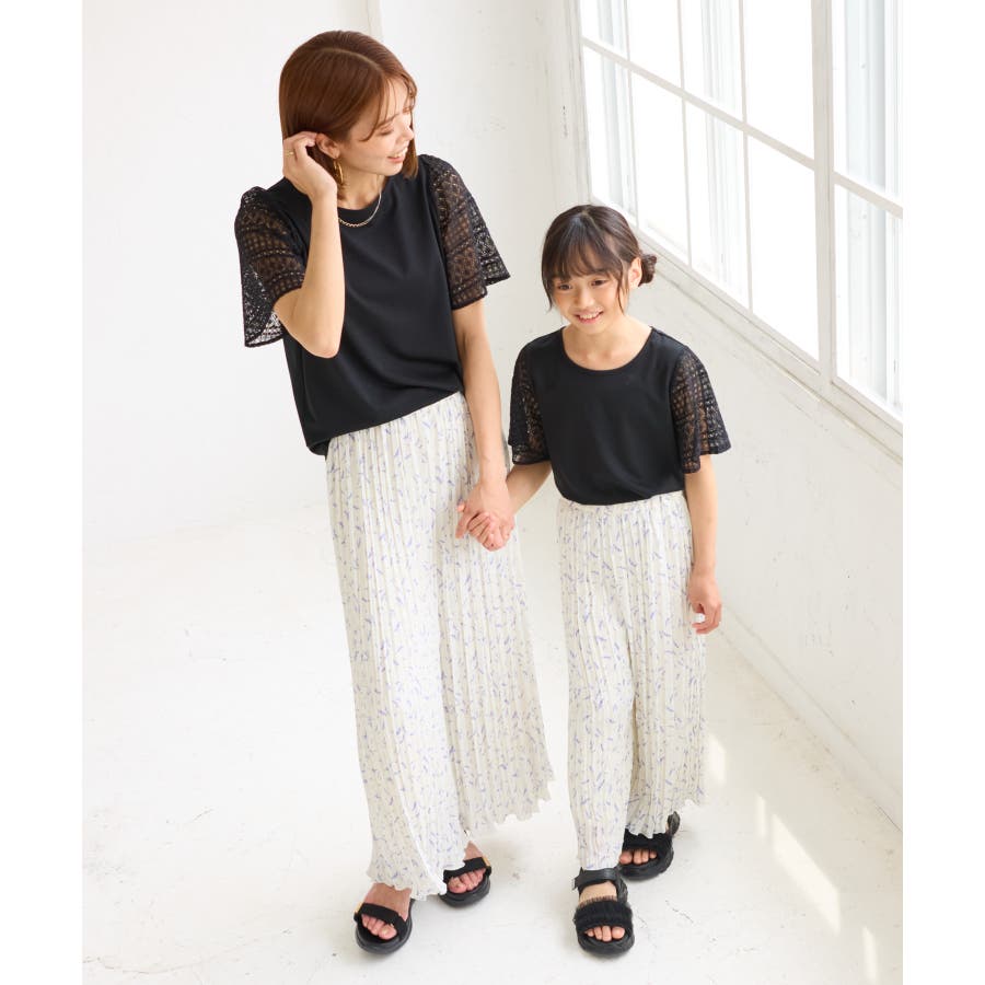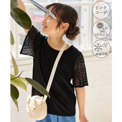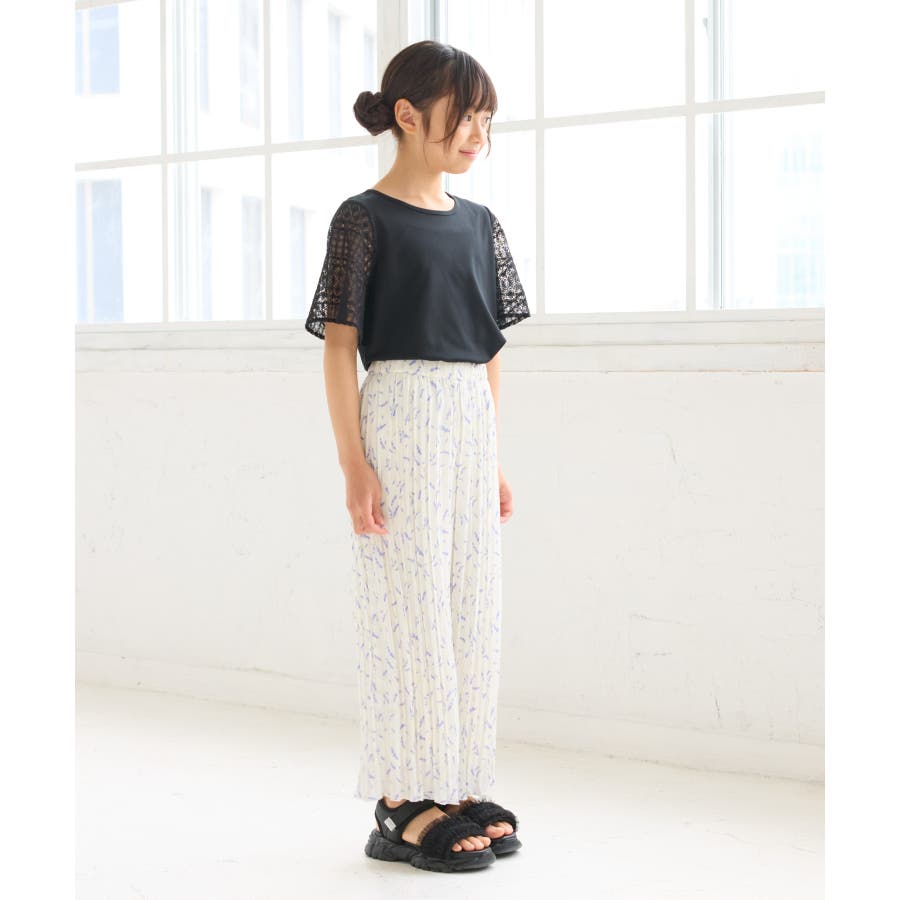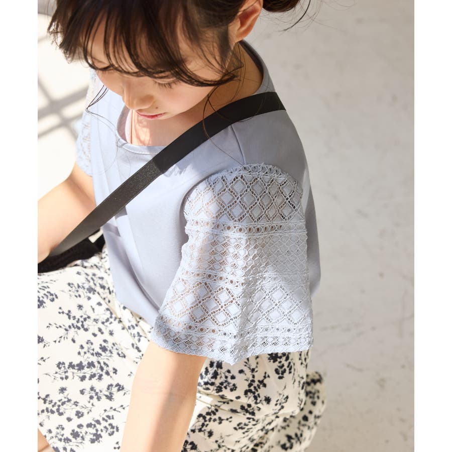 【KIDS キッズ】【UVカット 接触冷感】レースドッキングフレアスリーブトップ…