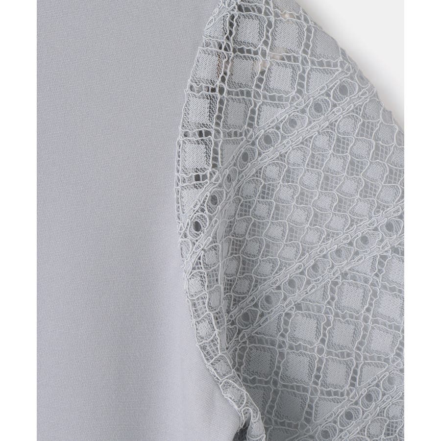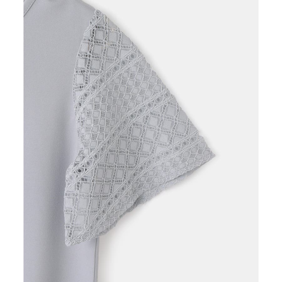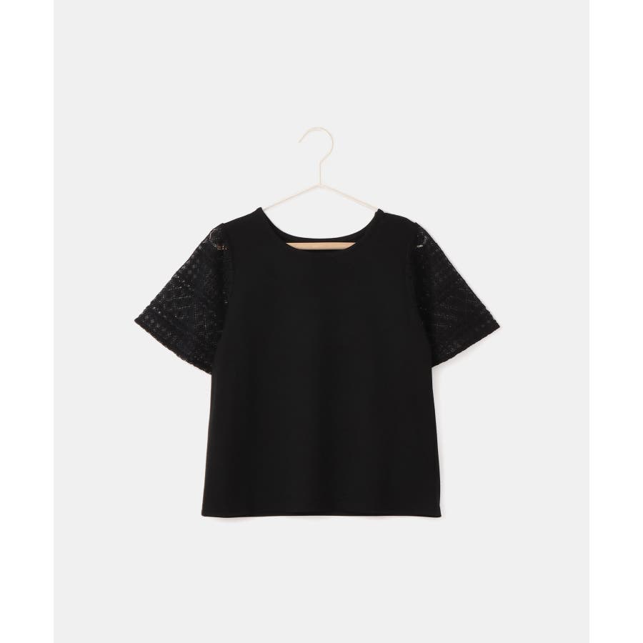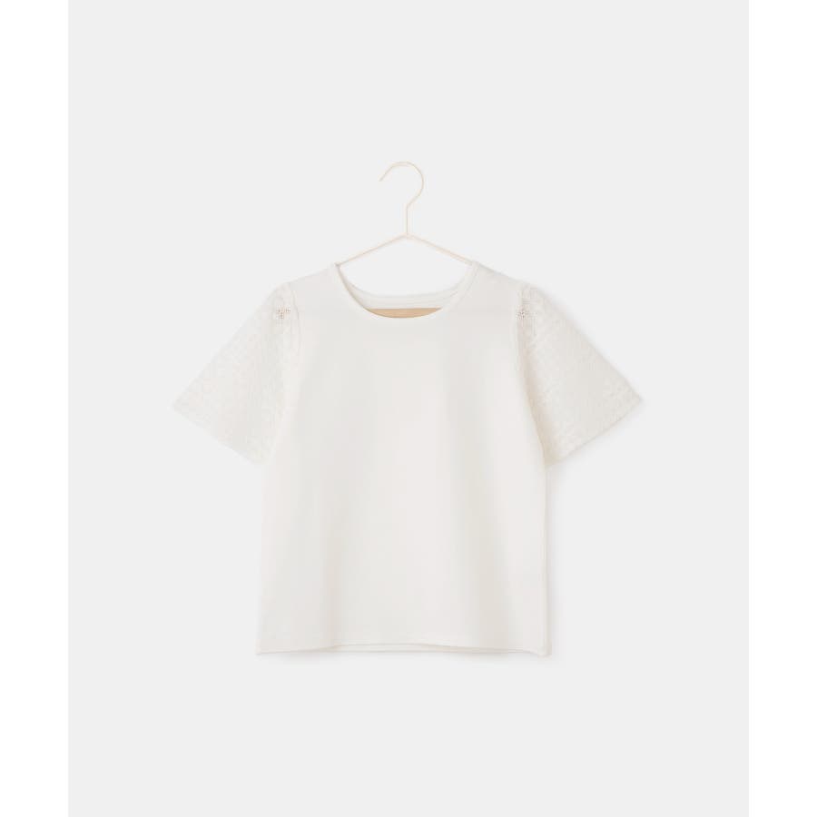 ・異素材切り替えの半袖カットソー。