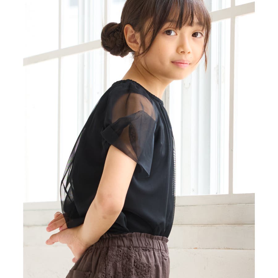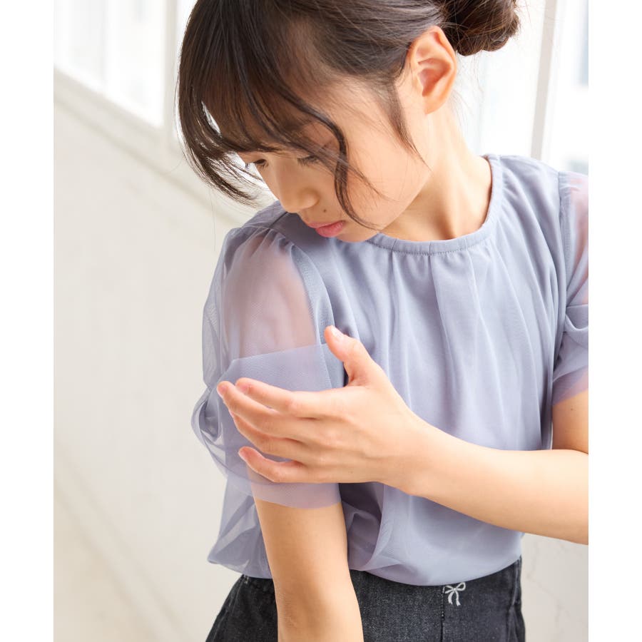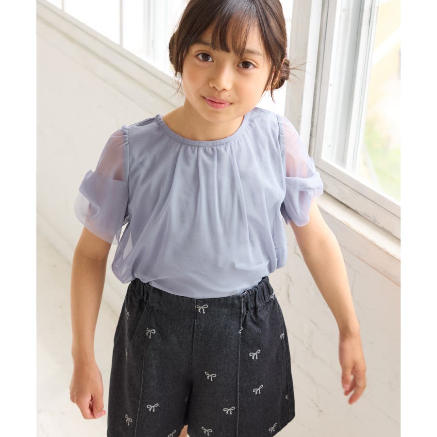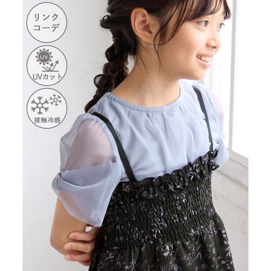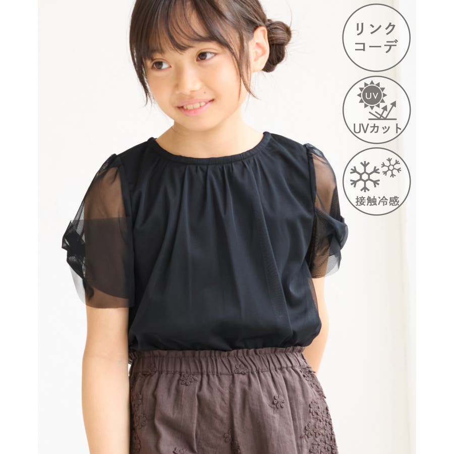 【KIDS キッズ】【UVカット 接触冷感】ツイストチュールスリーブトップス