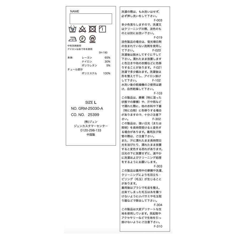 | 素材 | (本体) レーヨン 65% ナイロン 30% ポリウレタン 5% (チュール部分) ポリエステル 100% |