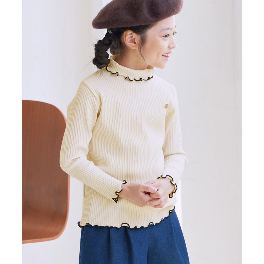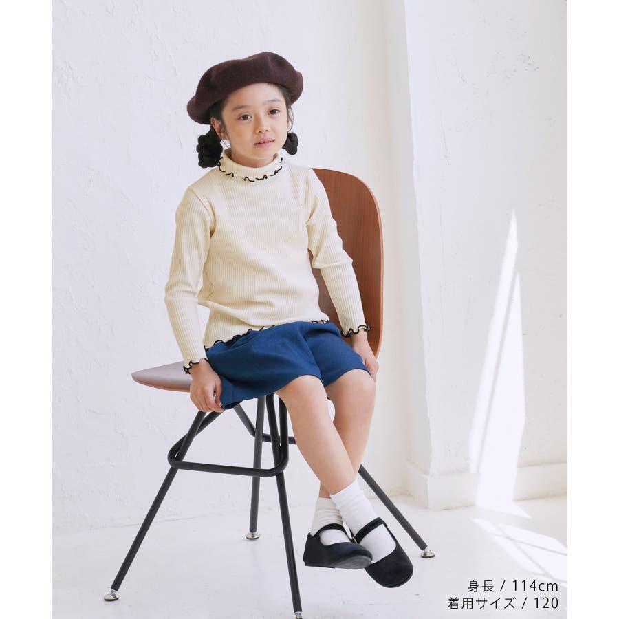 【デザイン・シルエット】 ・レイヤードに便利なタートルネックプルオーバー。 ・ネックと袖口、裾は、メロウラインに配色を効かせてアクセントに。 【カラー】 ・オフホワイト、グリーン、ラベンダーの明るい3色展開。 【スタイリングポイント】 ・キャミソールワンピースやサロペット、ジャンパースカートとのコーディネートがおすすめ。 ----------------------------- 裏地:なし 透け感:なし 伸縮性:あり 生地感・厚さ:やや厚手 ポケット:あり 季節:秋・秋・冬 ----------------------------- ※撮影時の光、お使いのモニター環境によって色の見え方が違う場合がございます。 ※モデル身長:114cm 着用サイズ:120