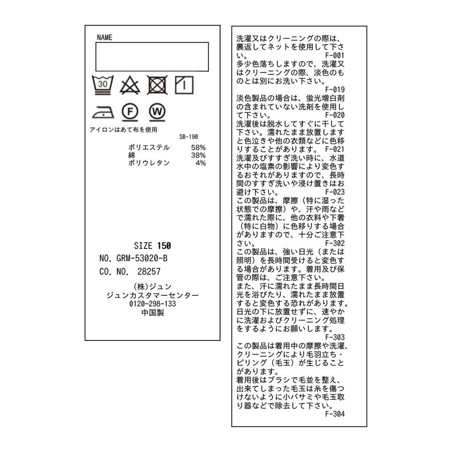 素材 | キナリ(16):ポリエステル 58% 綿 38% ポリウレタン 4%|ライトグリーン(33):ポリエステル 58% 綿 38% ポリウレタン 4%|ラベンダー(52):ポリエステル 58% 綿 38% ポリウレタン 4% |